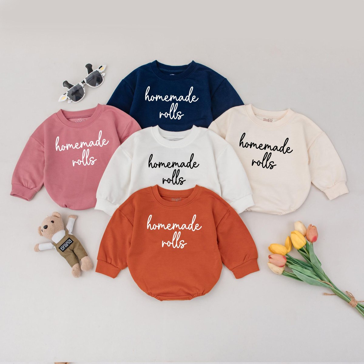Homemade Rolls Retro Natural Baby Romper Retro Fall Toddler sweater Autumn Kids Clothes Funny Thanks 153