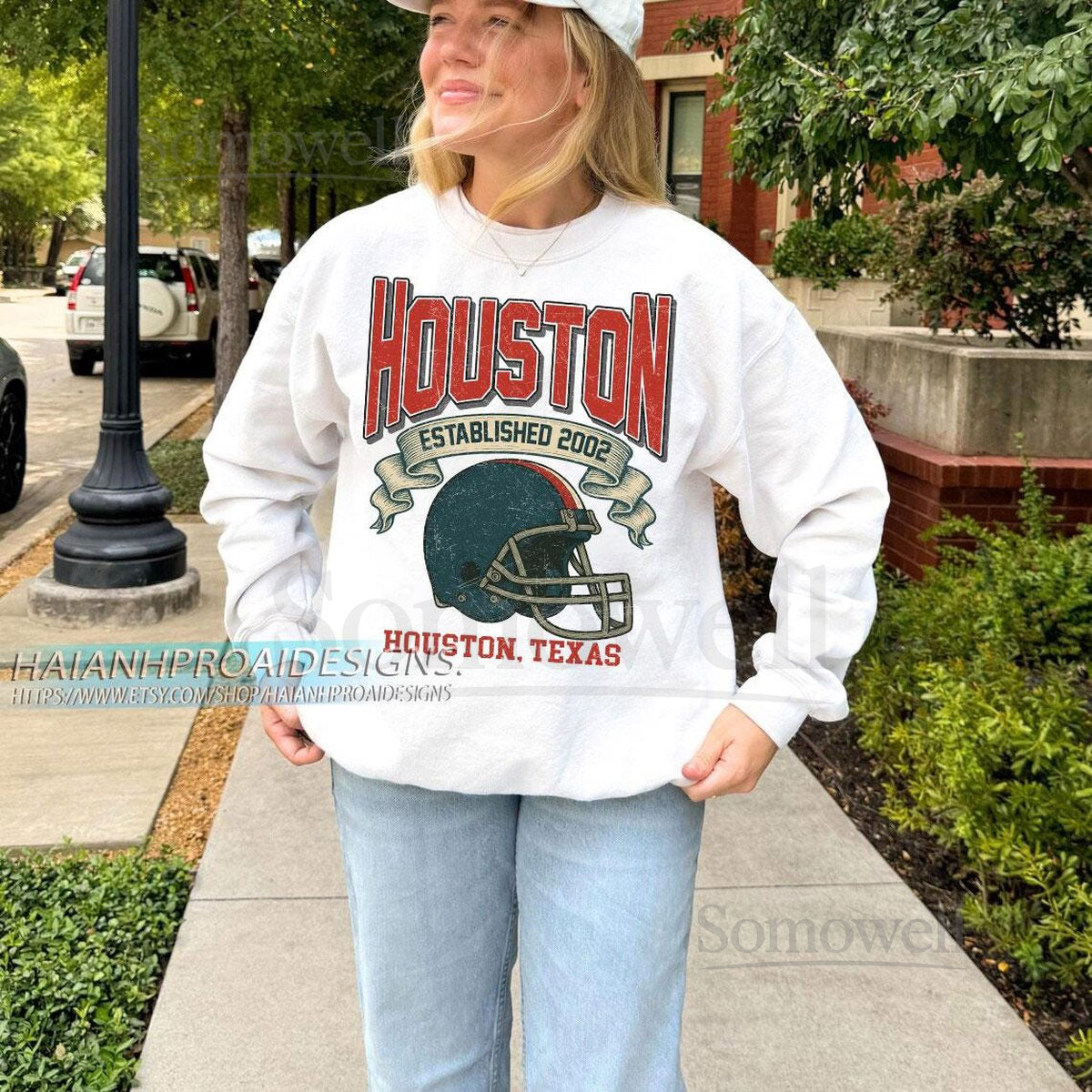 Houston Football 2002 Vintage Sweatshirt Retro Sports Helmet Crewneck Classic Texas Pride Fan Sweater Game Day Gift_223