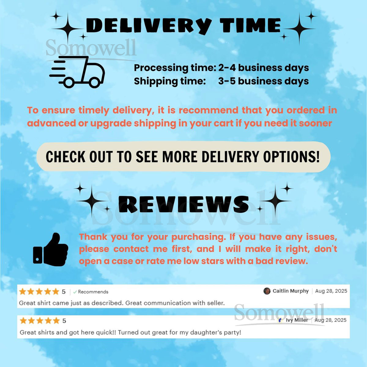 Don’t worry—our packages don’t include return label. Just reach out to support@somowell.com, and we’ll help you place your return or exchange.