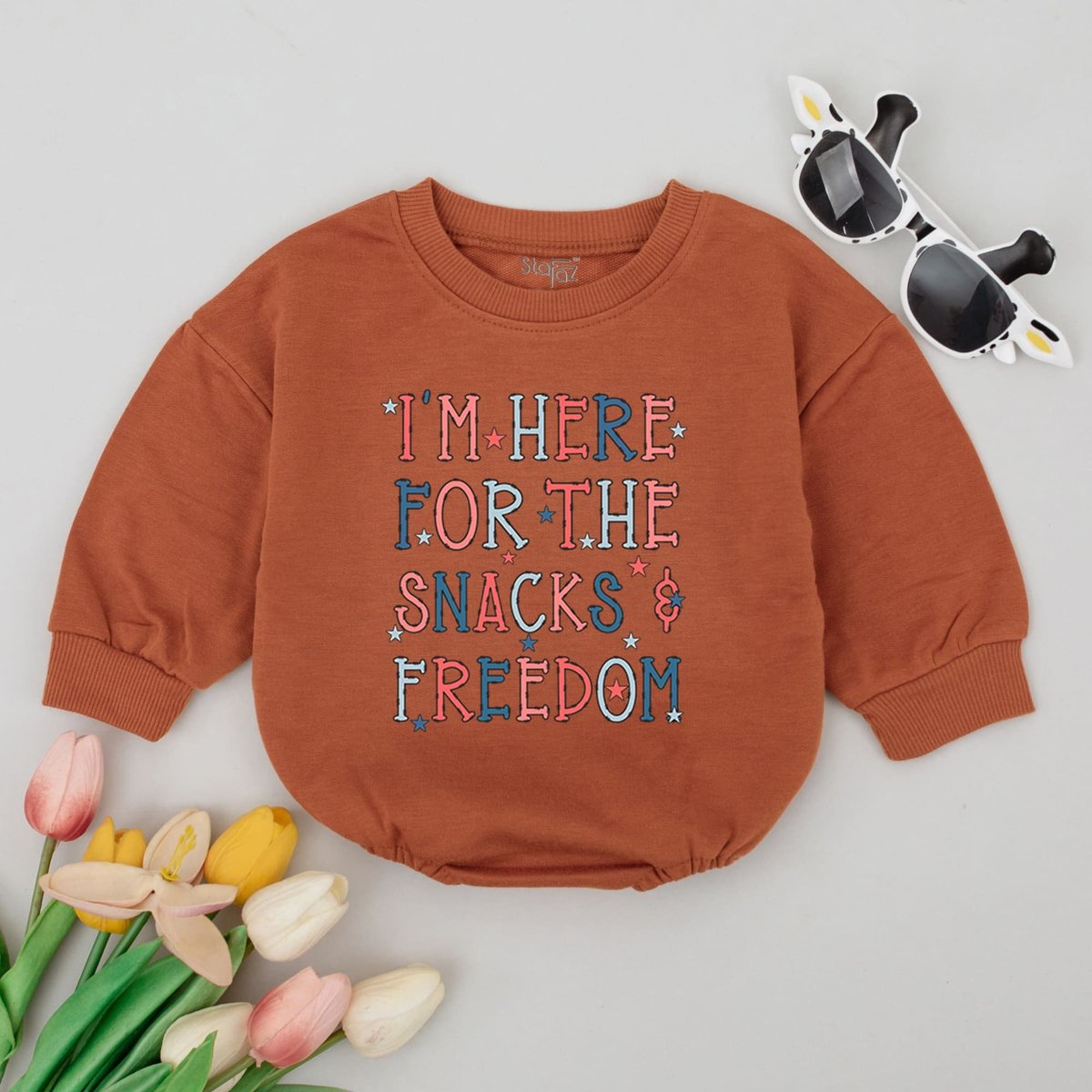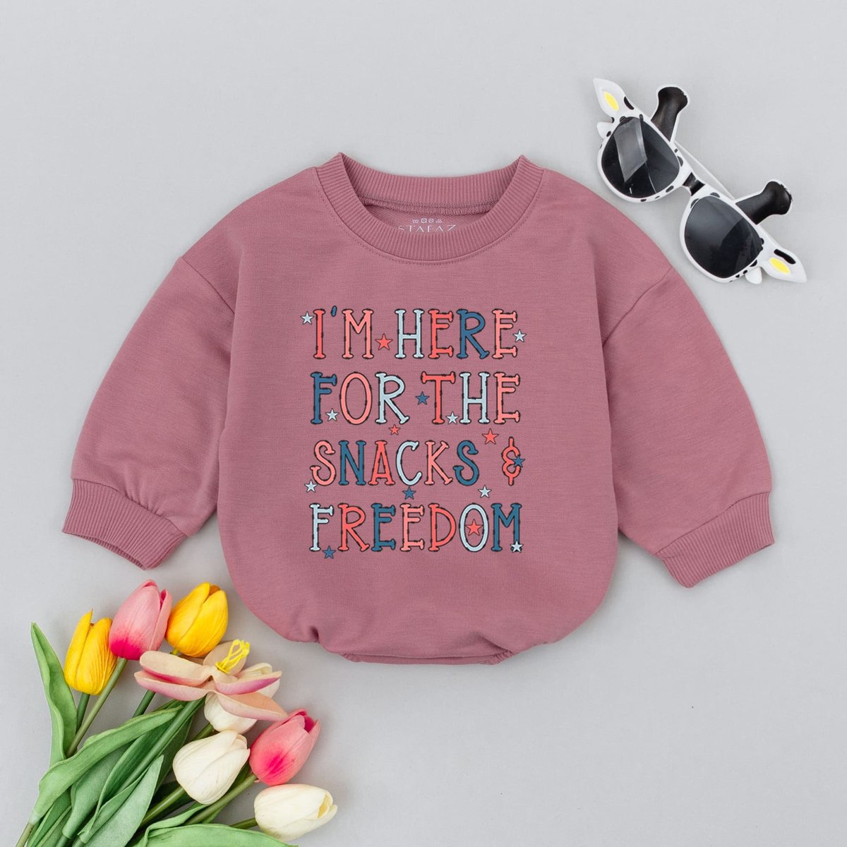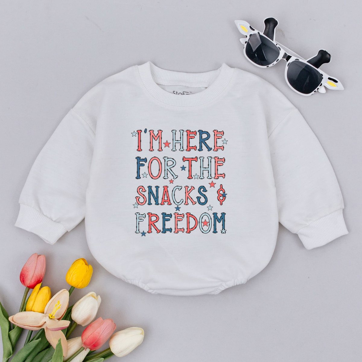 I’m Here for The Snacks and Freedom Baby Romper Fourth of July baby Clothes July 4th Cute Baby Gift 171