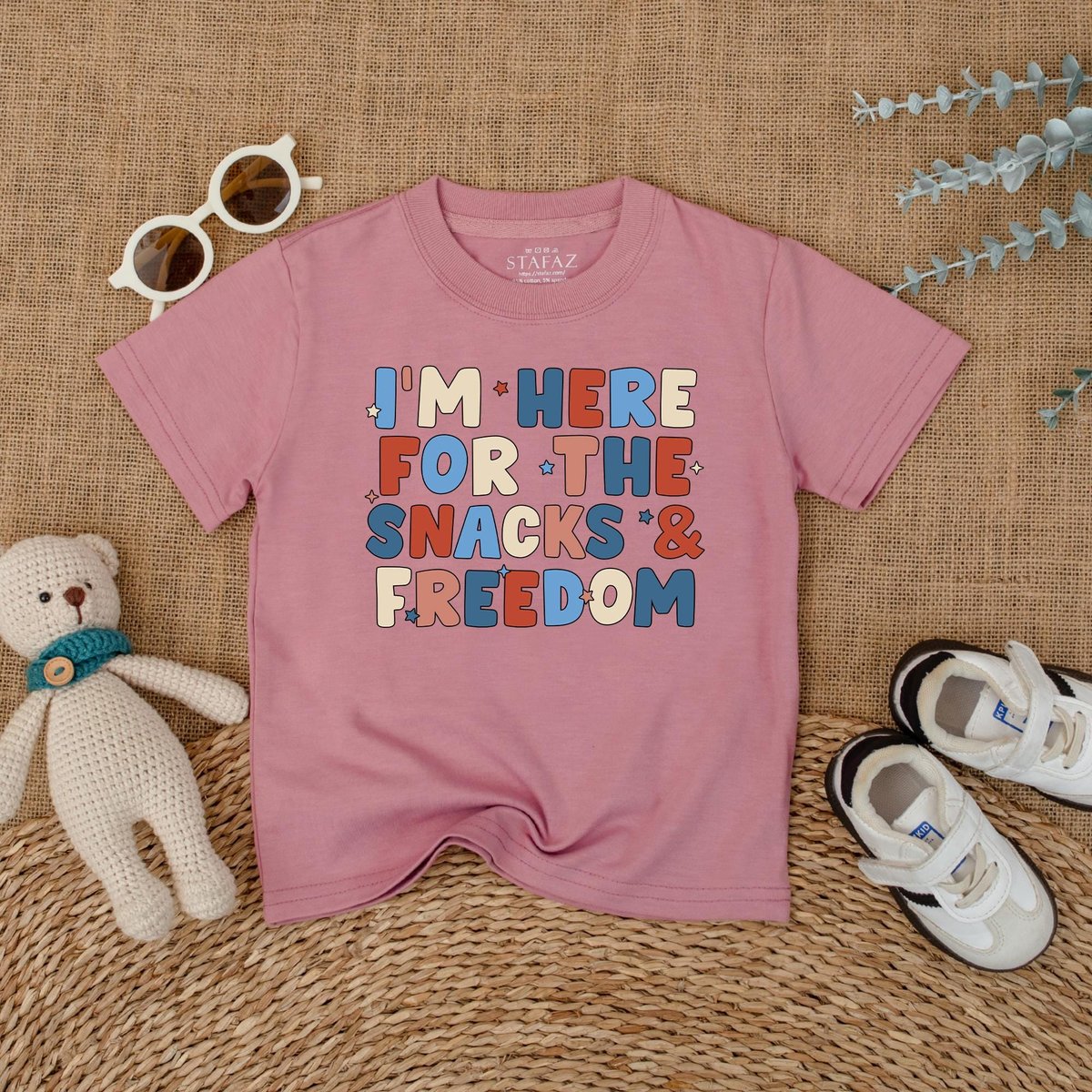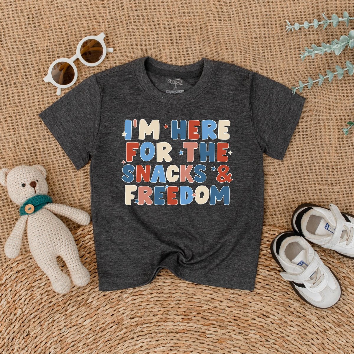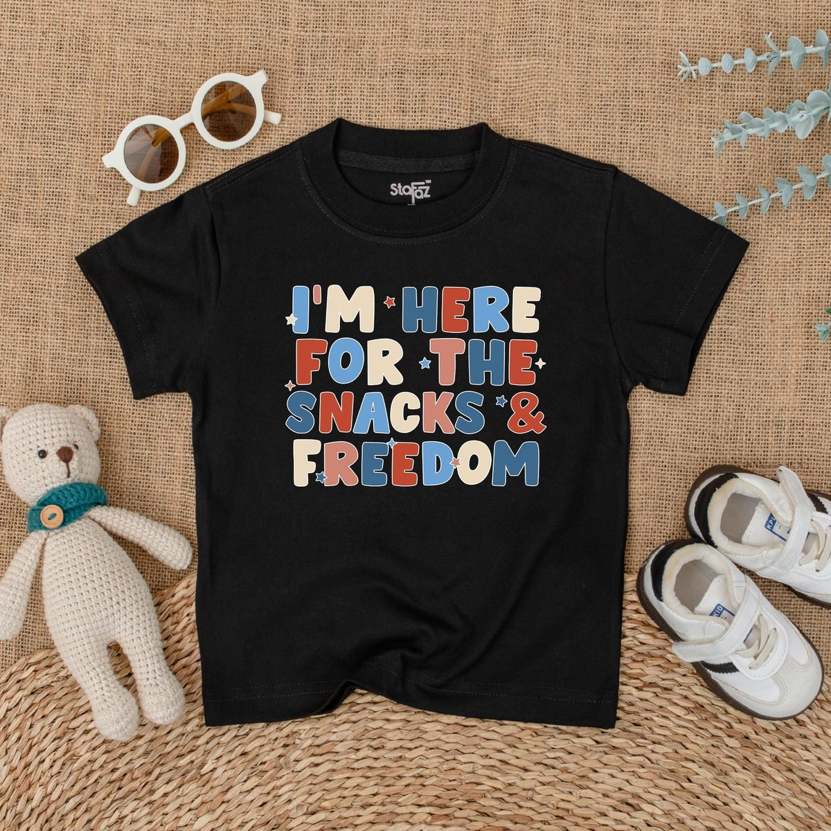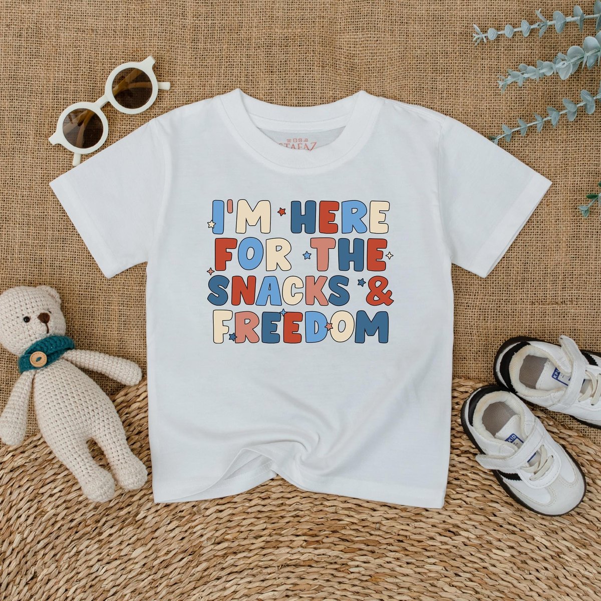 I’m Here For The Snacks And Freedom Romper Independence Day Outfit 4th of July Short Sleeve Bubble 430