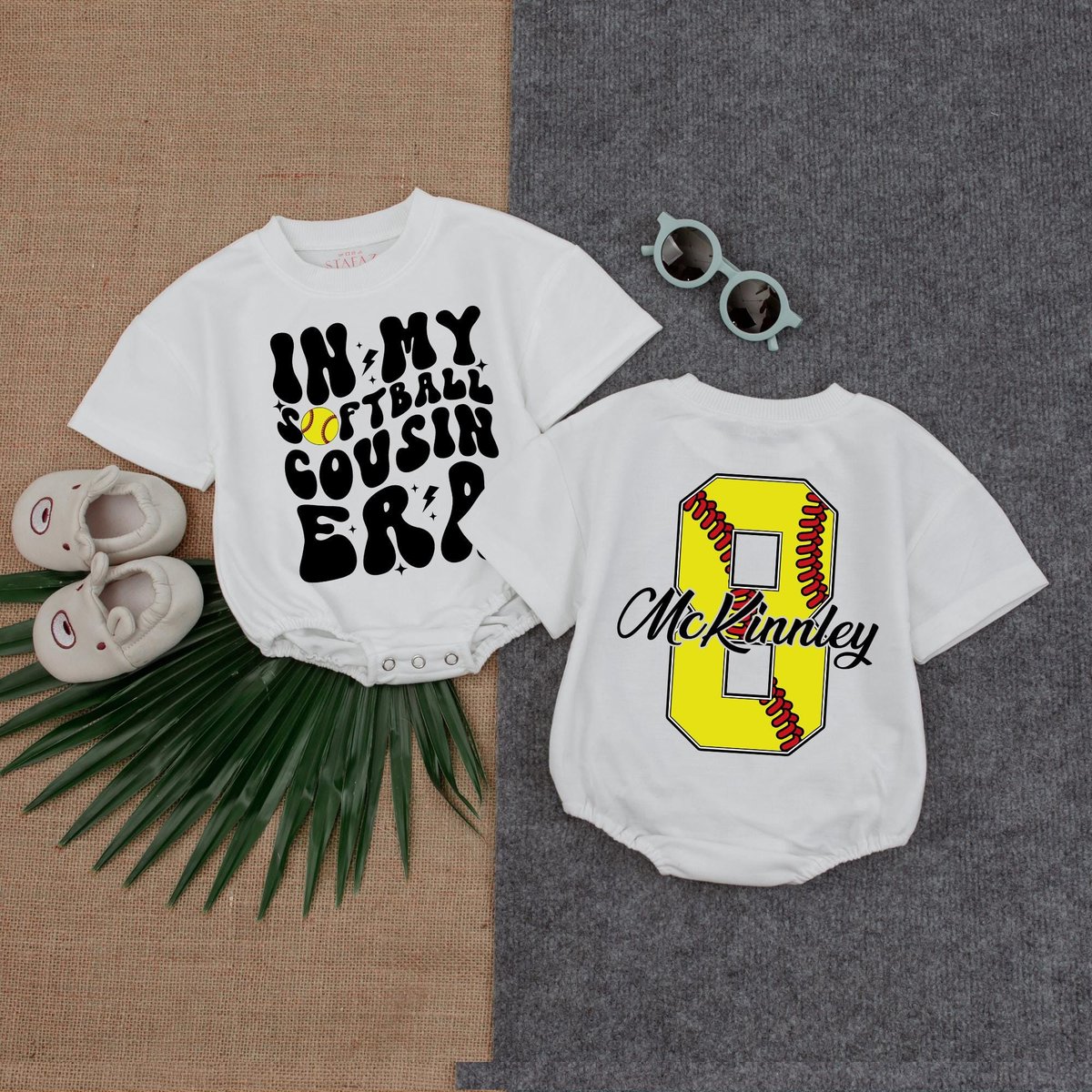 In my Softball Cousin Era Bubble Romper Game Day Baby Clothes Gameday Outfit Baby Clothes Short Slee 187