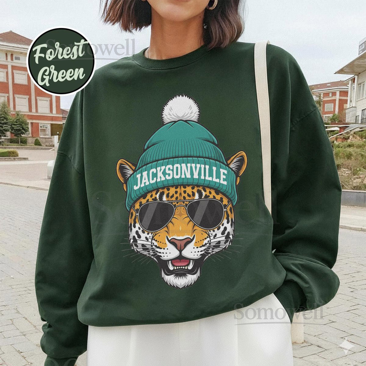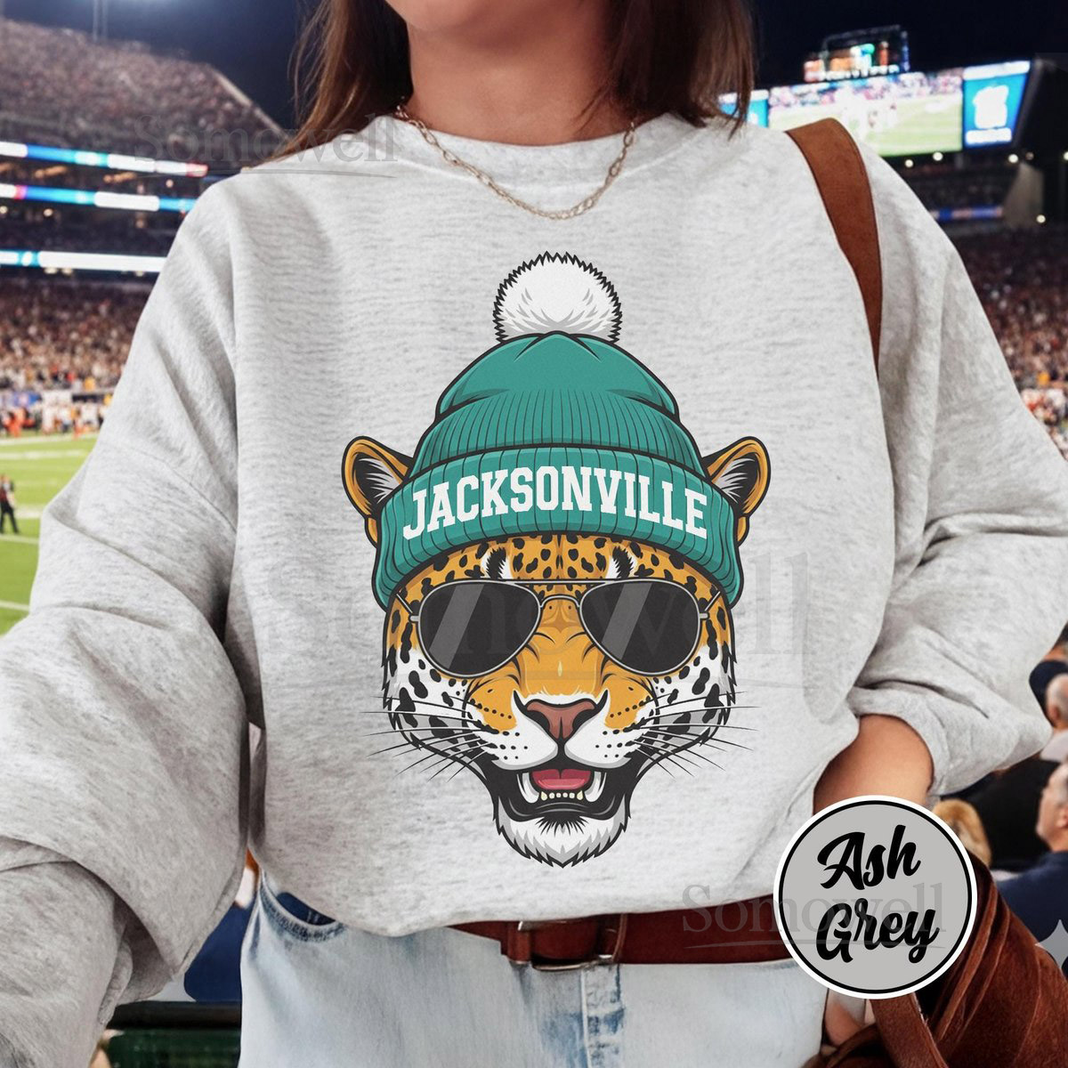 Jacksonville Football Mascot Crewneck Sweatshirt T-Shirt Jaguar Gift For Sport Fan Sunday Game Day Outfit Jags Echo Glasses Gift F_600