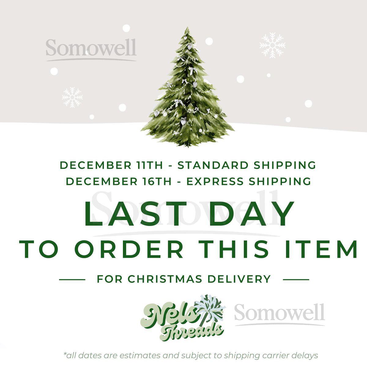 • Shipping times may vary depending on your location and any potential carrier delays (e.g., weather conditions or holiday surges).