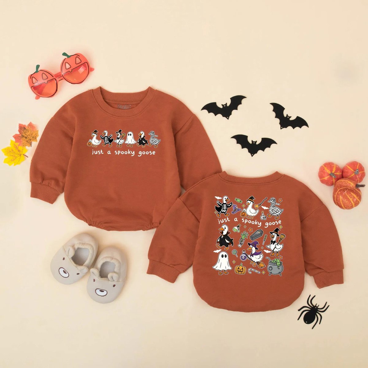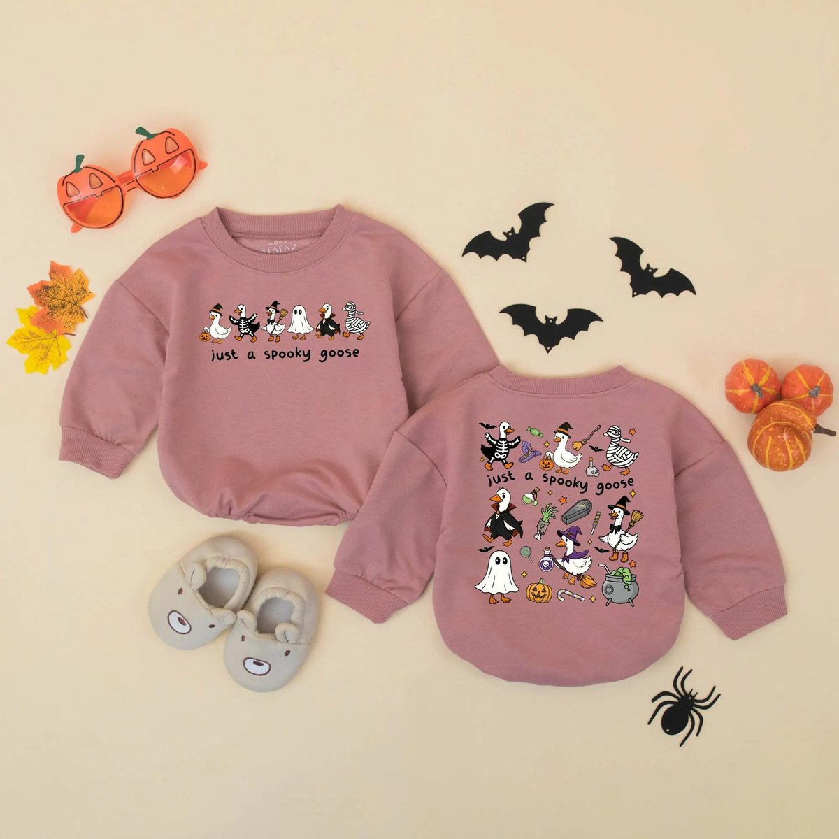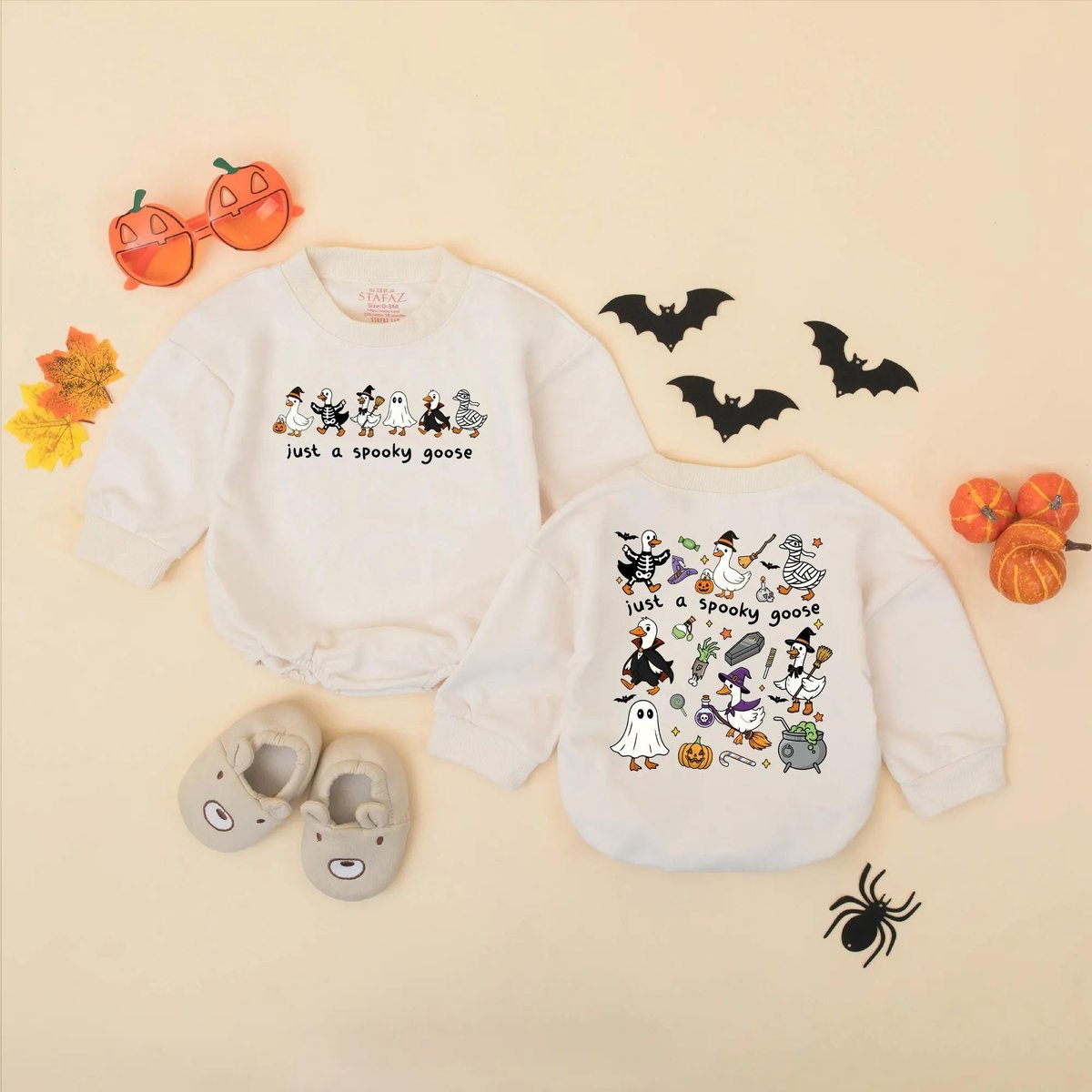 Just a Spooky Goose Baby Romper Funny Halloween Baby Outfit Halloween Goose Toddler Sweatshirt Fall 435