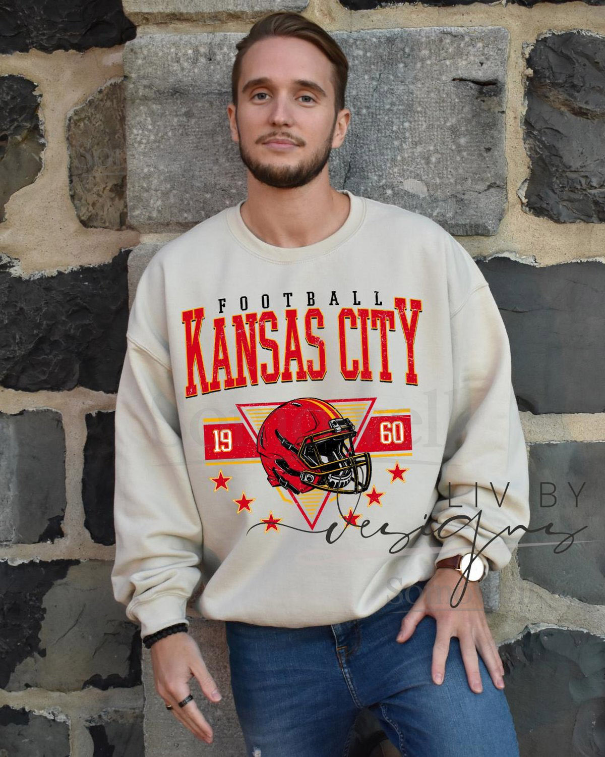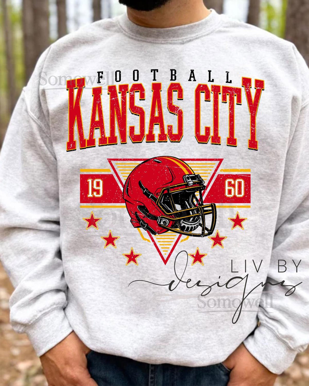 Kansas City Football Crewneck Sweatshirt Gildan Unisex Retro Football Crew Vintage Helmet Graphic Sweatshirt DTF Printed Fan Apparel_34