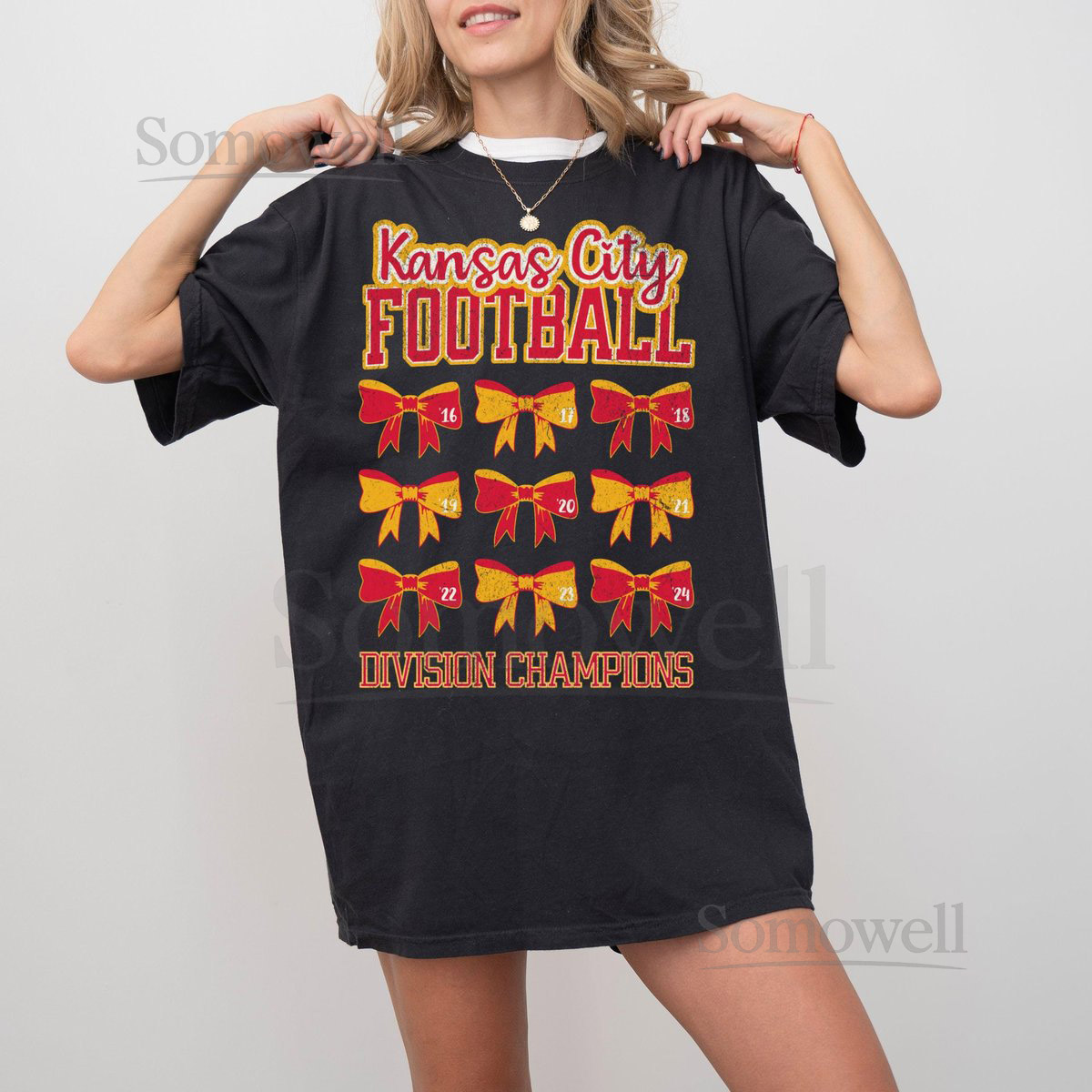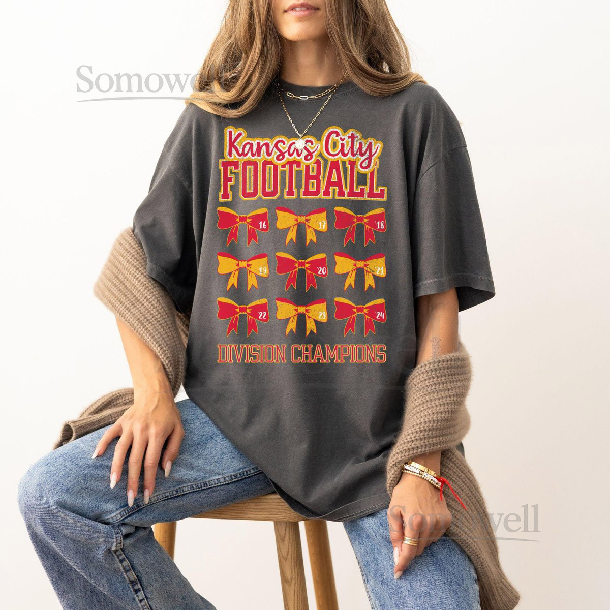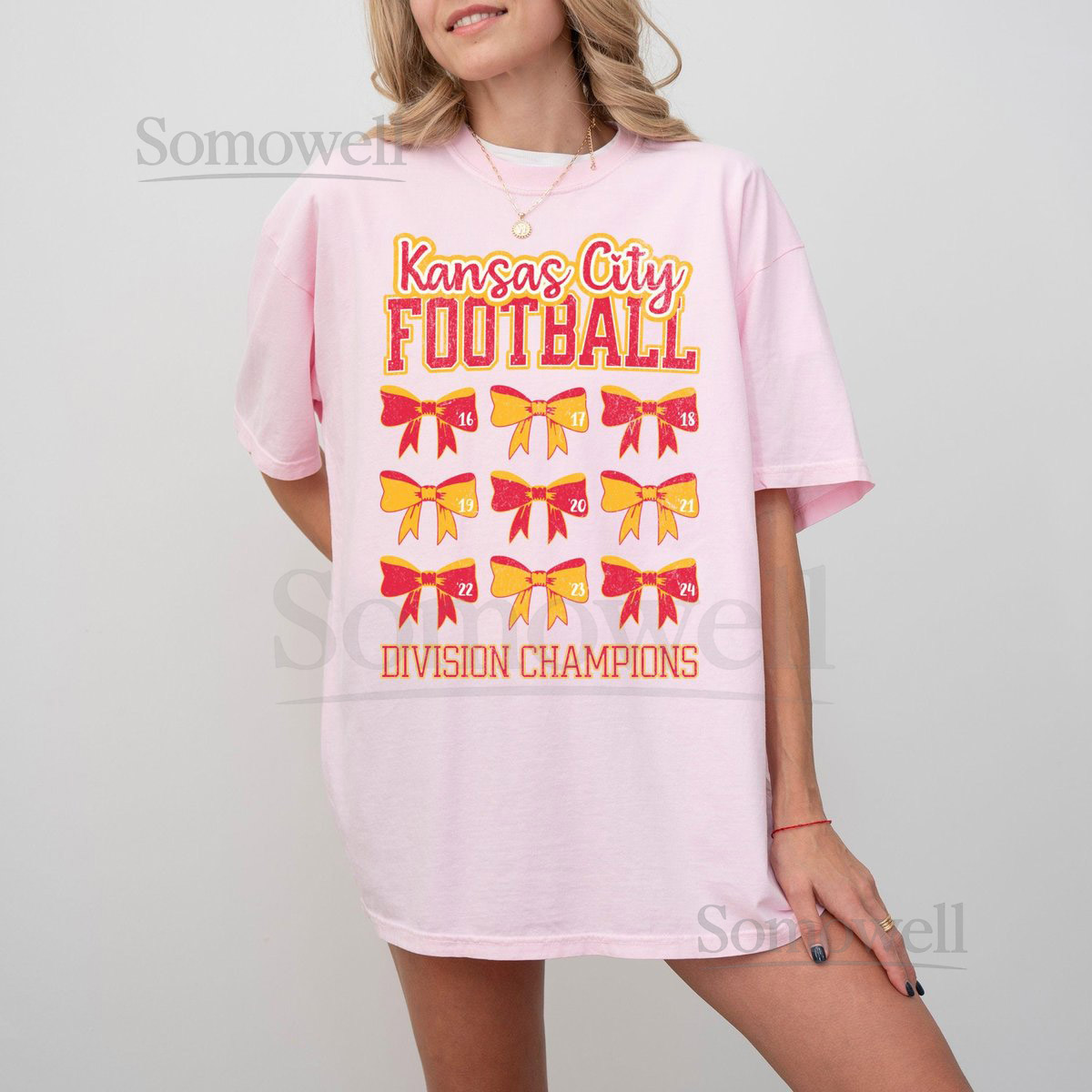 Kansas City Football Nine Time Division Champions T-shirt Retro Chief Football Shirt Feminine Girly Football Tee Coquette Bow Football_348