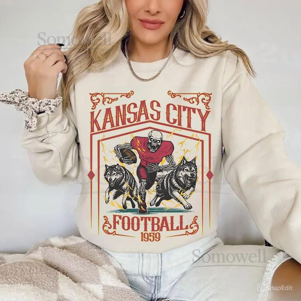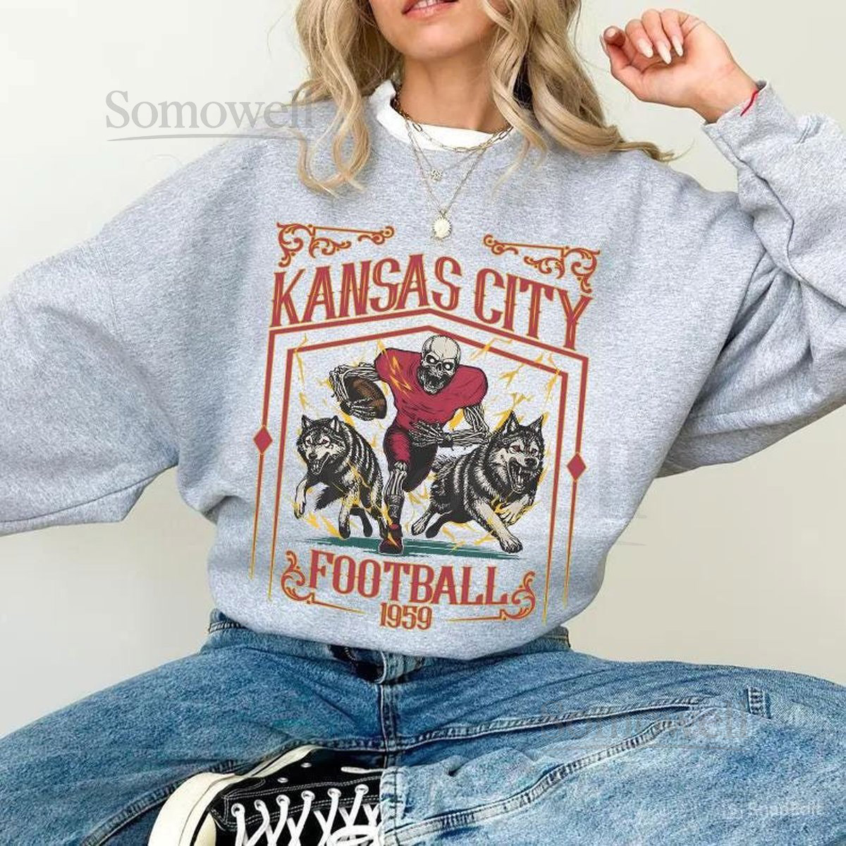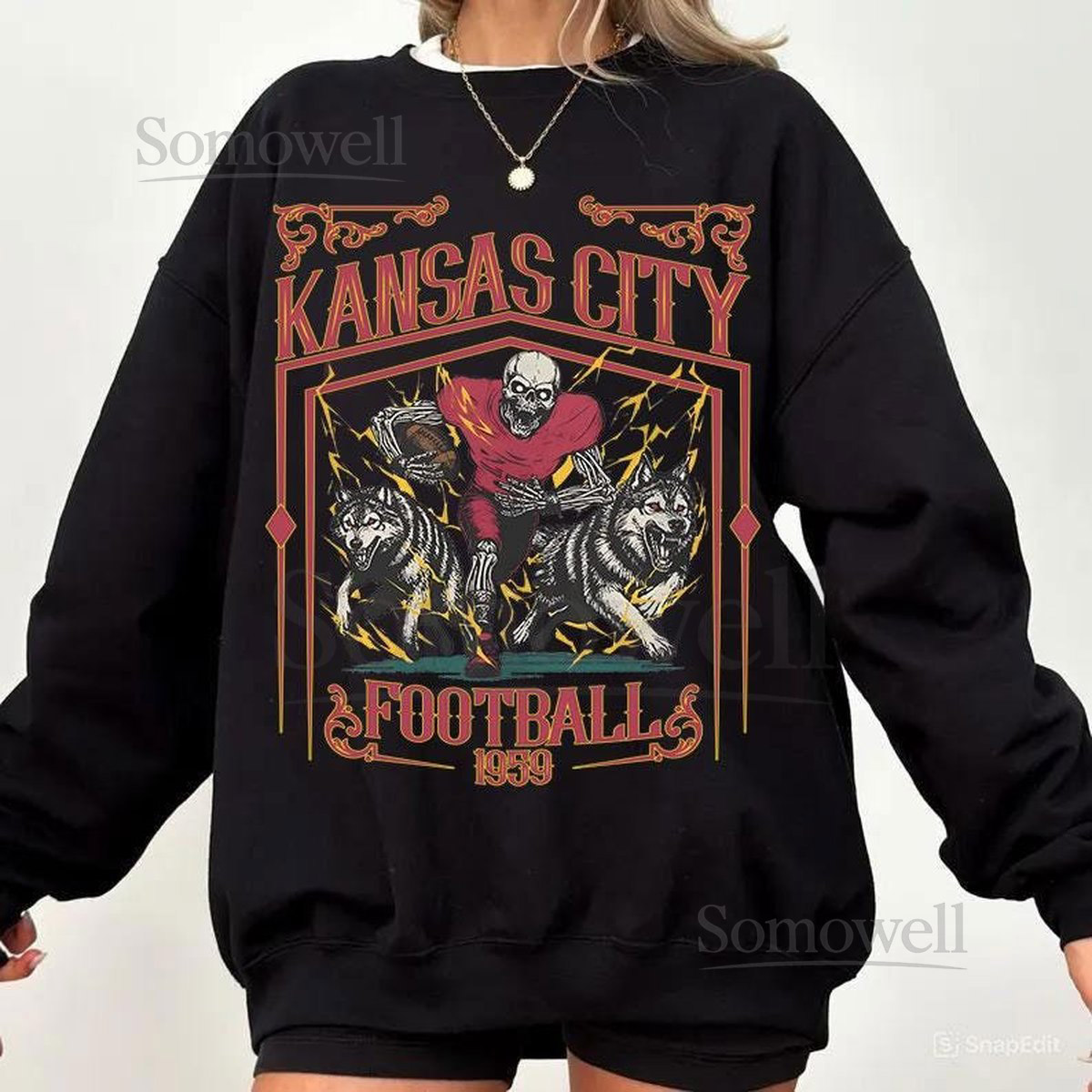 Kansas City Football Skull Vintage SweatshirtKansas City Fan GiftsFootball Game Day t-shirtKansas City Football CrewneckFootball T-Shirt_38
