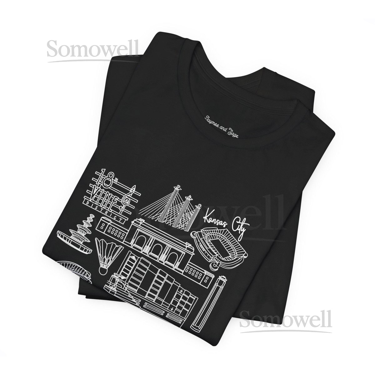 Kansas City Landmarks Unisex Tee Museum Library Stadium Heart Around Town Shirt Iconic Cityscape Tshirt KC Missouri Graphic Top Travel_390