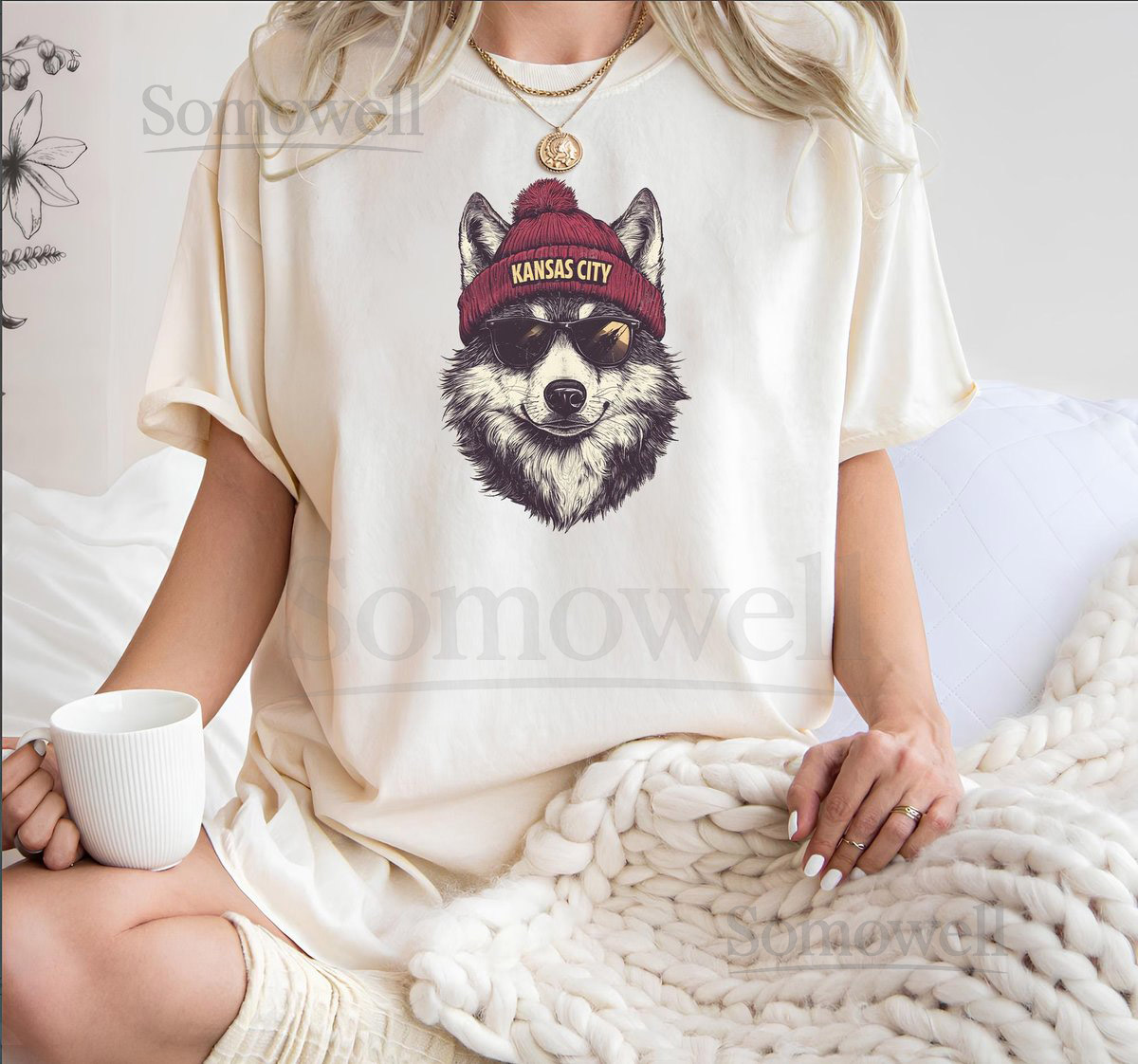 Kansas City T-Shirt Beanie Wolf Mascot Vintage Sketch Shirt Kansas City Graphic Tee Game Day Vibes KC Fan Gift_455