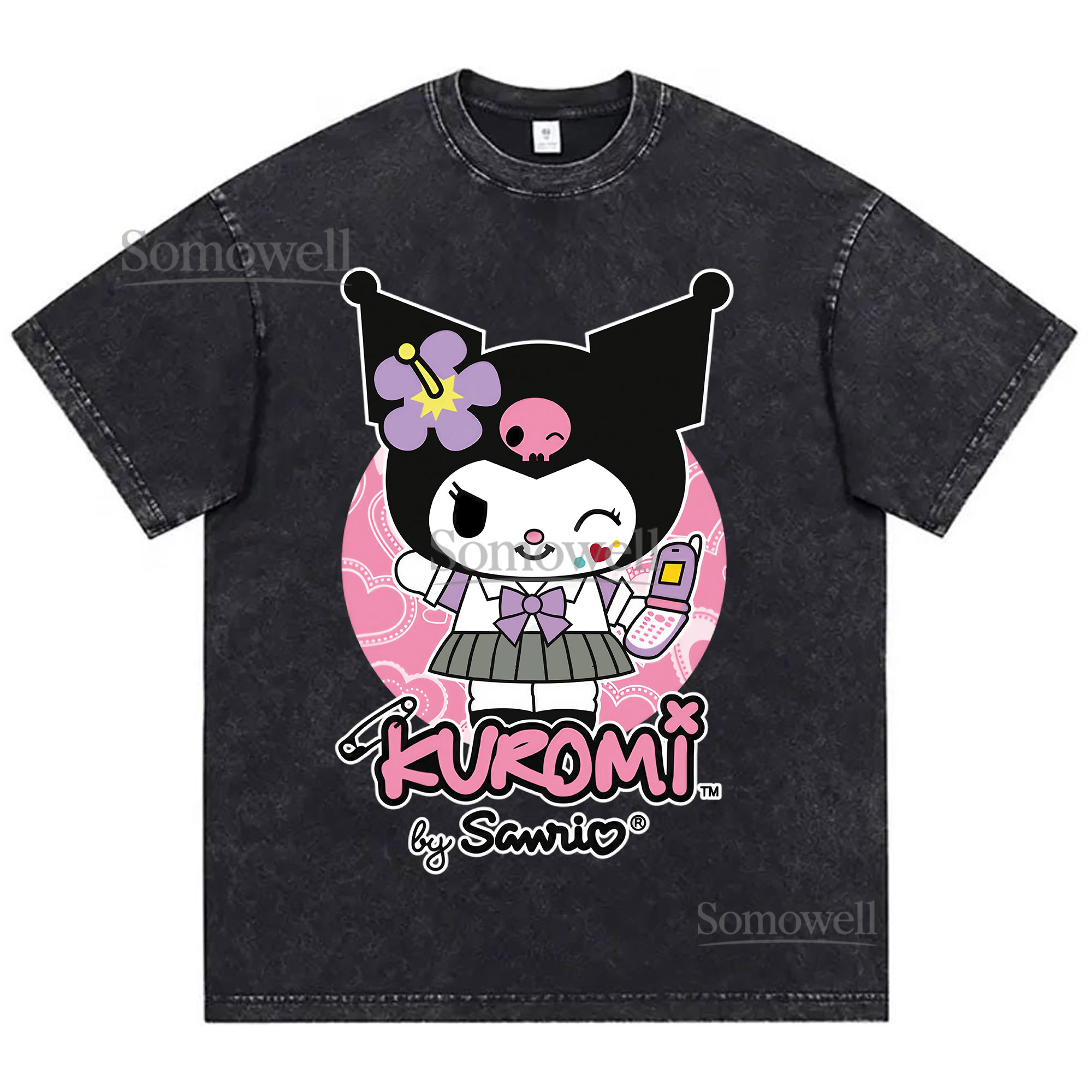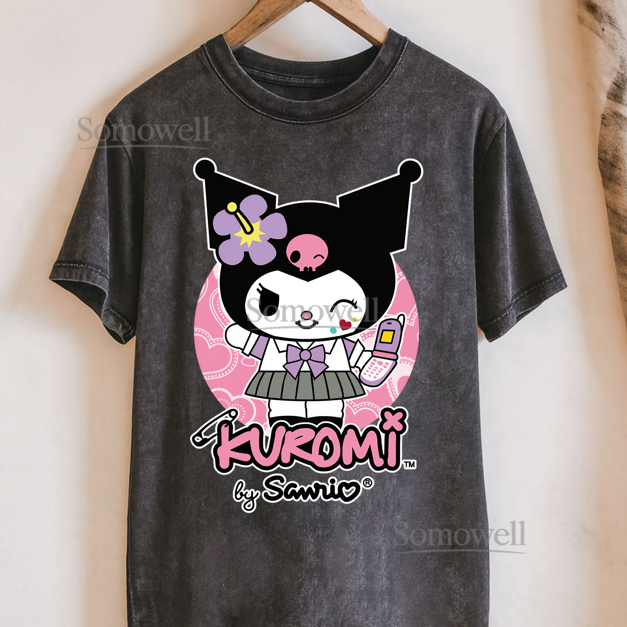 Kuromi Schoolgirl Phone Pink Sanrio Anime Graphic ,hoodie sweatshirt t shirt vintage Cute Japanese Kawaii T Shirt