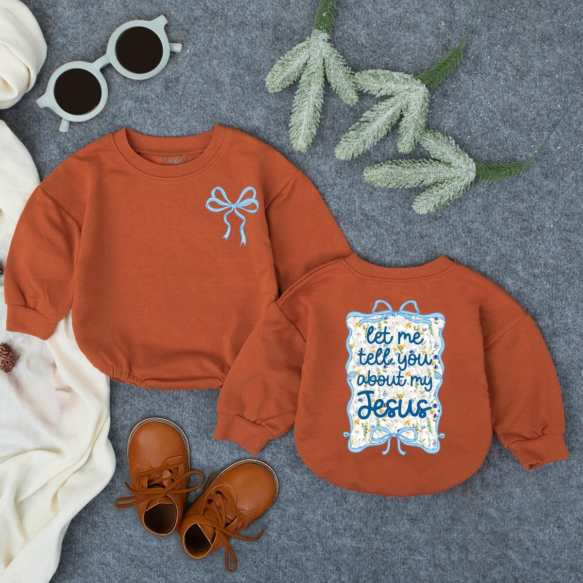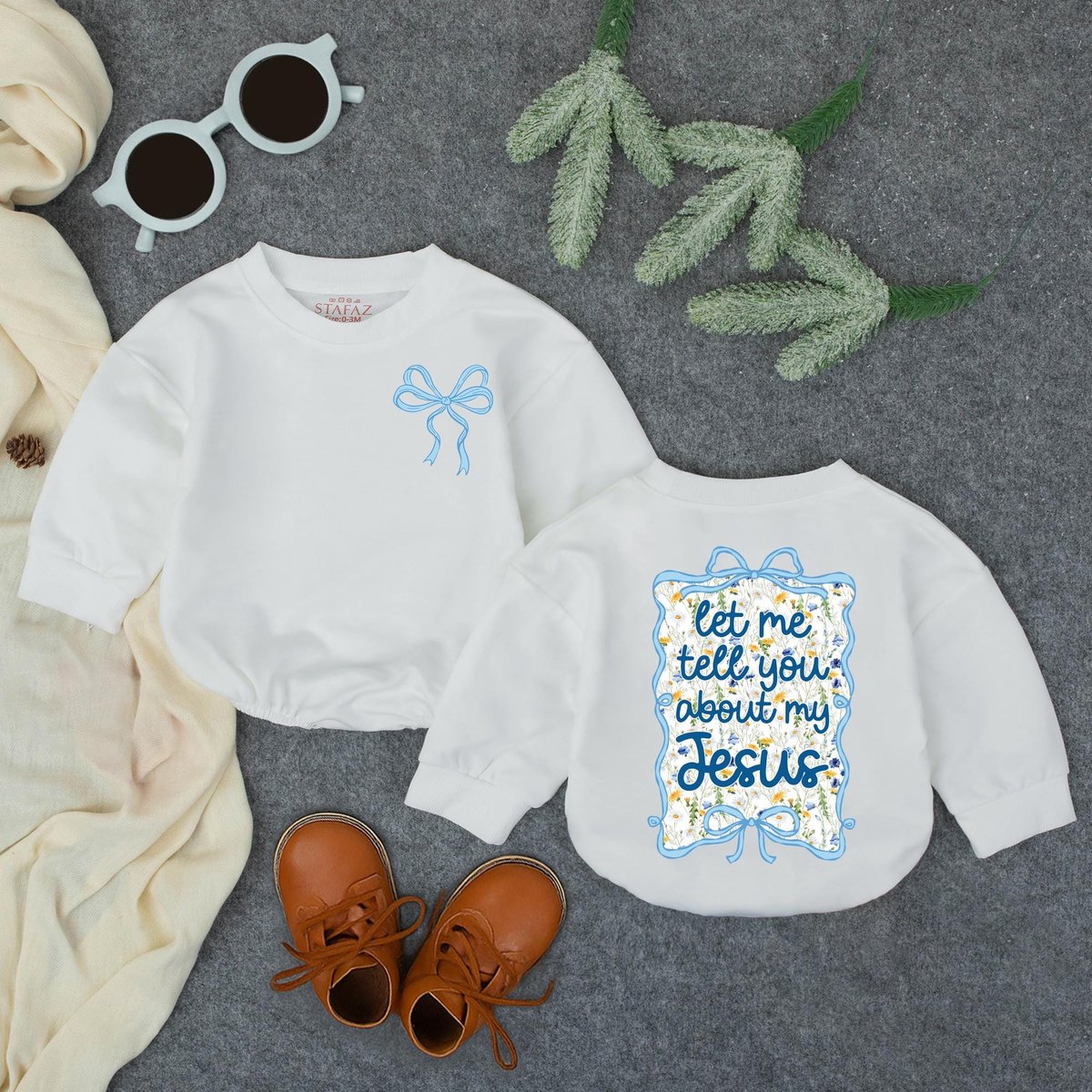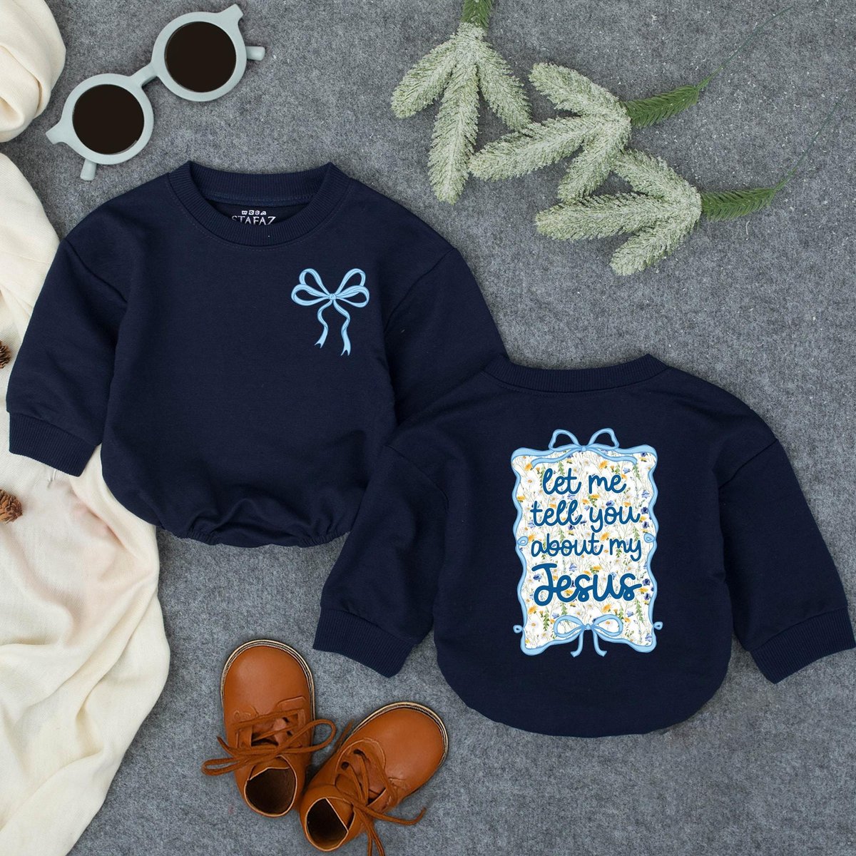 Let Me Tell You About My Jesus Long Sleeve Bubble Romper Baby Girl Christian Oversized Bodysuit Infa 435