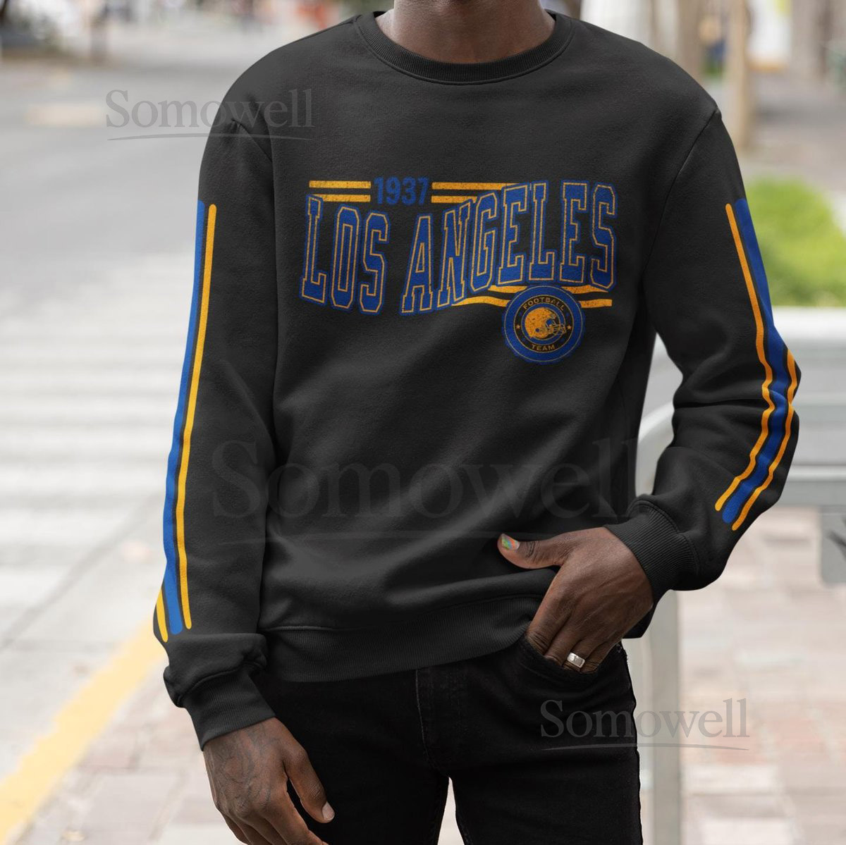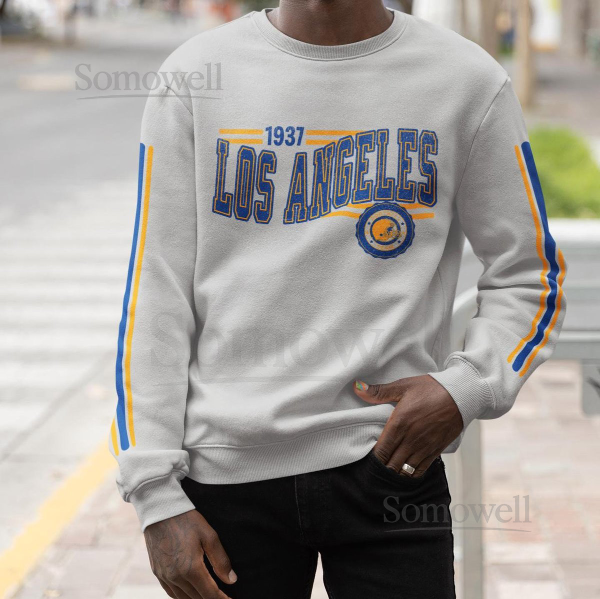 Be the first to review “Los Angeles Football Retro Crewneck Sweatshirt Ram Retro Stripe Sleeve Sweatshirt LA Ram Unisex Shirt Game Day Shirt LA Ram Fan Gift_84”