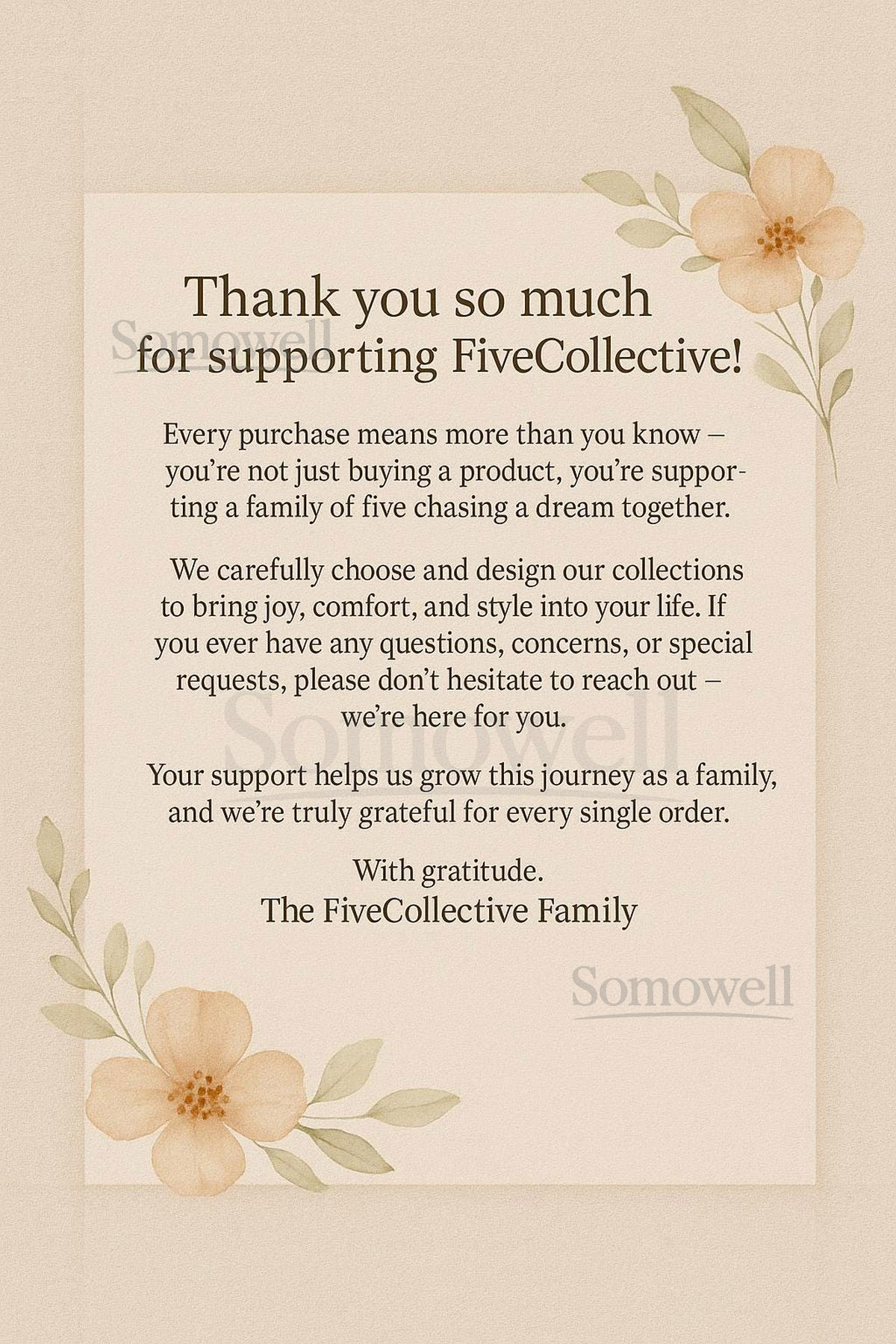 Don’t worry—our packages don’t include return label. Just reach out to support@somowell.com, and we’ll help you place your return or exchange.