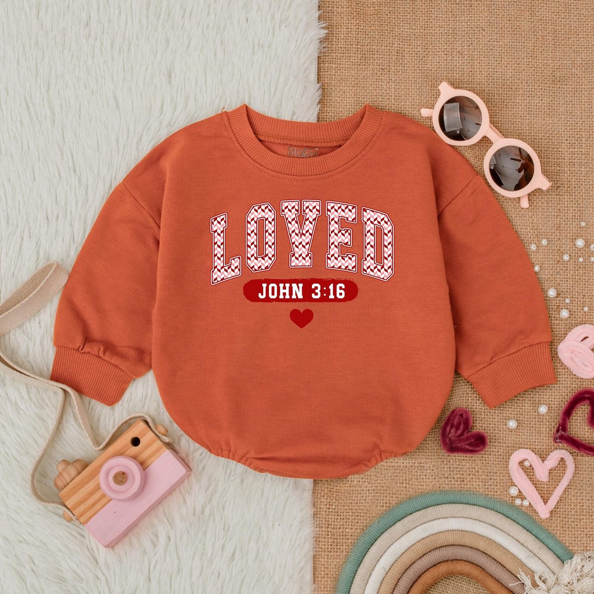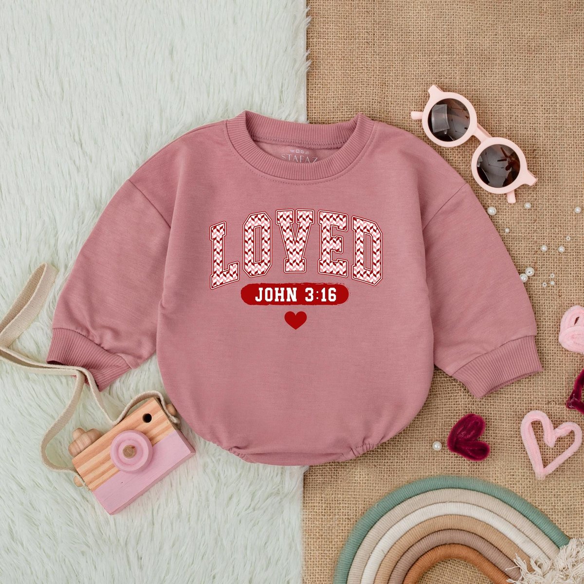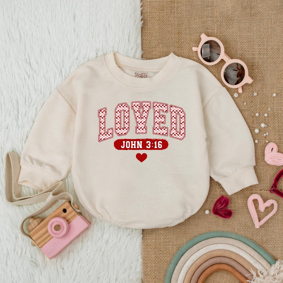 Loved Valentine Baby Bubble Romper First Valentines Baby Outfit Valentines Day Shirt Baby Bodysuit B 183
