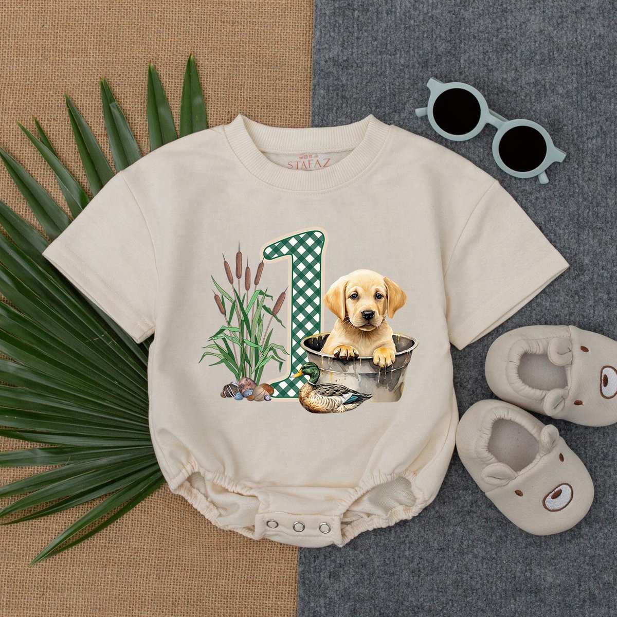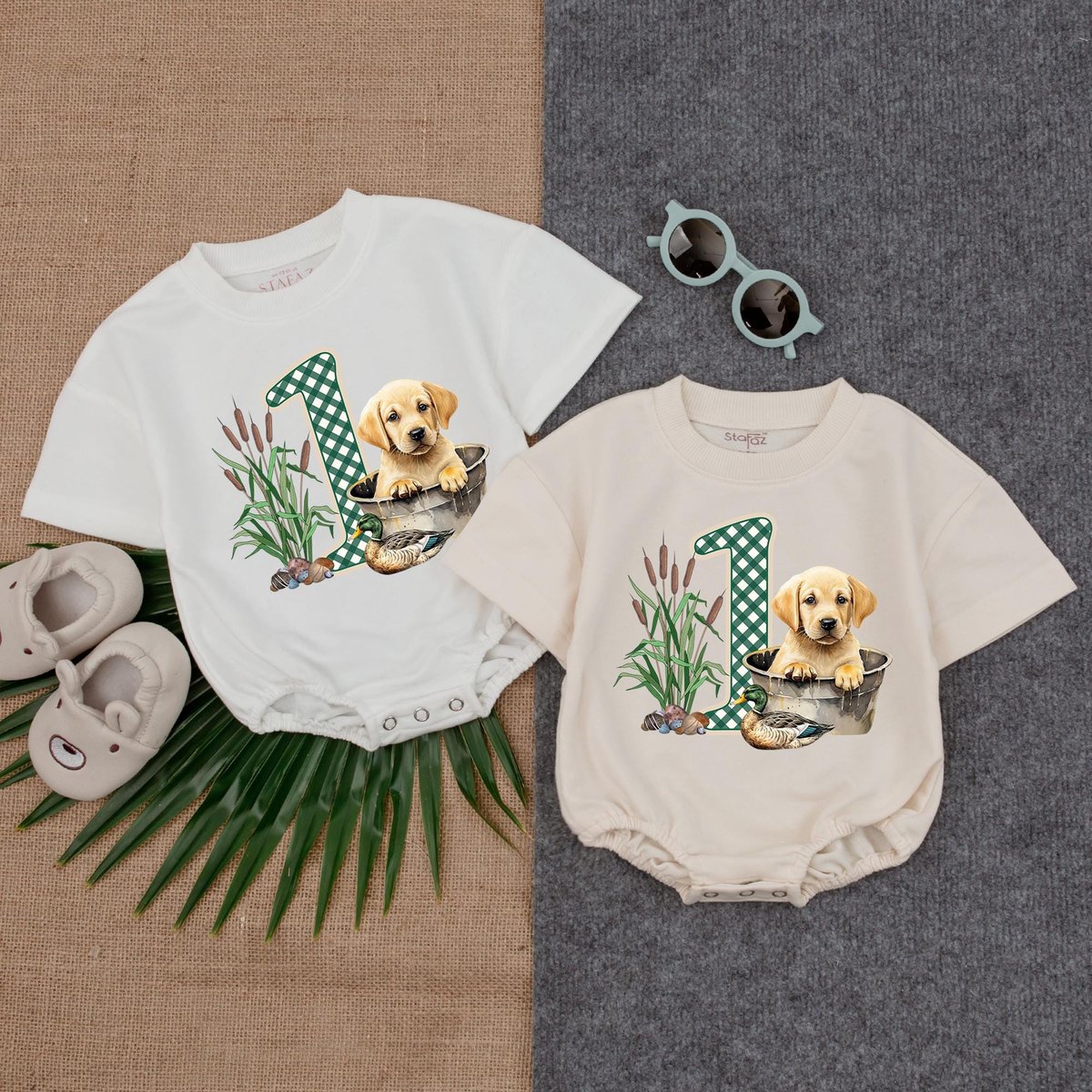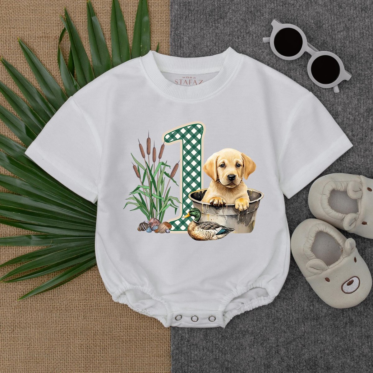 Mallard Duck and Lag Dog Baby Romper Hunting Lucky Duck Baby Clothes First Birthday Baby Outfit Mall 186