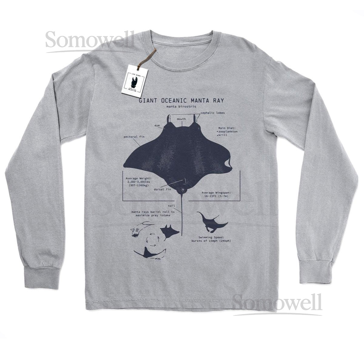 Manta Ray Anatomy Long Sleeve Manta Ray Shirt Marine Biology Shirt Manta Ray Long Sleeve Science Illustration Manta Ray Gifts_599