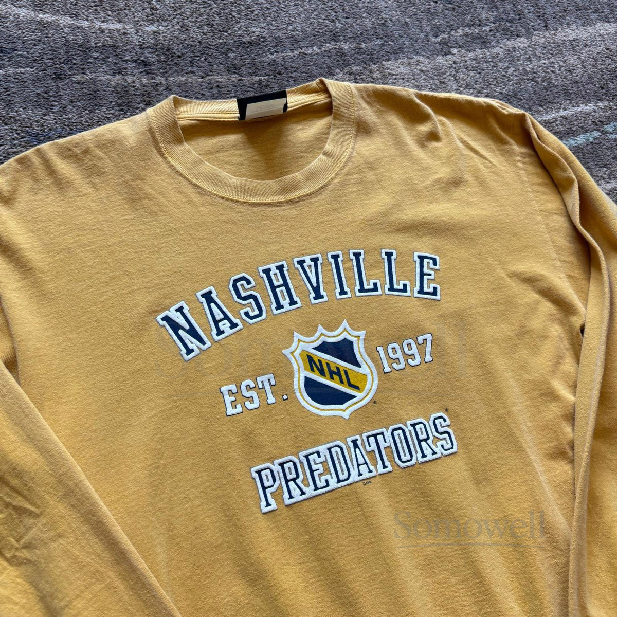 Men’s Vintage Nashville Predators NHL Faded Yellow Long Sleeve Shirt Sz Large_289