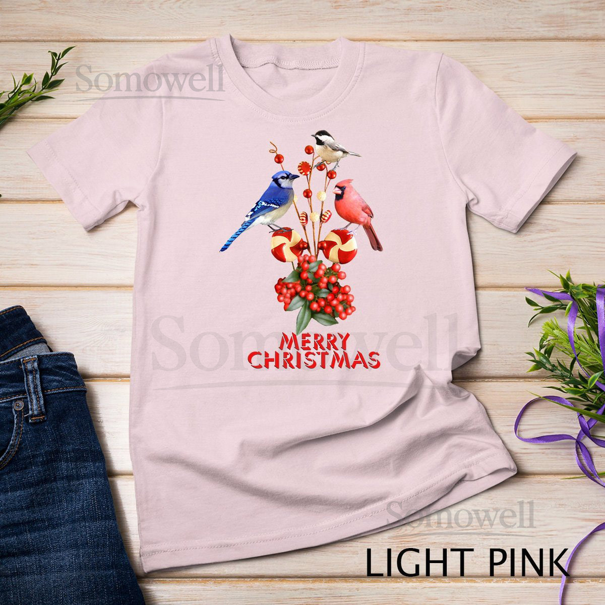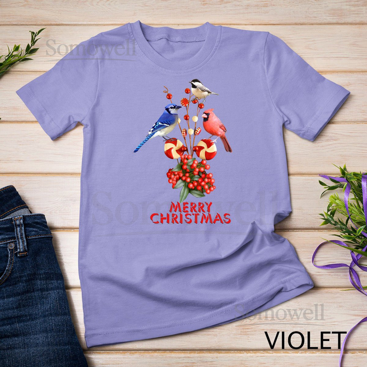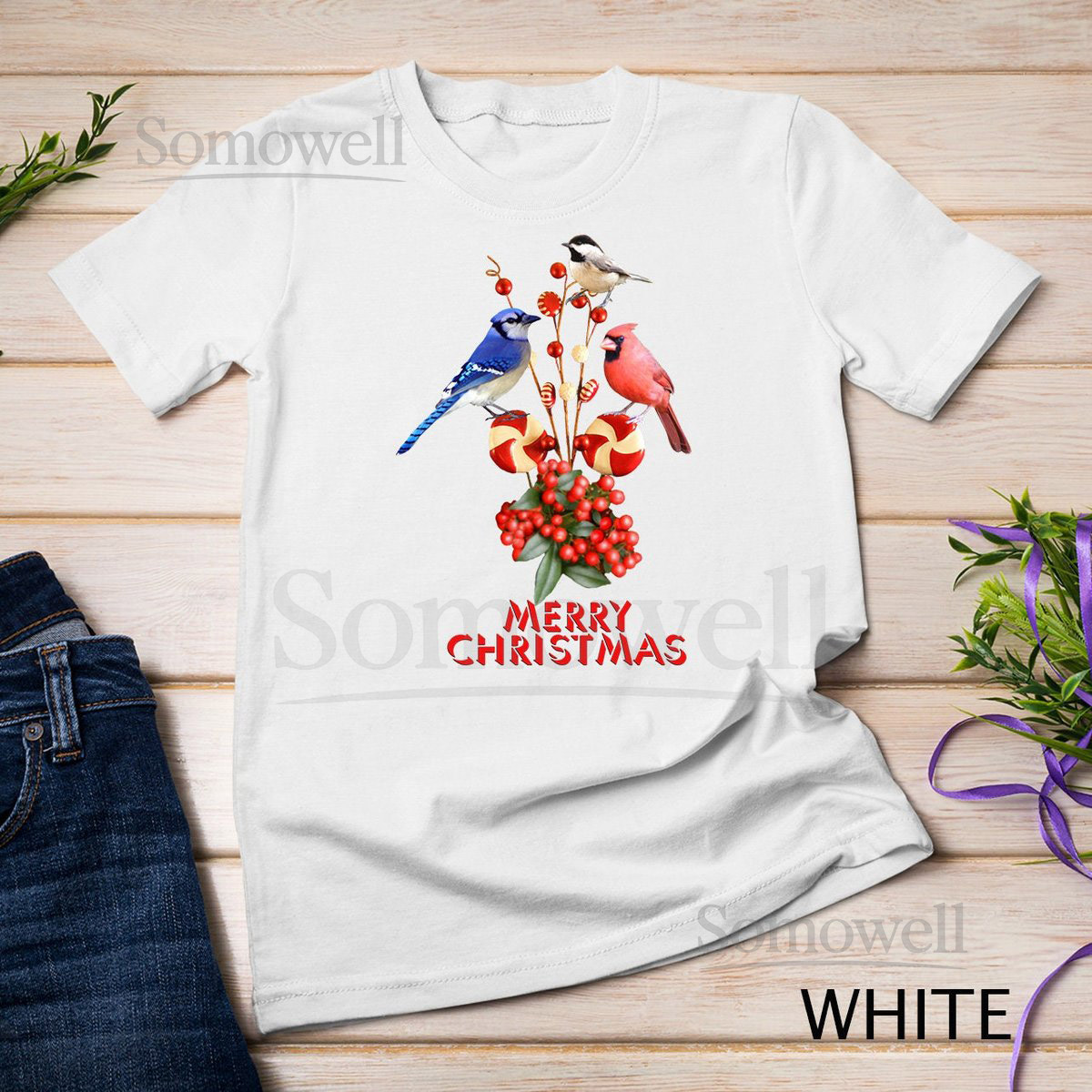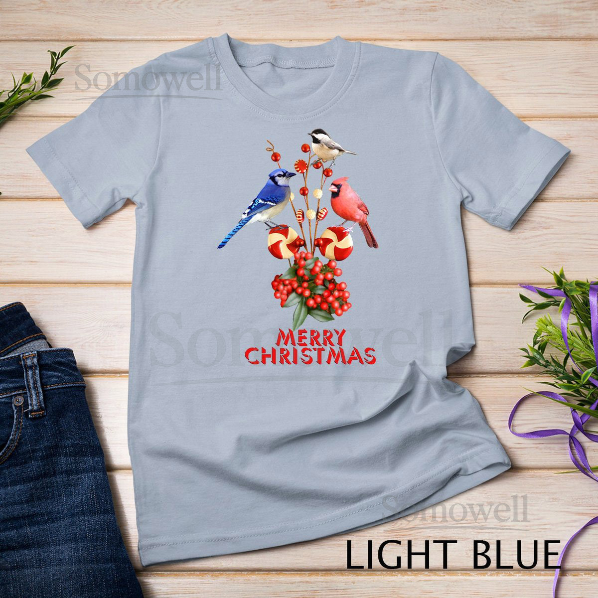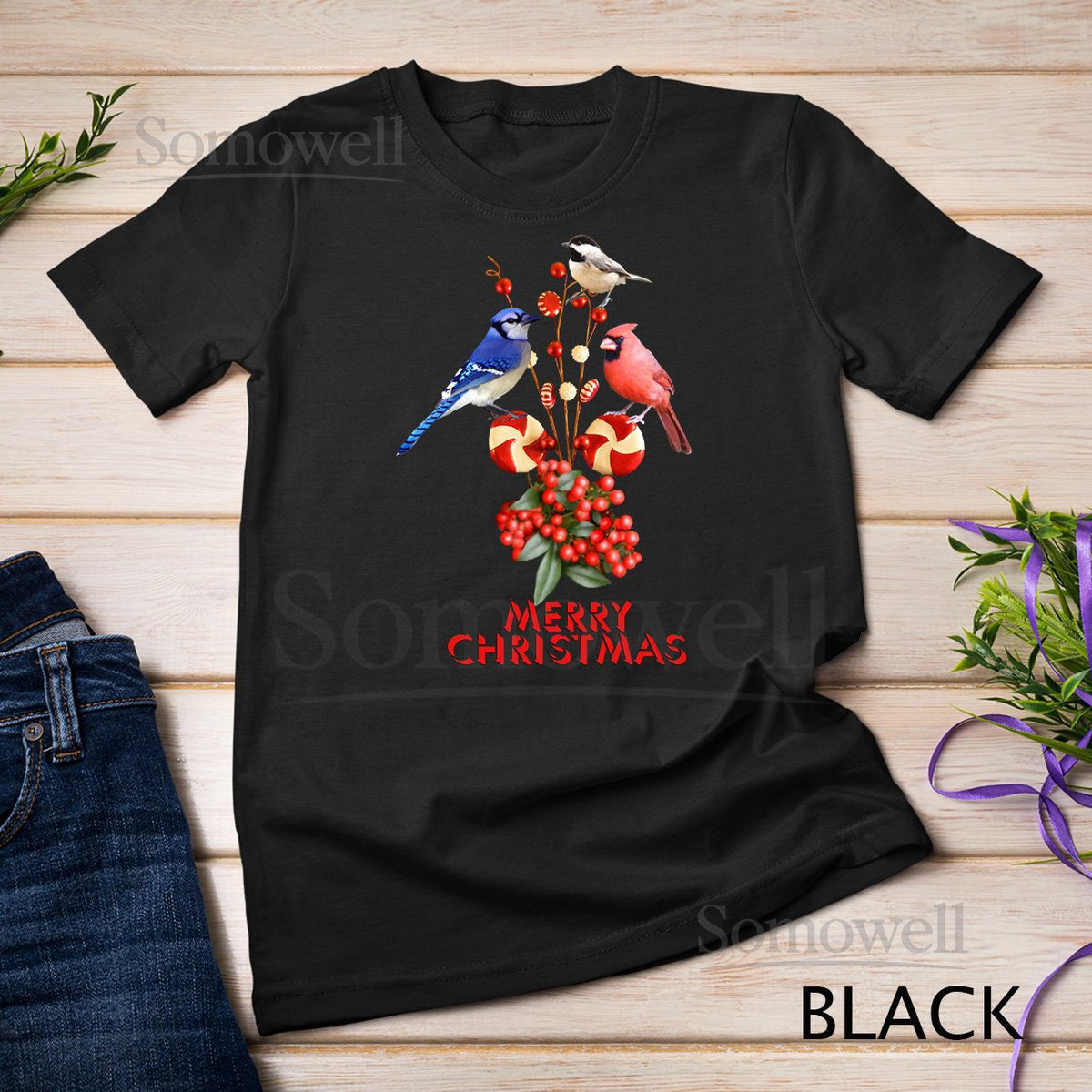 Merry Christmas Cardinal Blue Jay and Chickadee T-Shirt Sweatshirt_676