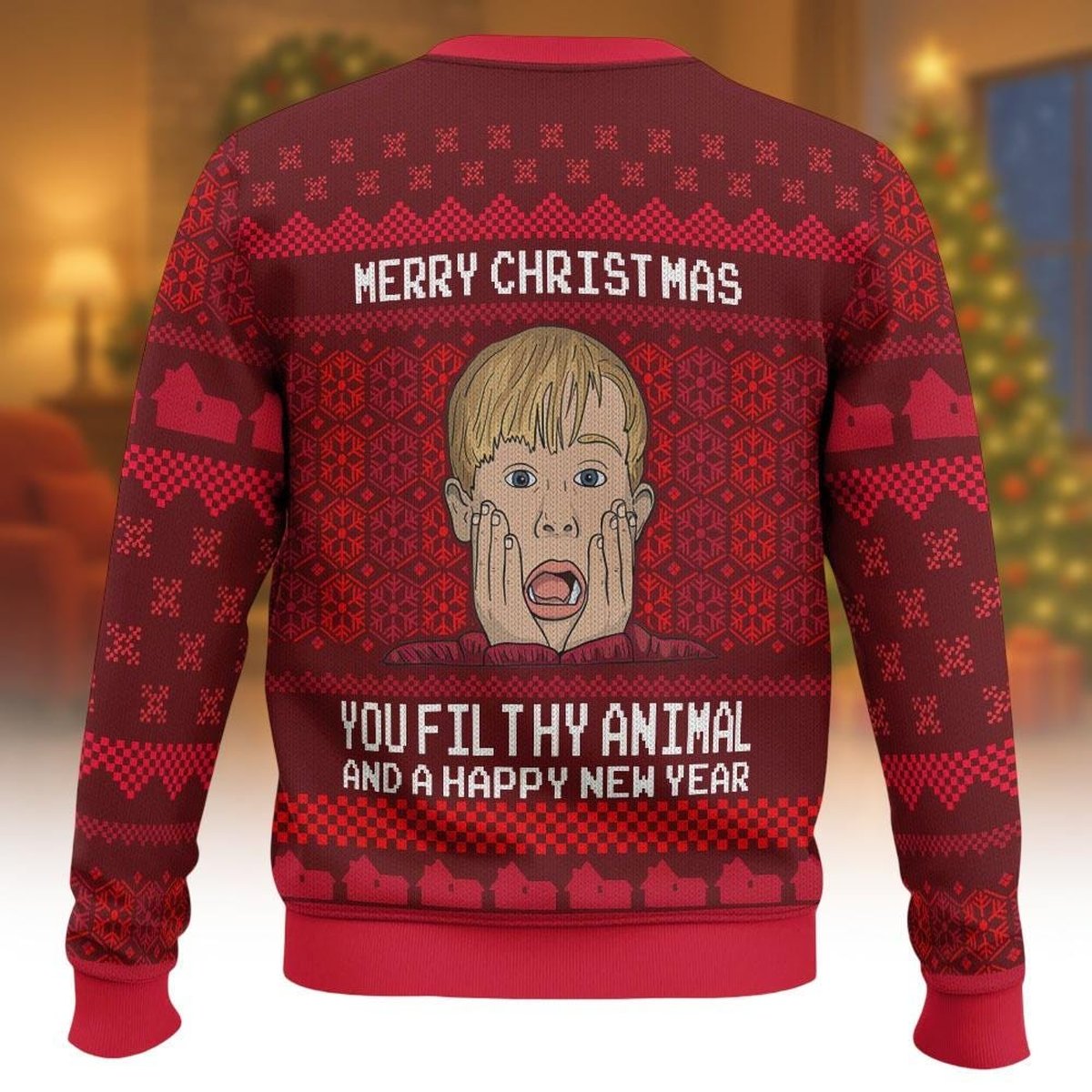 Merry Christmas You Filthy Animal Red Ugly Christmas Sweater Funny Home Alone Jumper