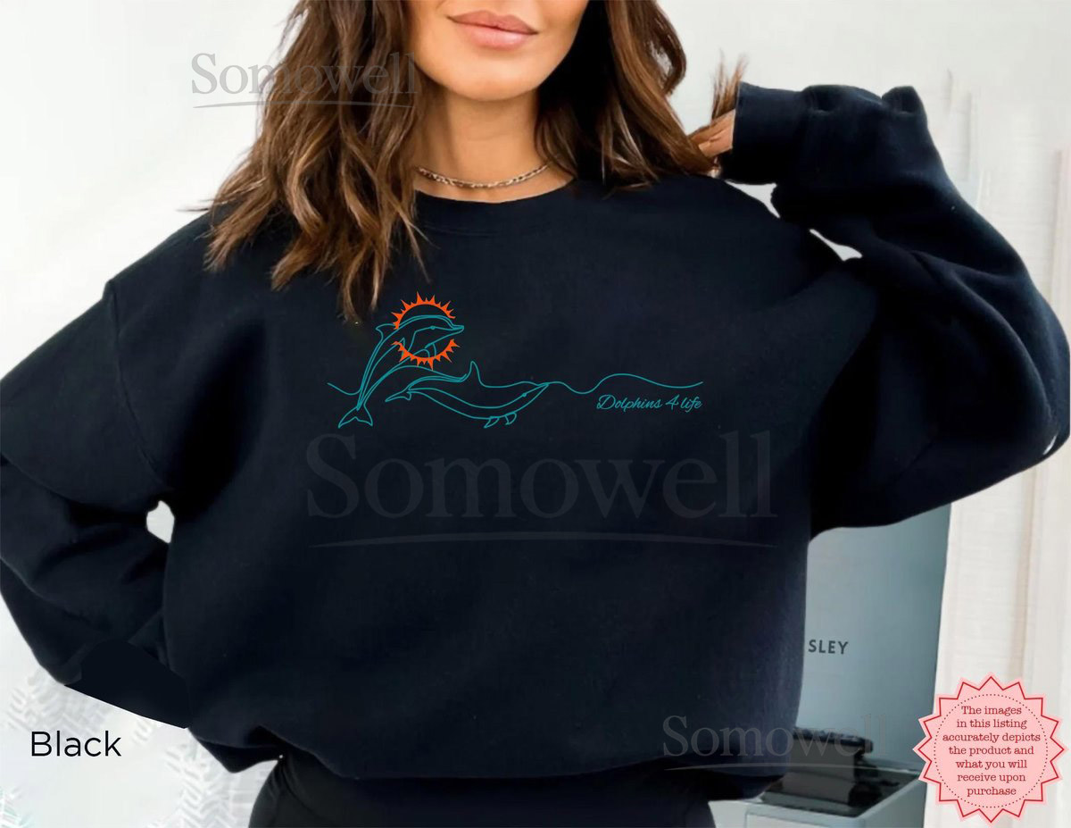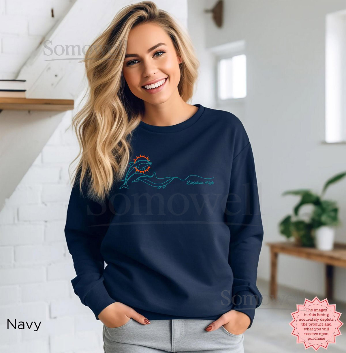 Miami Dolphins Women’s Minimalist Sweatshirt Show Your Love for the Miami Dolphins with this Line Art Design – Dolphins 4 Life_436