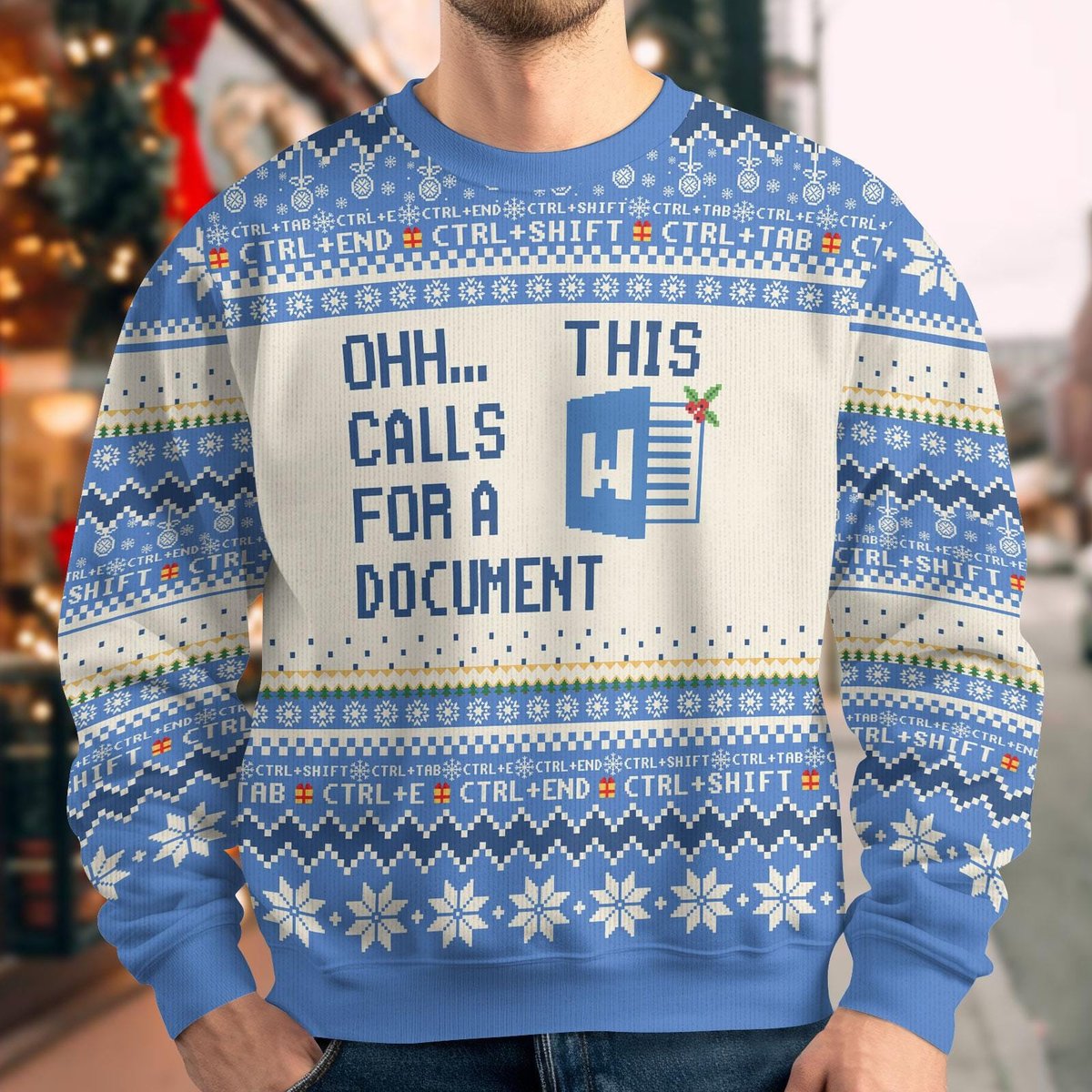 Microsoft Word Funny Blue Ugly Christmas Sweater Ohh This Calls For A Document Knit Jumper