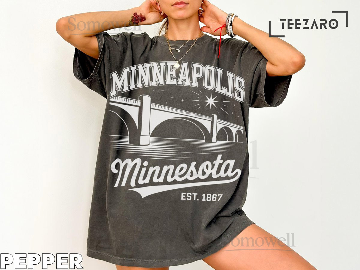 Minneapolis Bridge Graphic Tee Black and White Souvenir Shirt_568