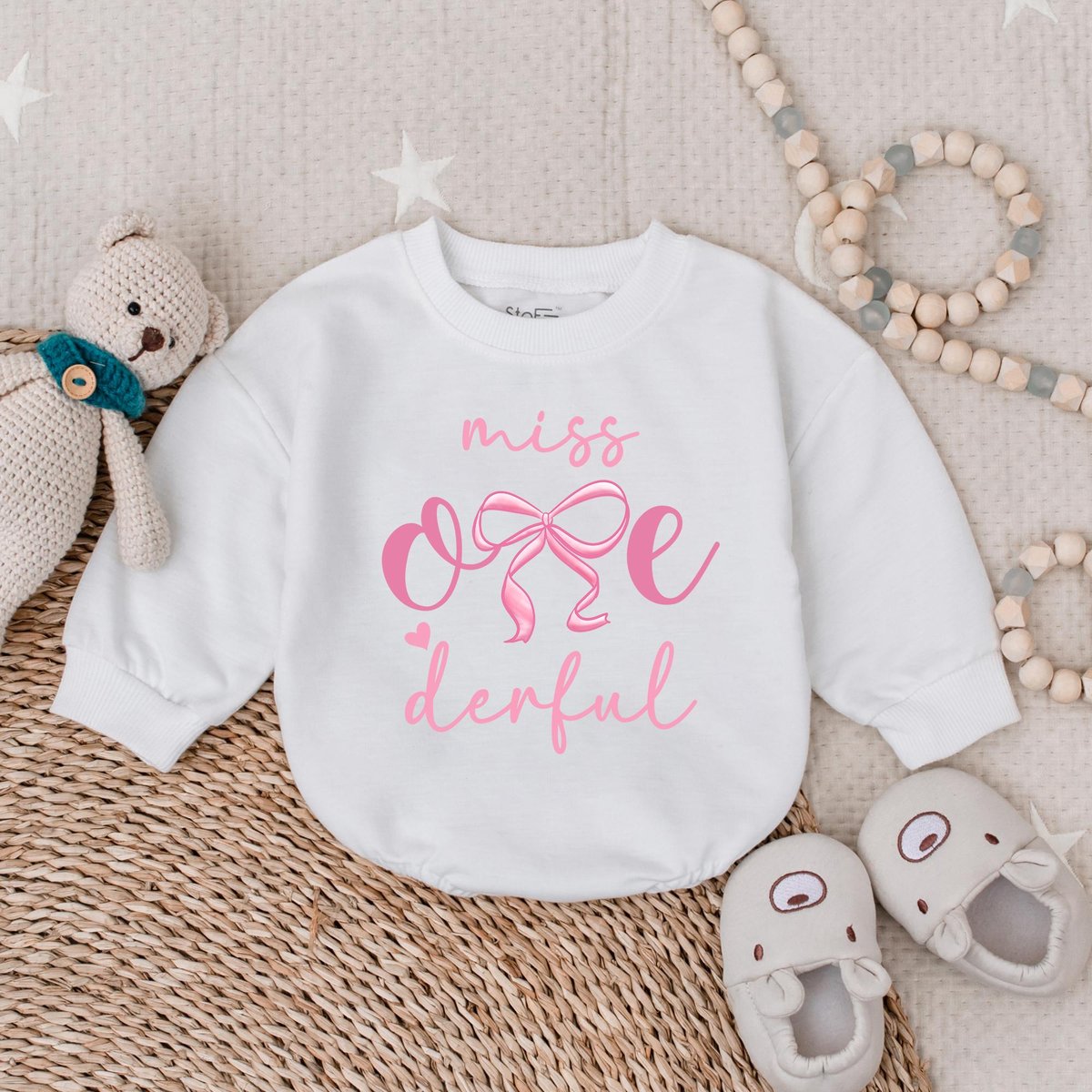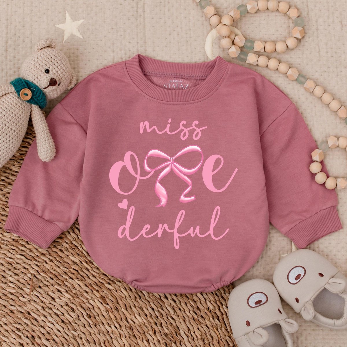 Miss One derful Pink With Bow Bubble Romper First Birthday Shirt 1st Birthday Party Pink One birthda