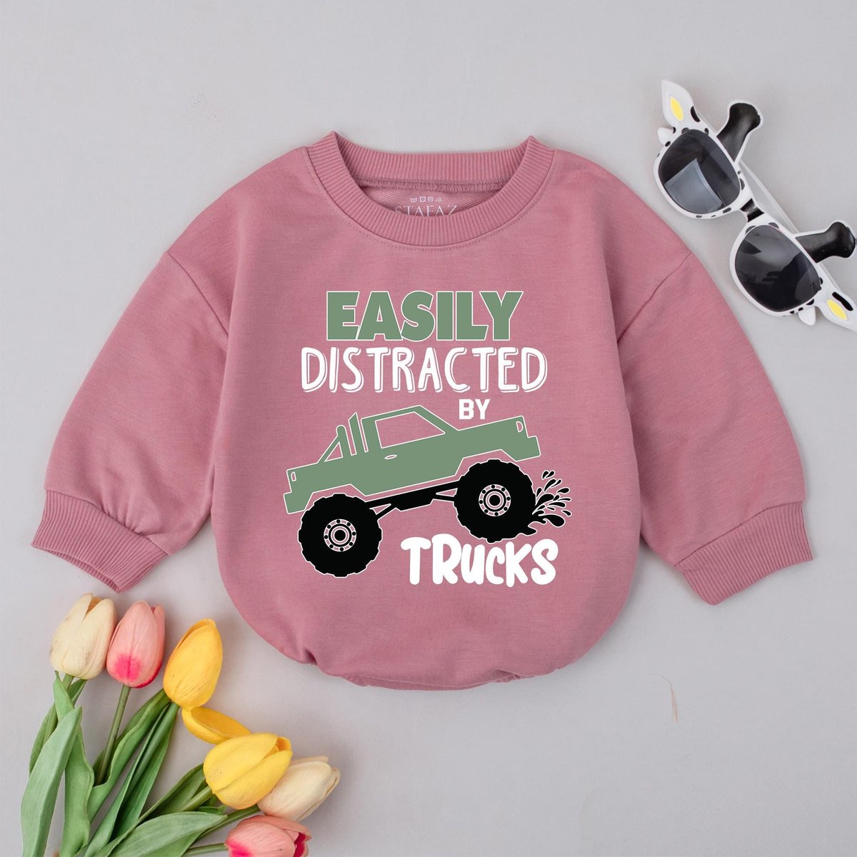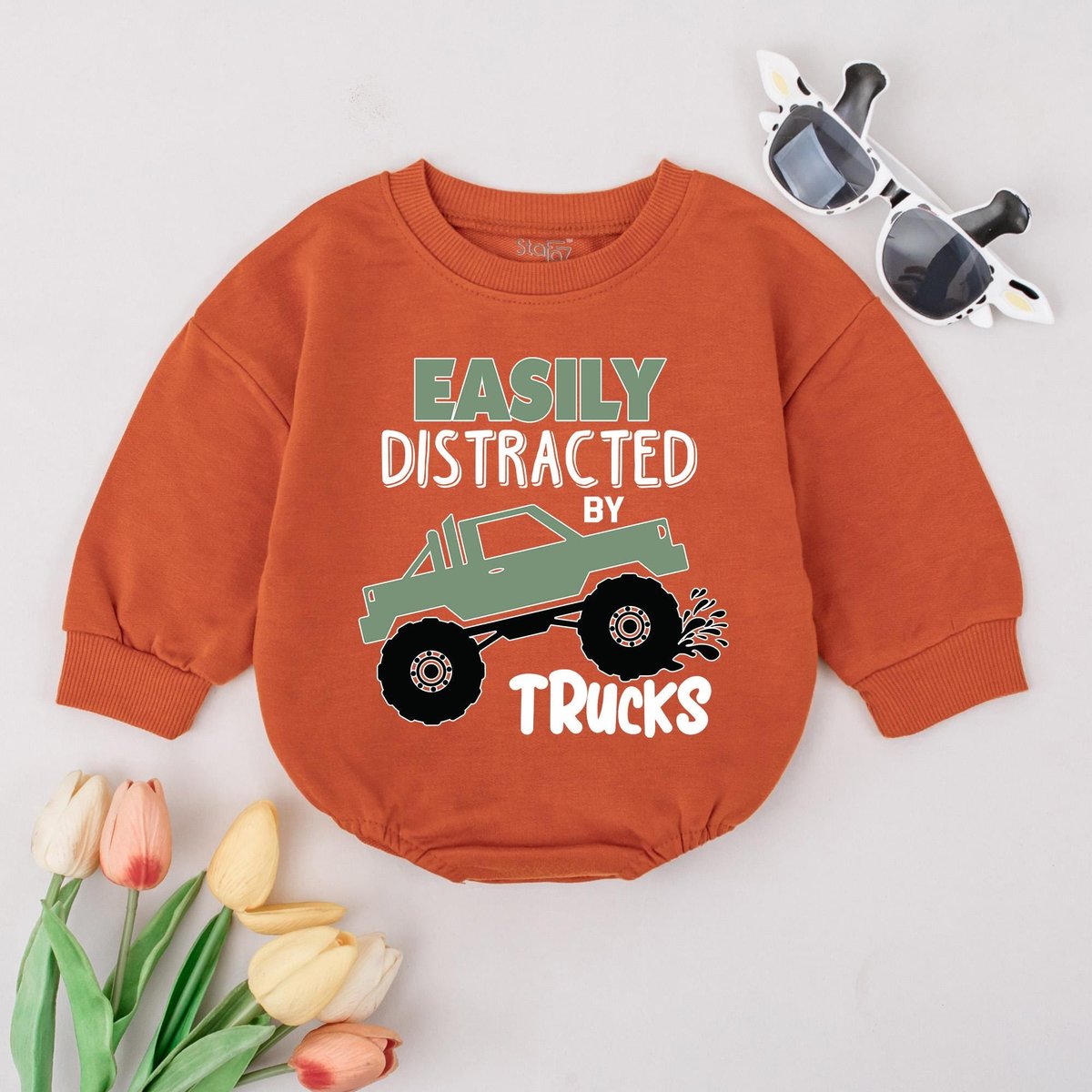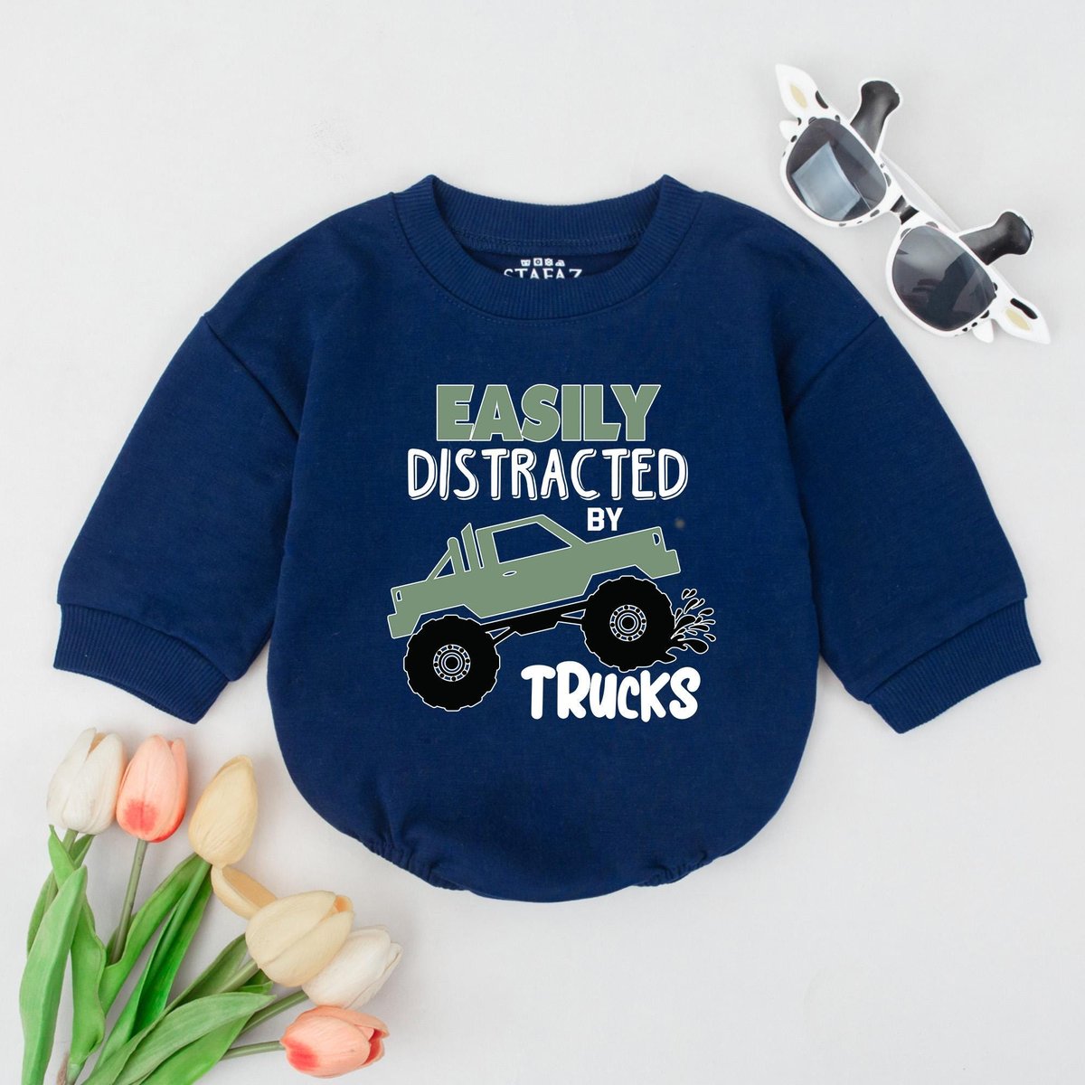 Monster truck baby shirt Toddler truck outfit Boys truck sweatshirt Easily distracted by trucks Baby 429