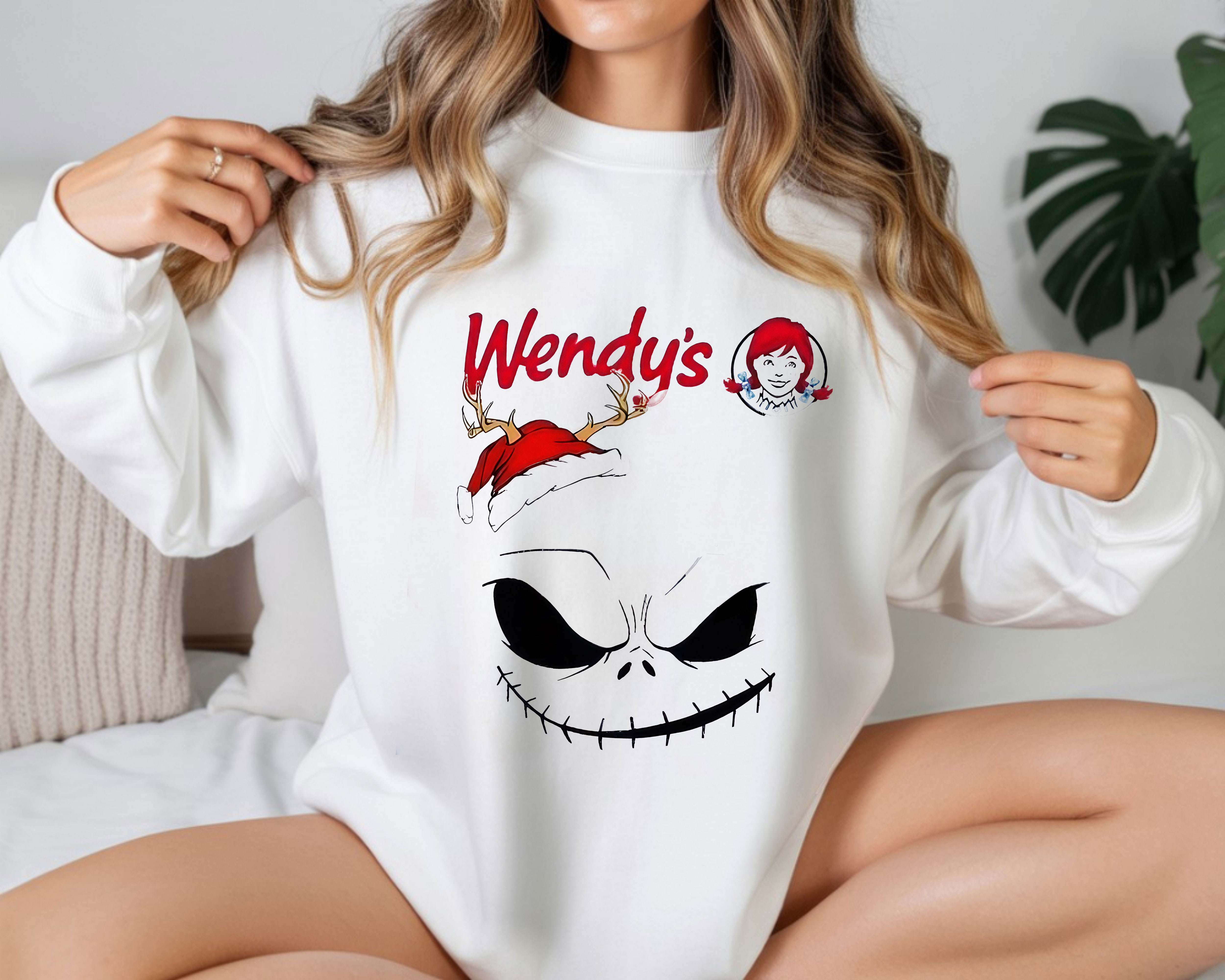 Nightmare Before Christmas Jack Skellington Wendy’s Halloween Graphic Sweatshirt – Spooky Art Tee, T-Shirt, Hoodie & Sweatshirt