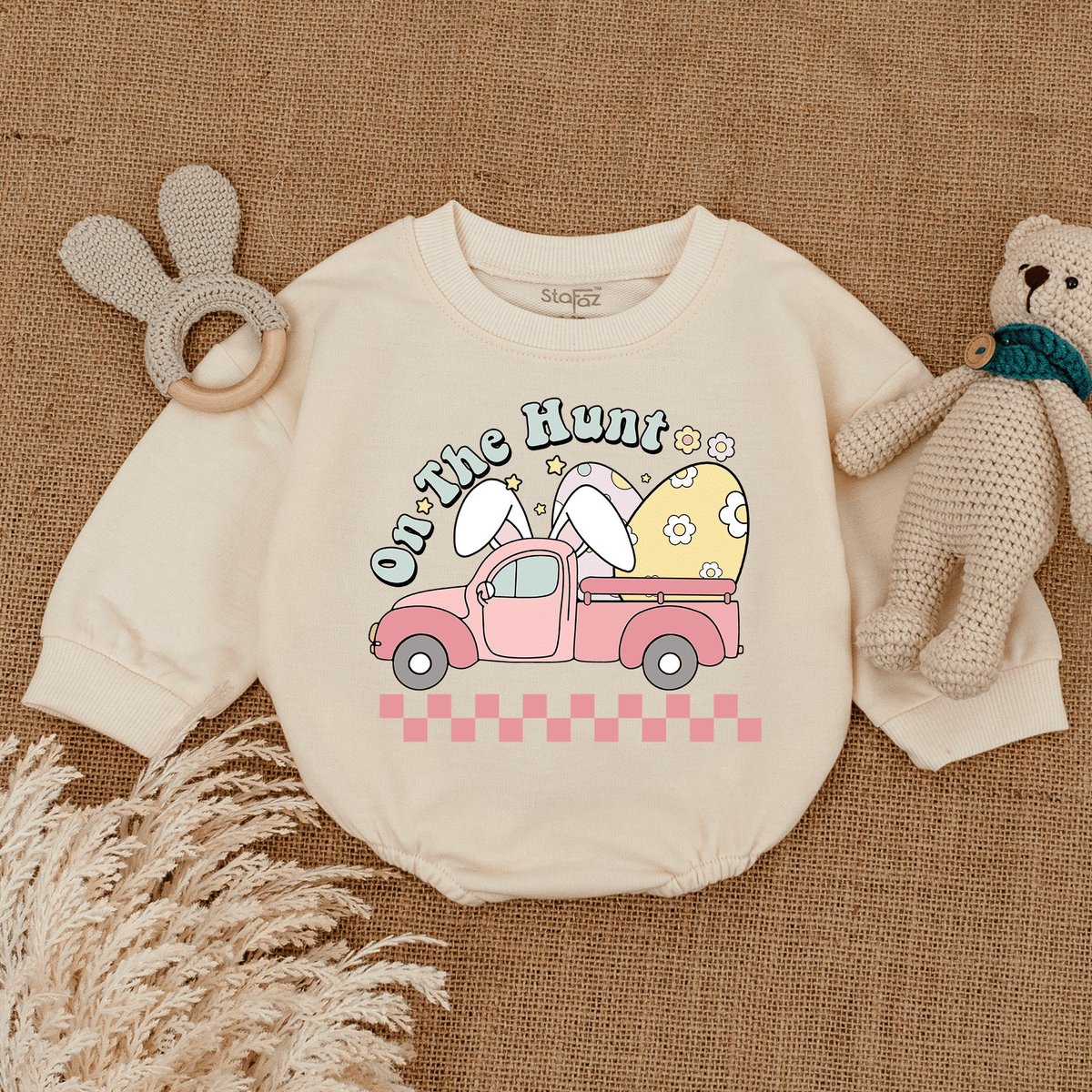 On The Hunt Romper Kid Easter Christian outfit Christian Kids Shirts Bodysuit Easter Shirts for Babi 165