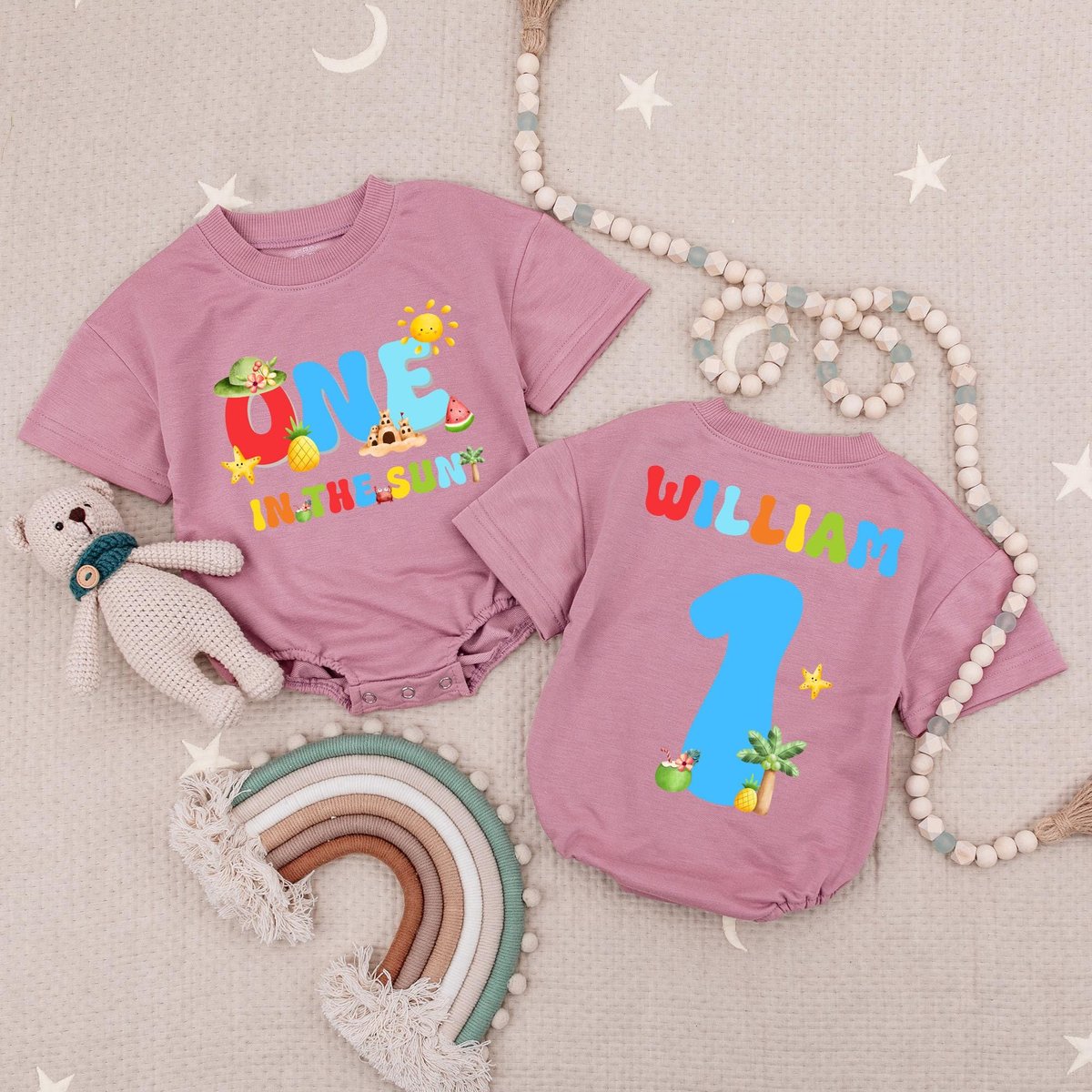 One In The Sun Bright Birthday Baby Romper Pool Beach 1st Boys Birthday Bubble Romper Summer First B