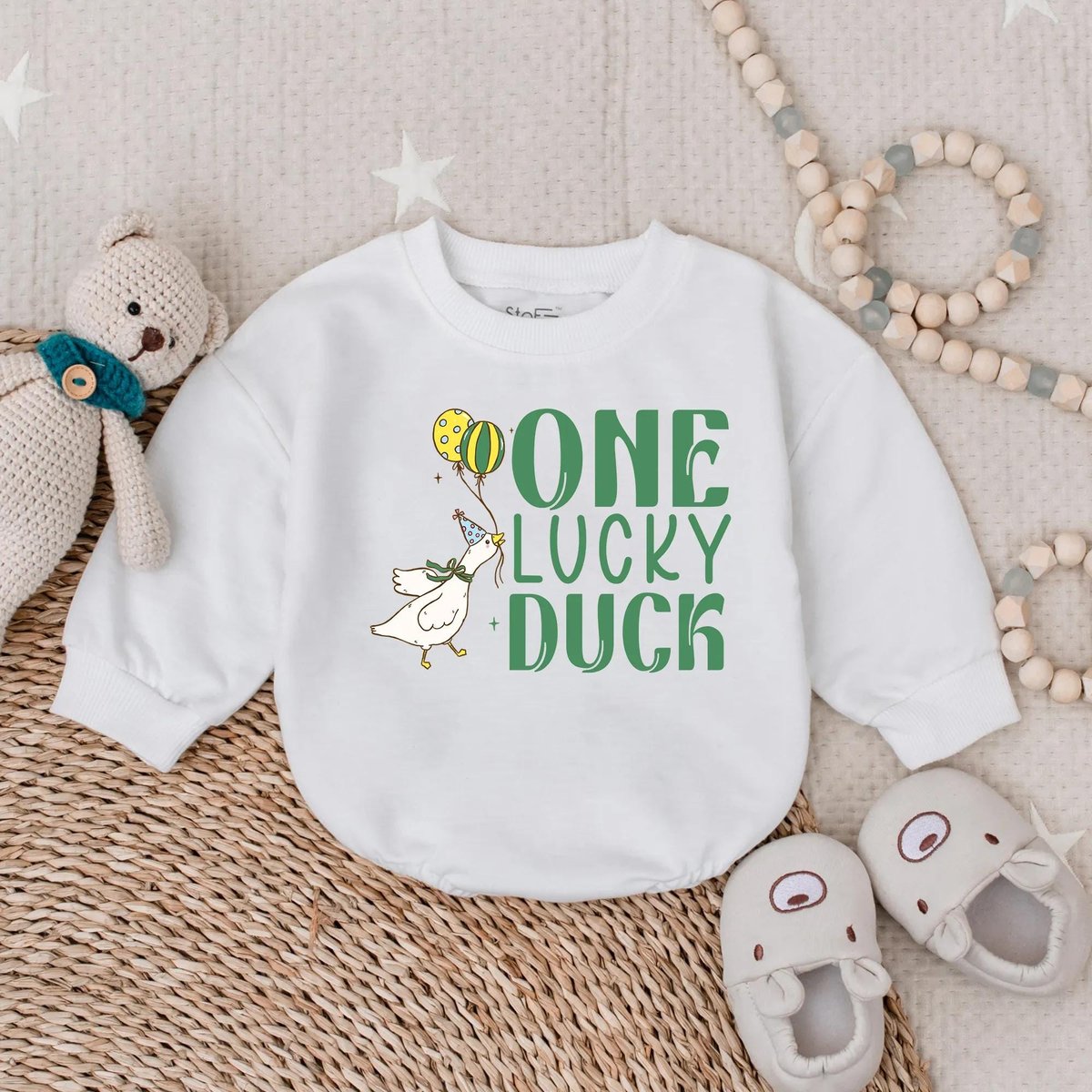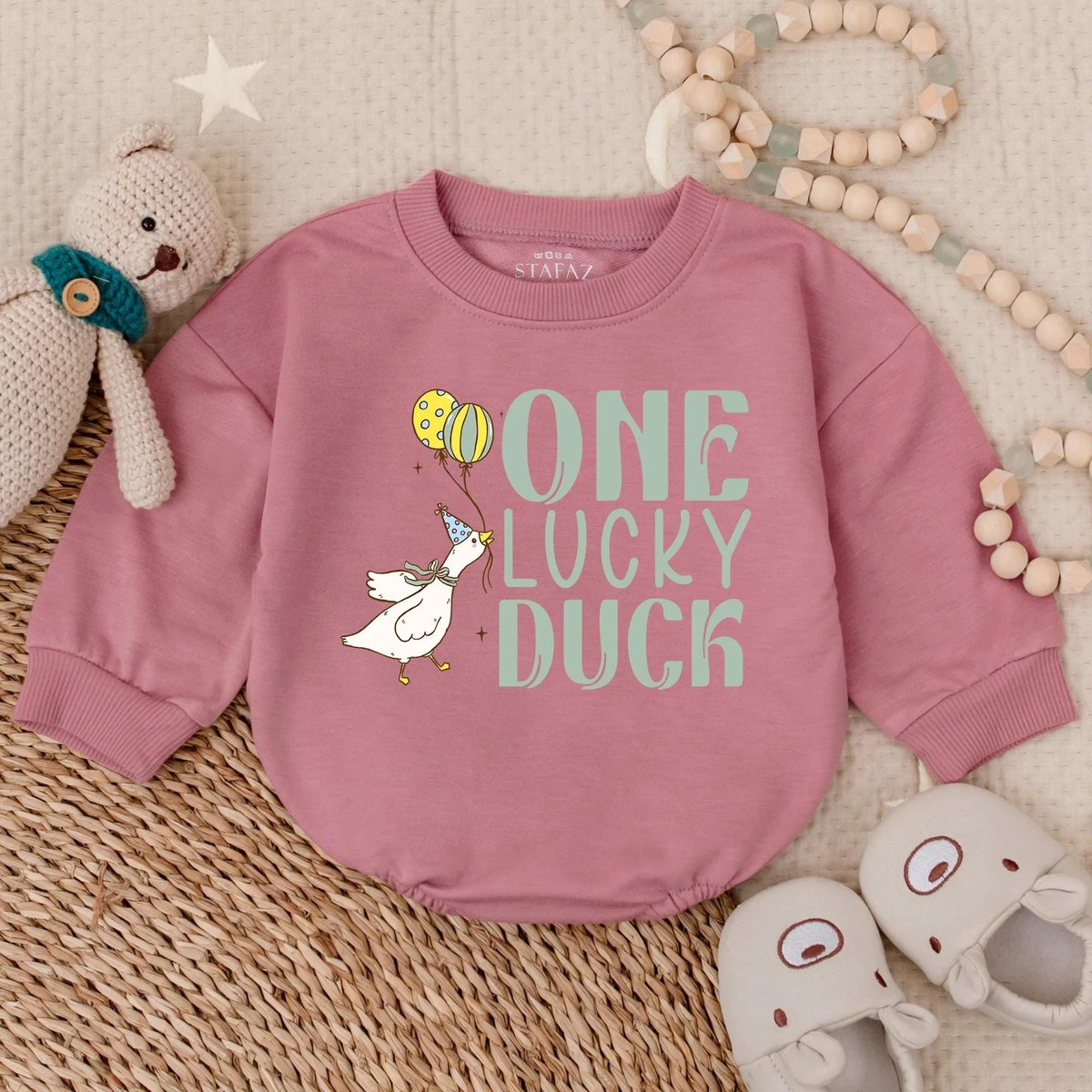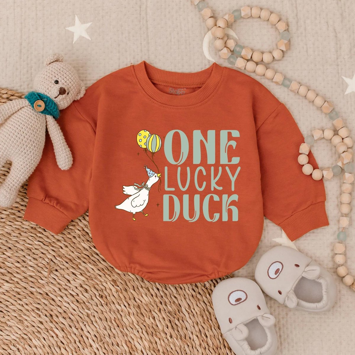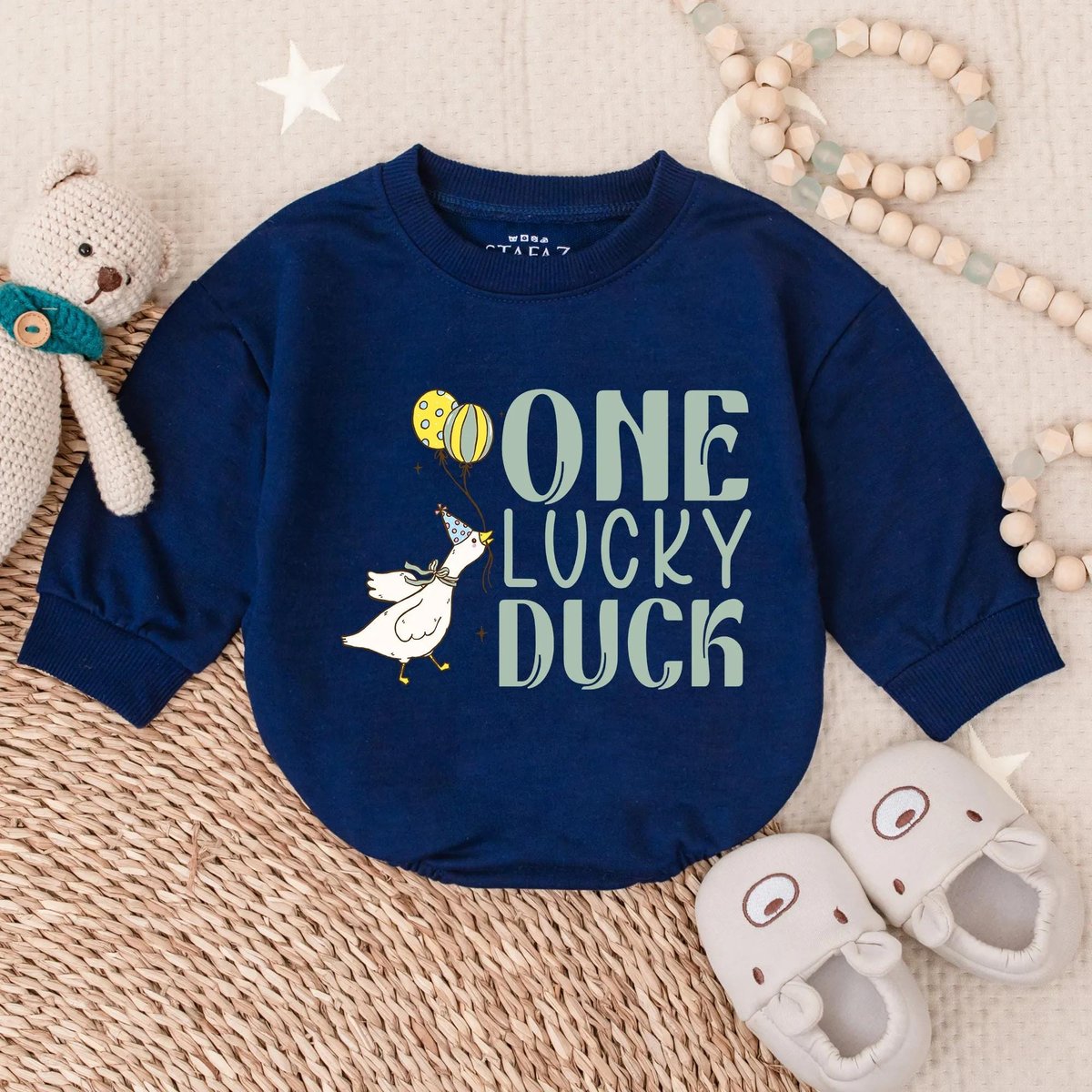 One Lucky Duck 1st Birthday Romper Boy’s Lucky Ducky Outfit First Birthday Boy Clothes Cute Baby Bo