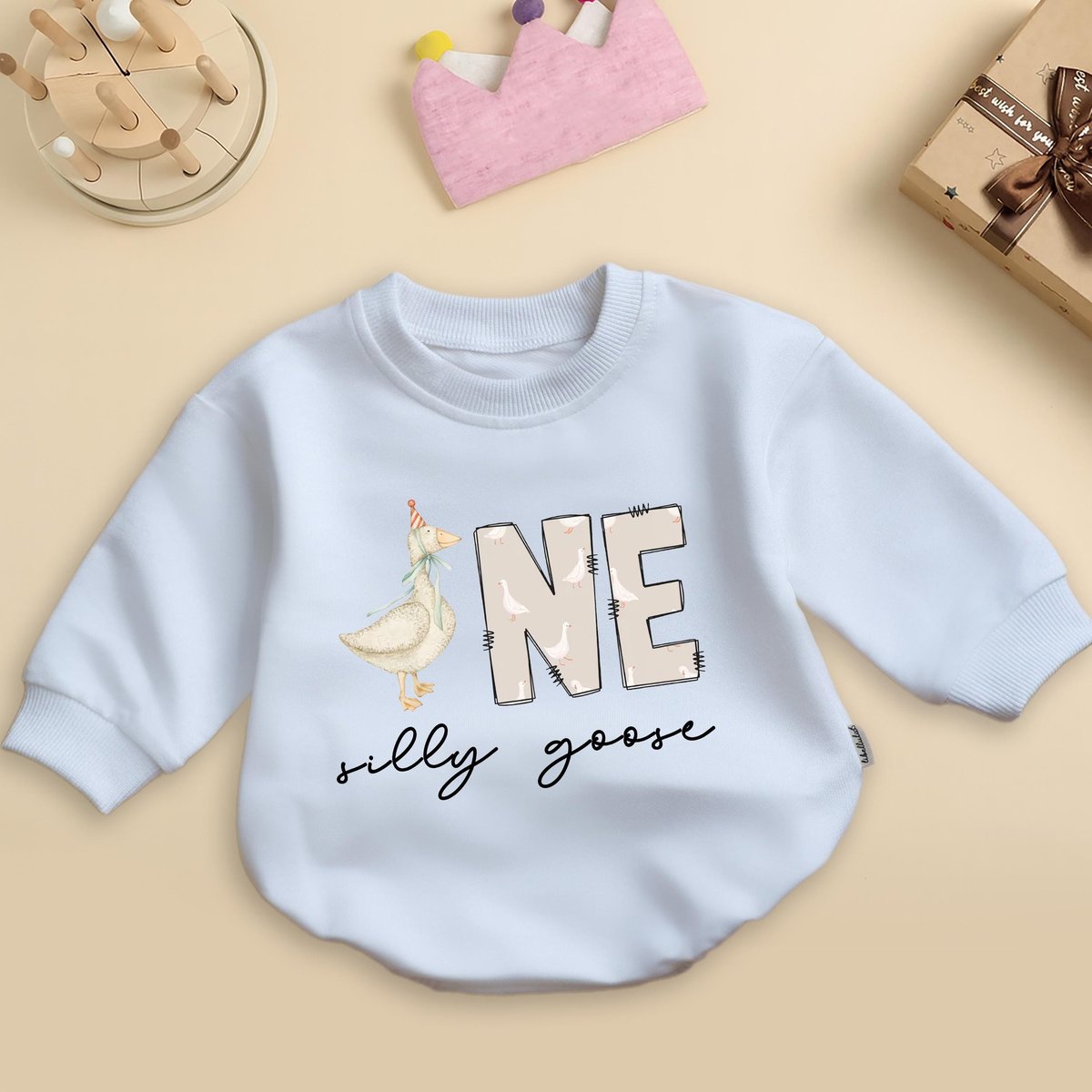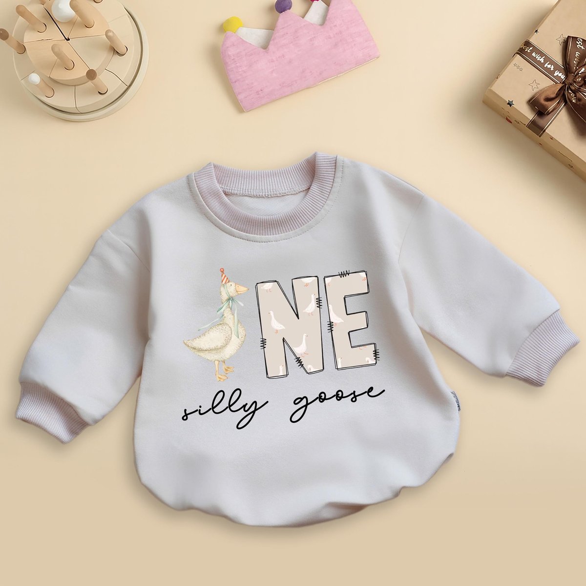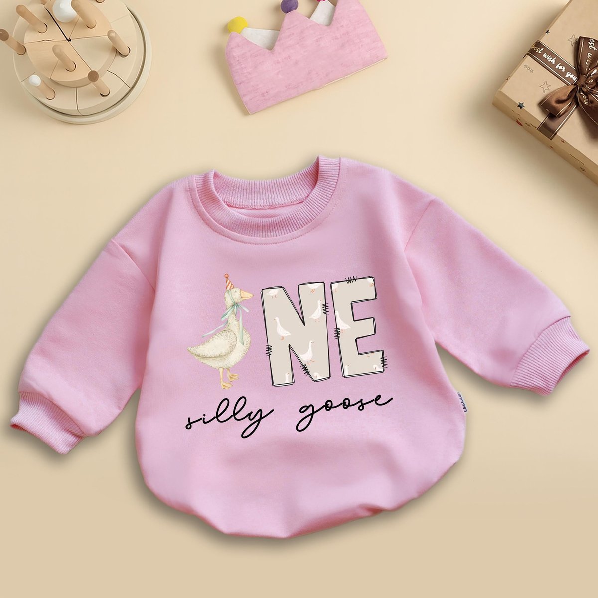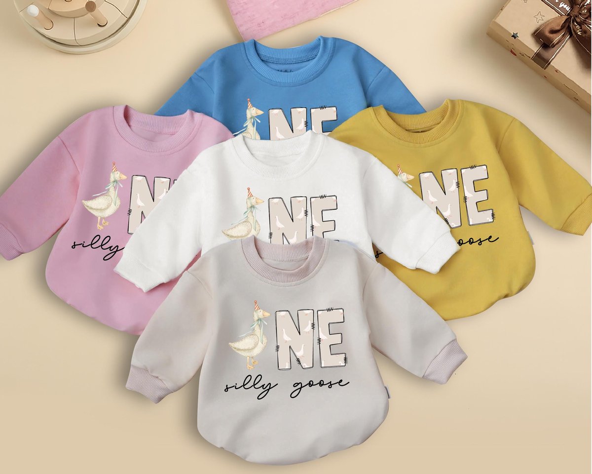 One Silly Goose Romper Sweatshirt First Birthday Baby Outfit Funny Toddler Girl Clothes 1st Birthday 436