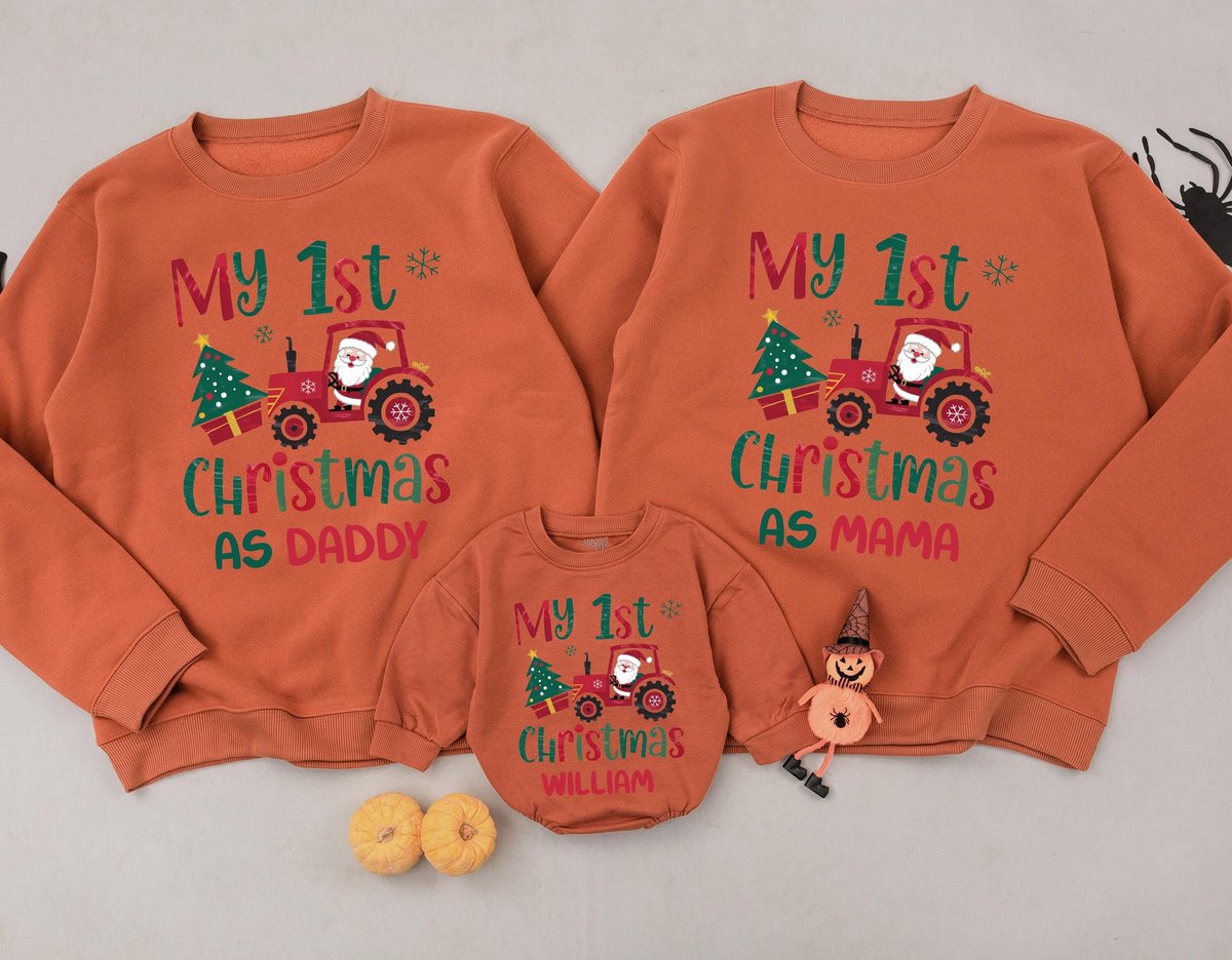 Our First Christmas Matching Family Sweatshirt First Christmas As Daddy As Mommy outfit Funny Christ 180