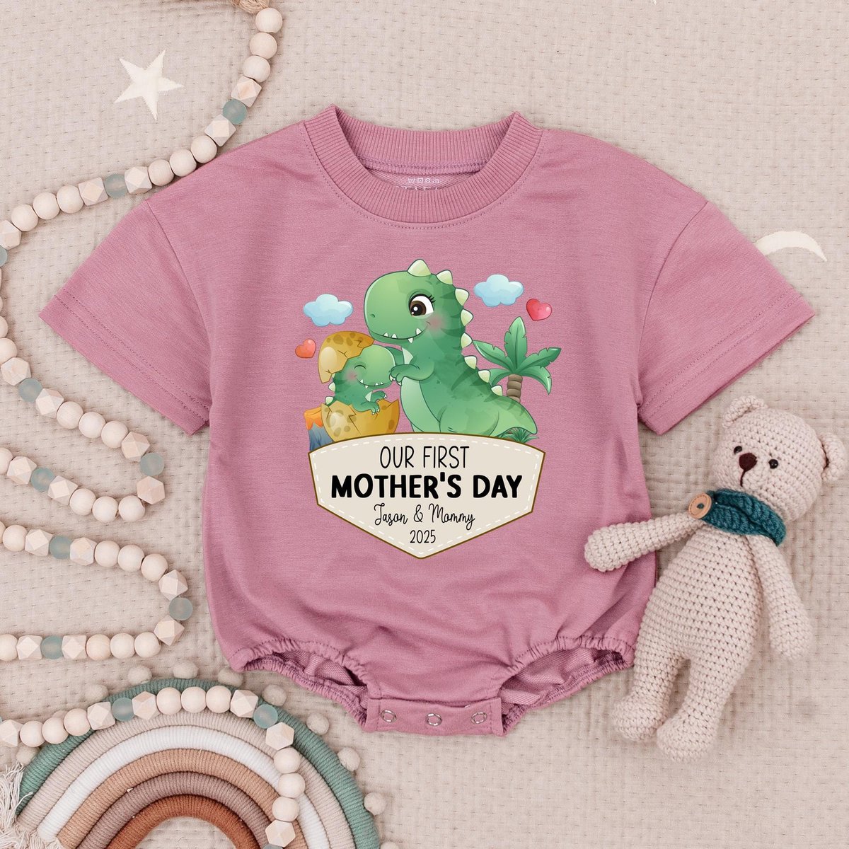 Our First Mother’s Day Dinosaur Baby Romper Cute Dinosaur Babysuirt 2025 Mothers Day Natural Bodysu
