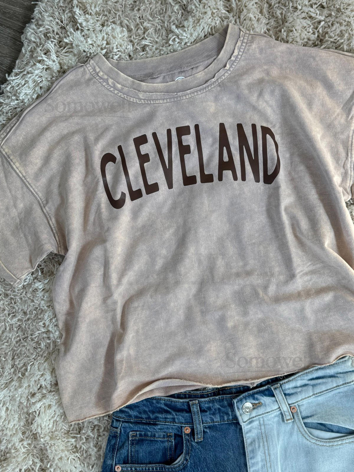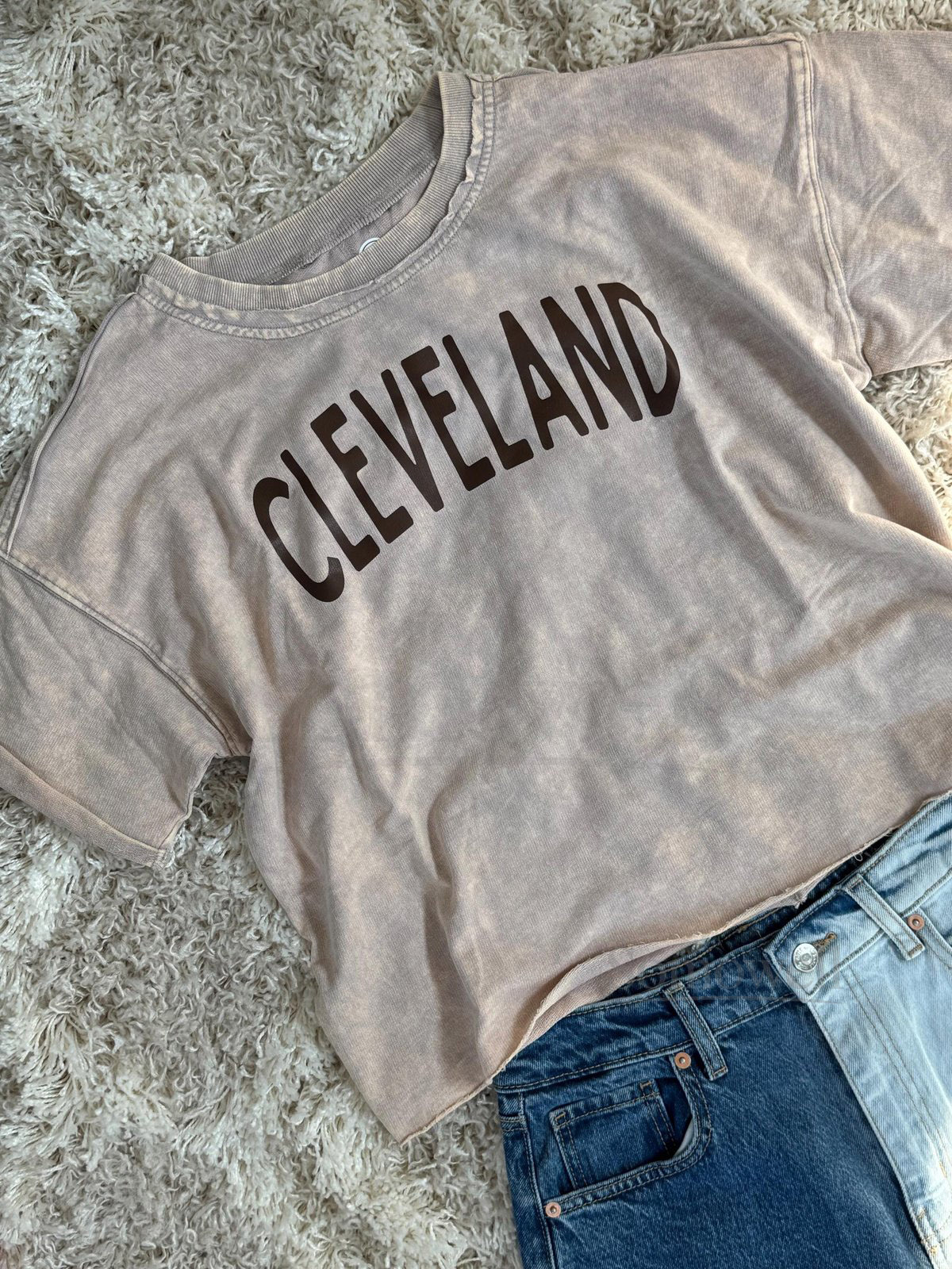 Oversized Cleveland crop tee Vintage wash Browns tee Cleveland Browns crop top Browns football sweatshirt Cavs shirt Guardians tee_63