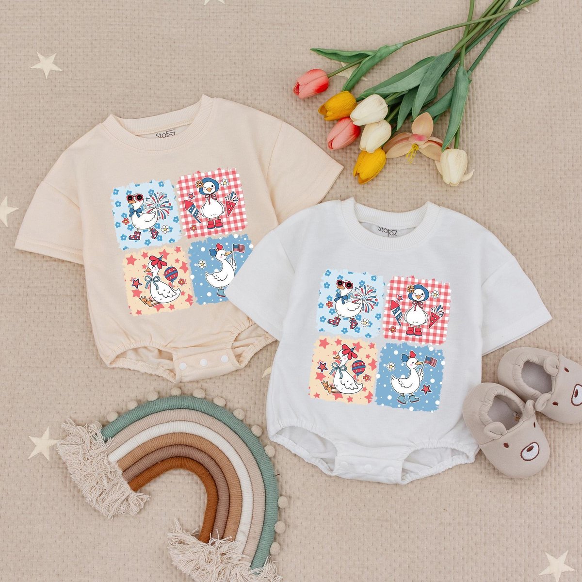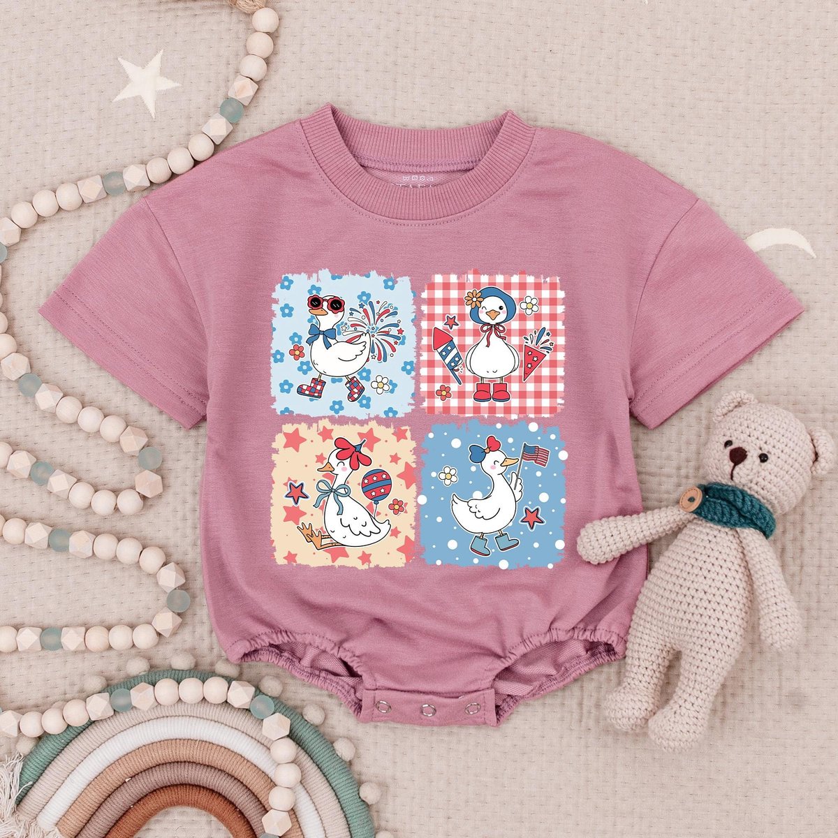 Patriotic Goose Baby Girl Outfits 4th of July Goose Bubble Romper Patriotic Baby Clothes Baby Girl C