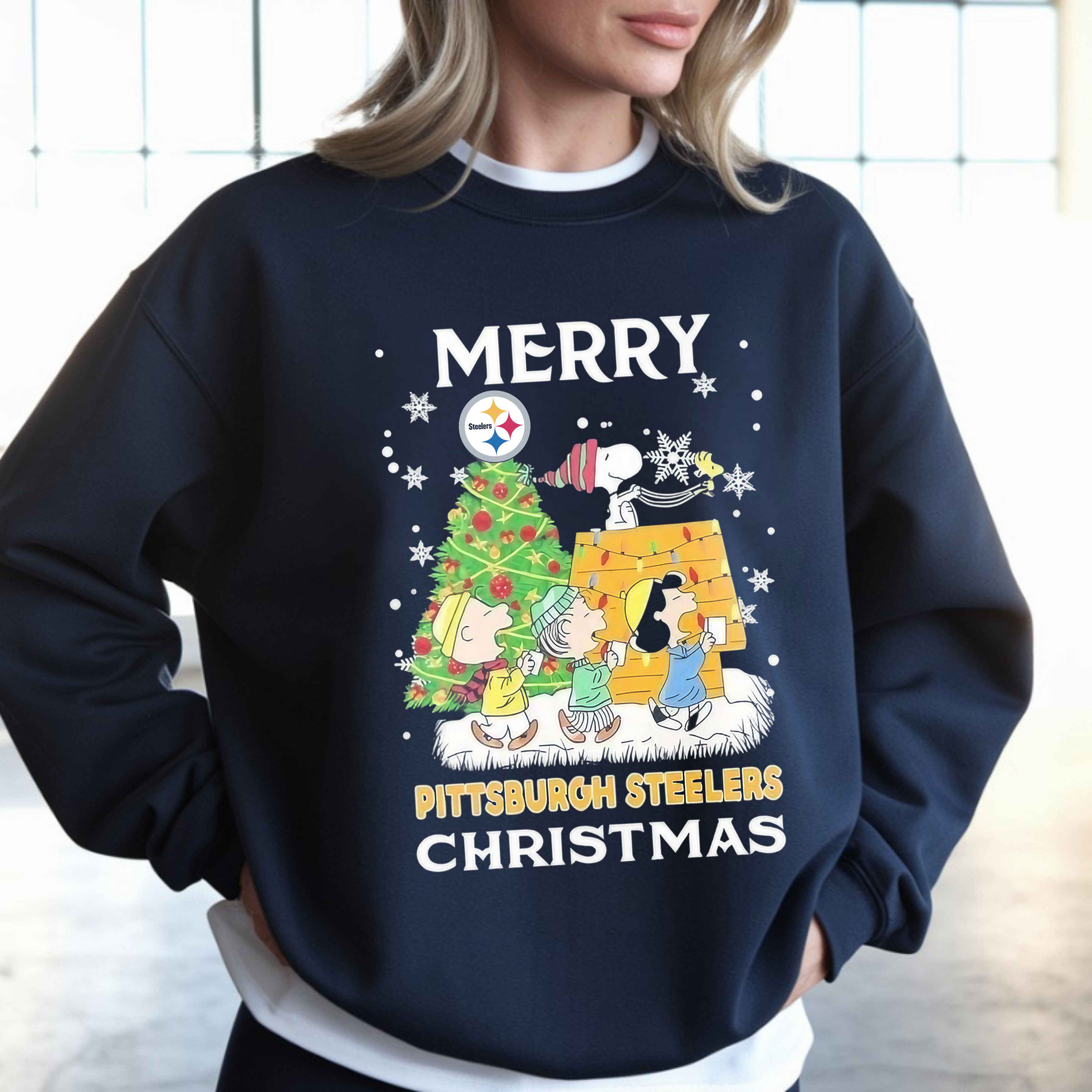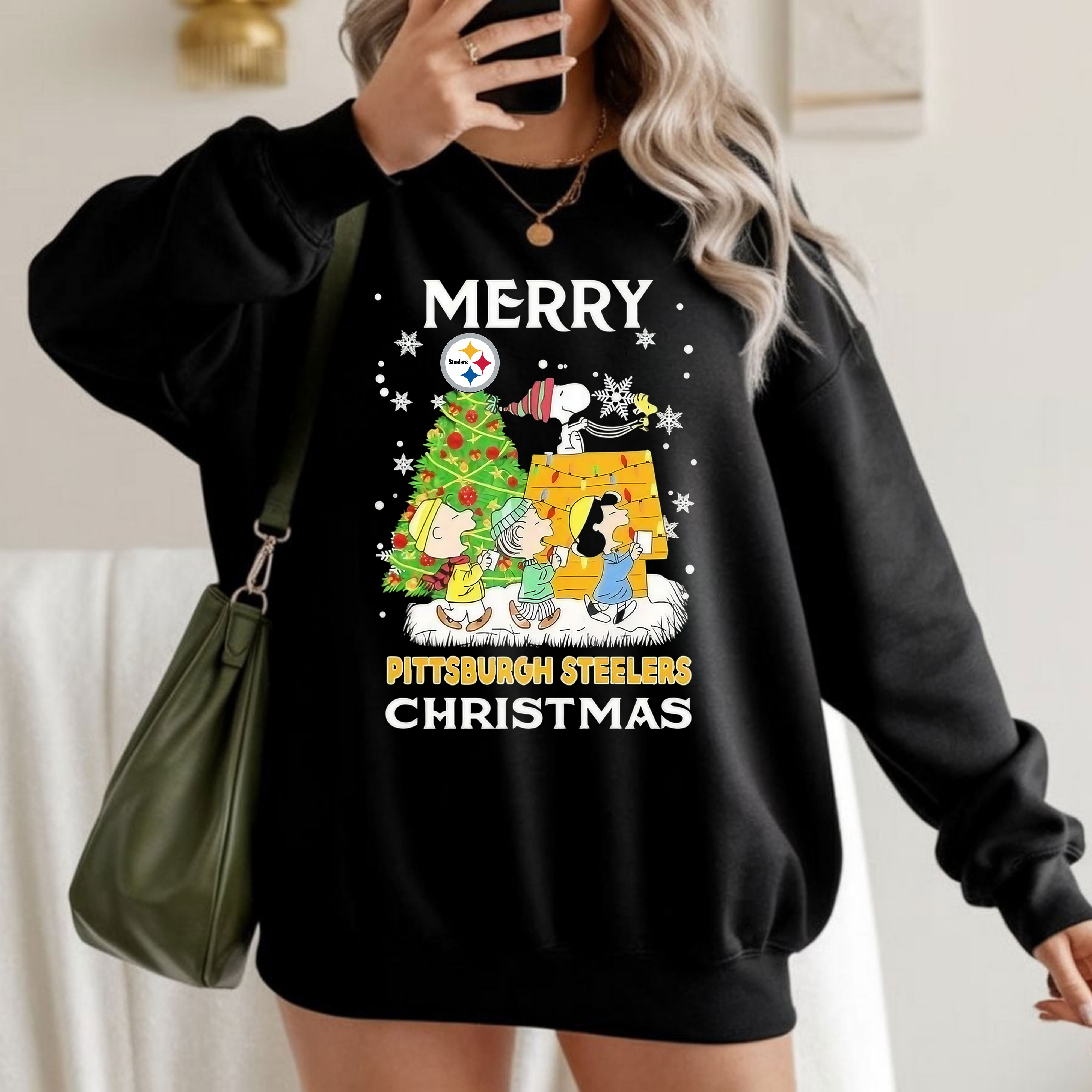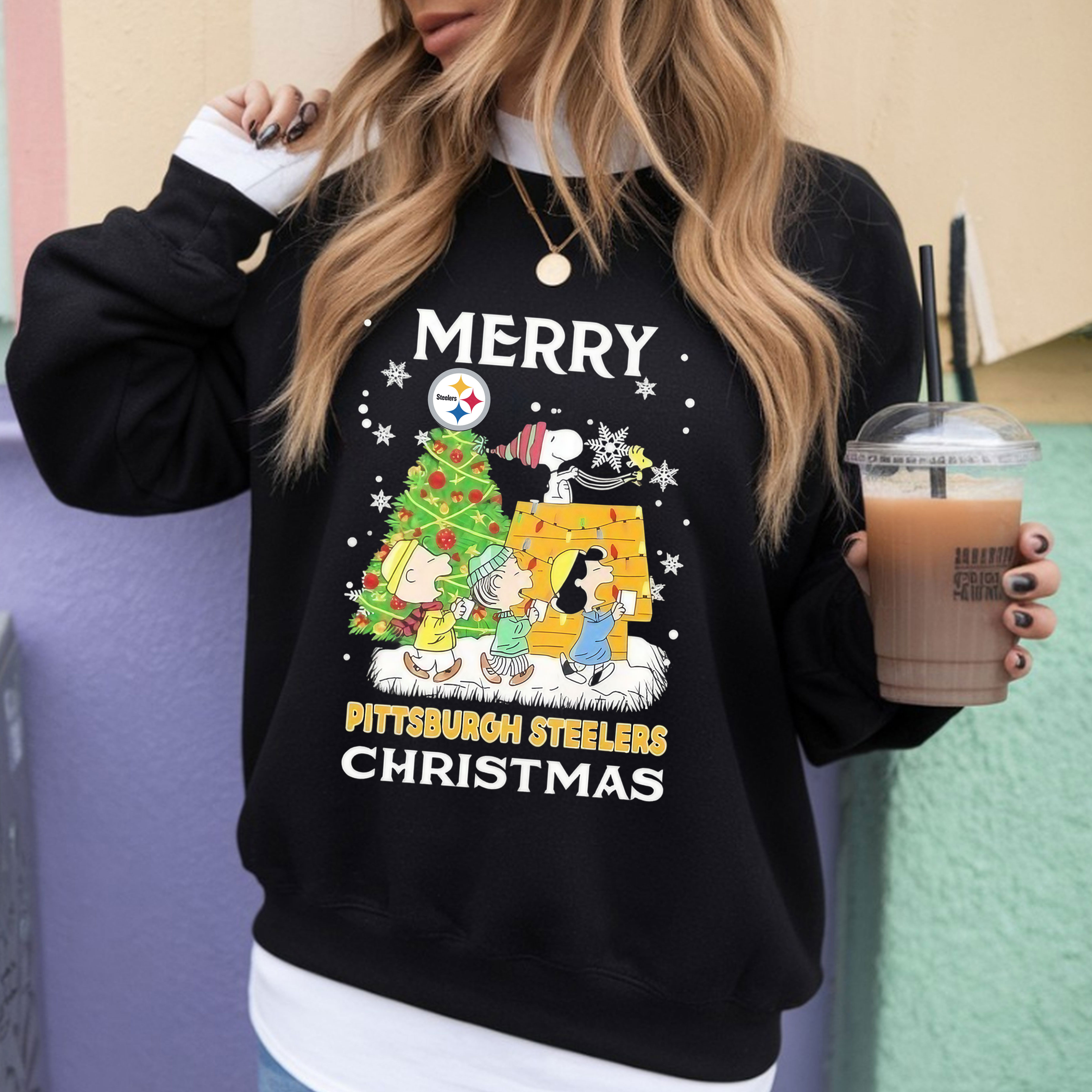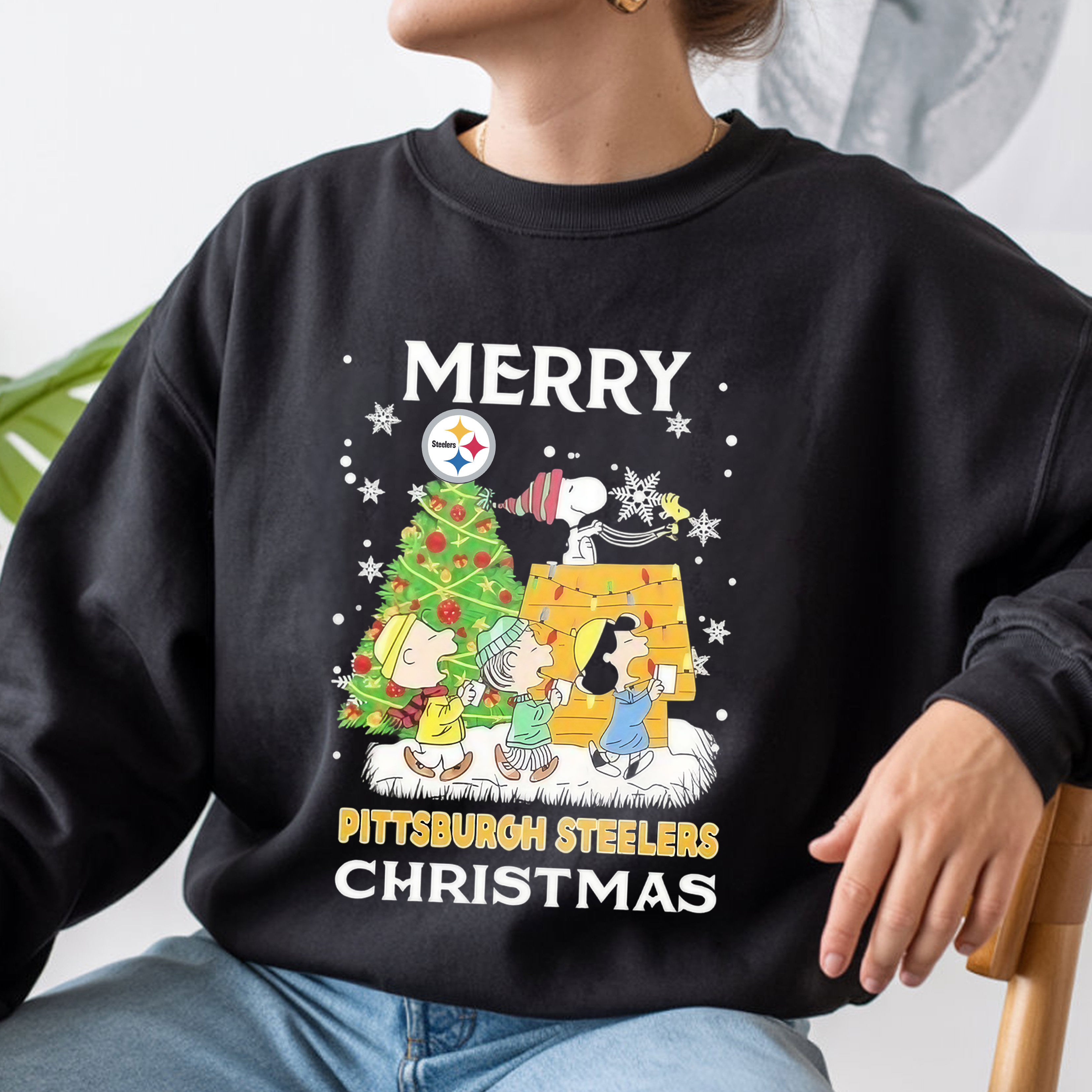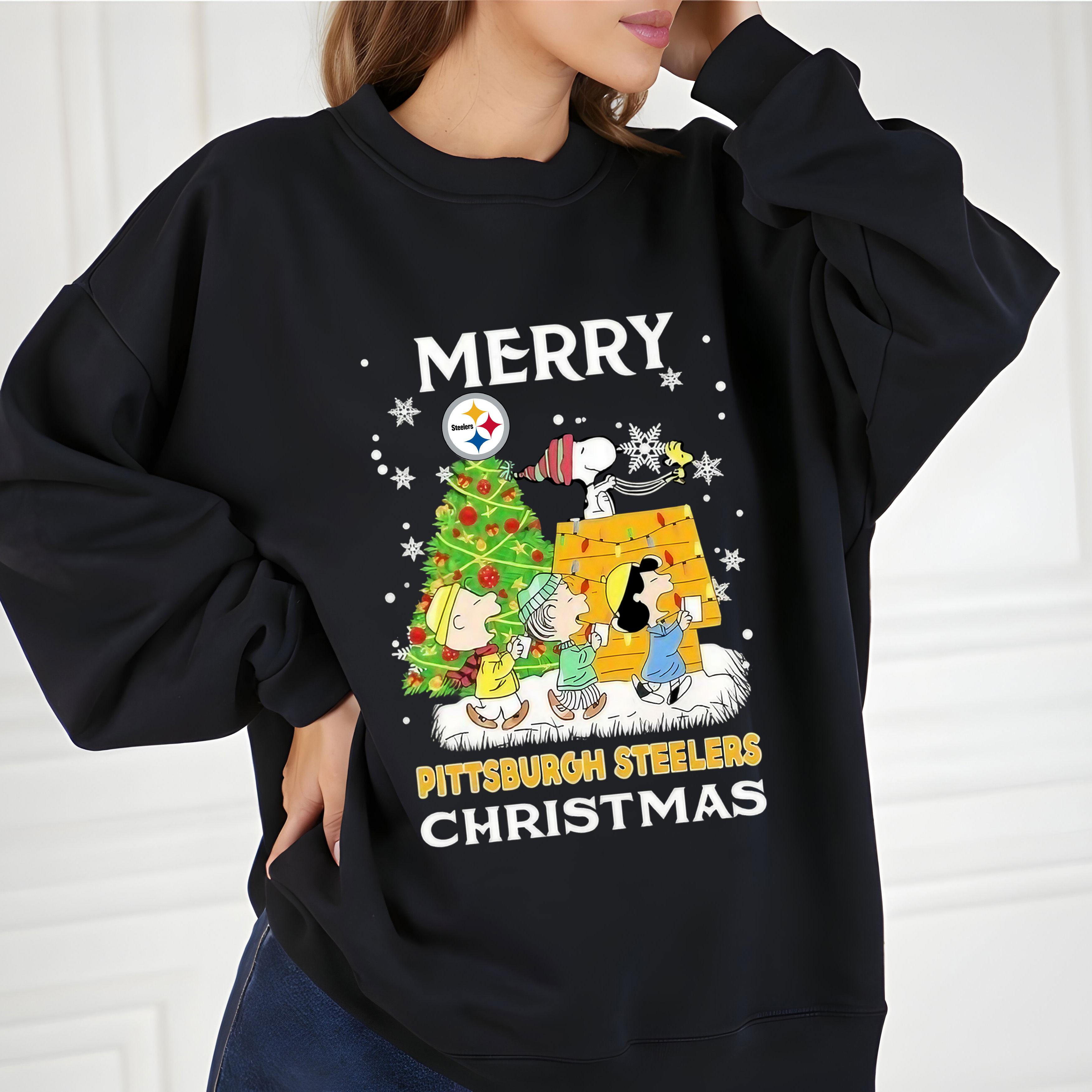 Peanuts Snoopy and Friends Pittsburgh Steelers Merry Christmas NFL Football Holiday Vintage Bootleg Team Festive Apparel – T-Shirt, Hoodie & Sweatshirt