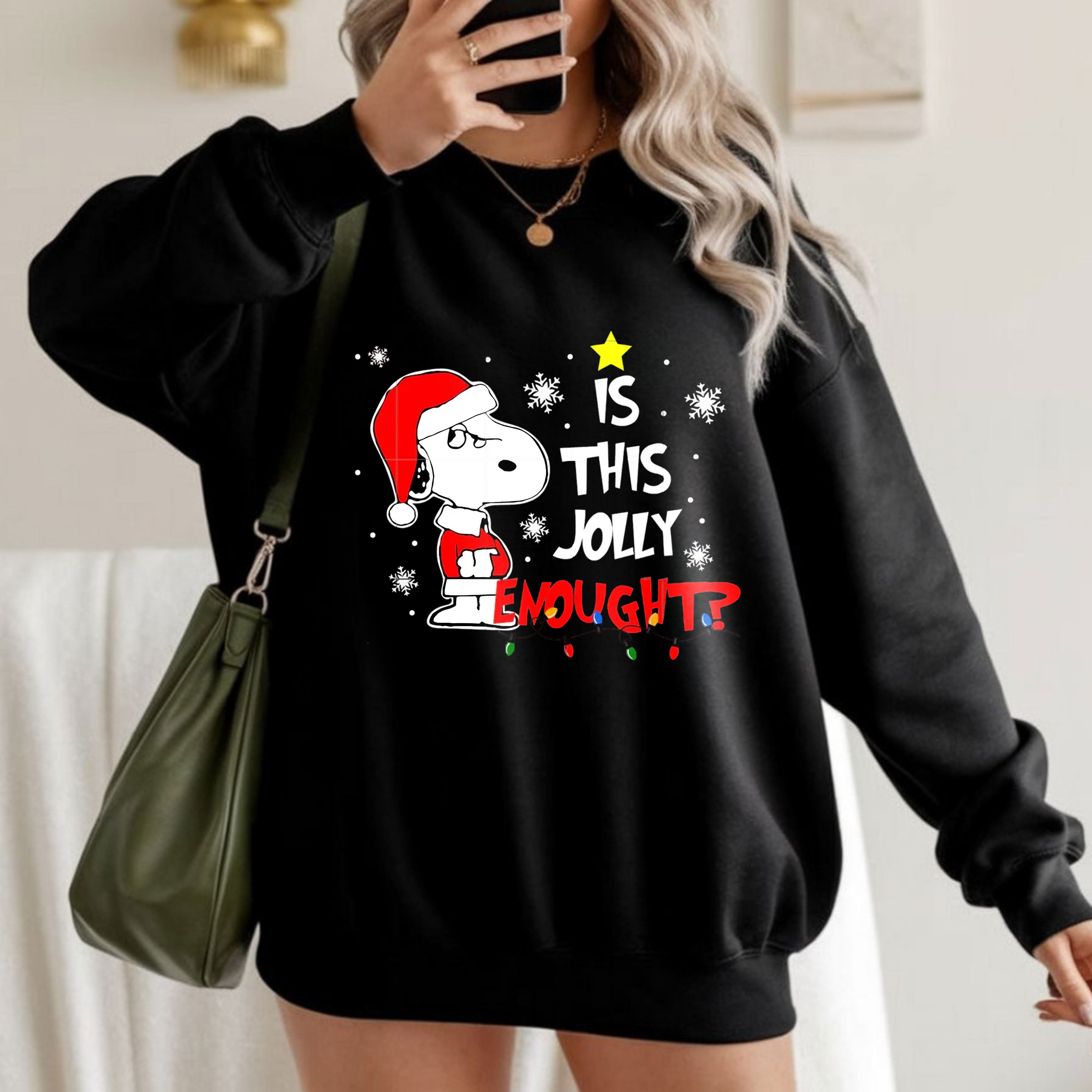 Peanuts Snoopy Is This Jolly Enough Merry Christmas Funny Holiday Quote Vintage Bootleg Festive Apparel – T-Shirt, Hoodie & Sweatshirt