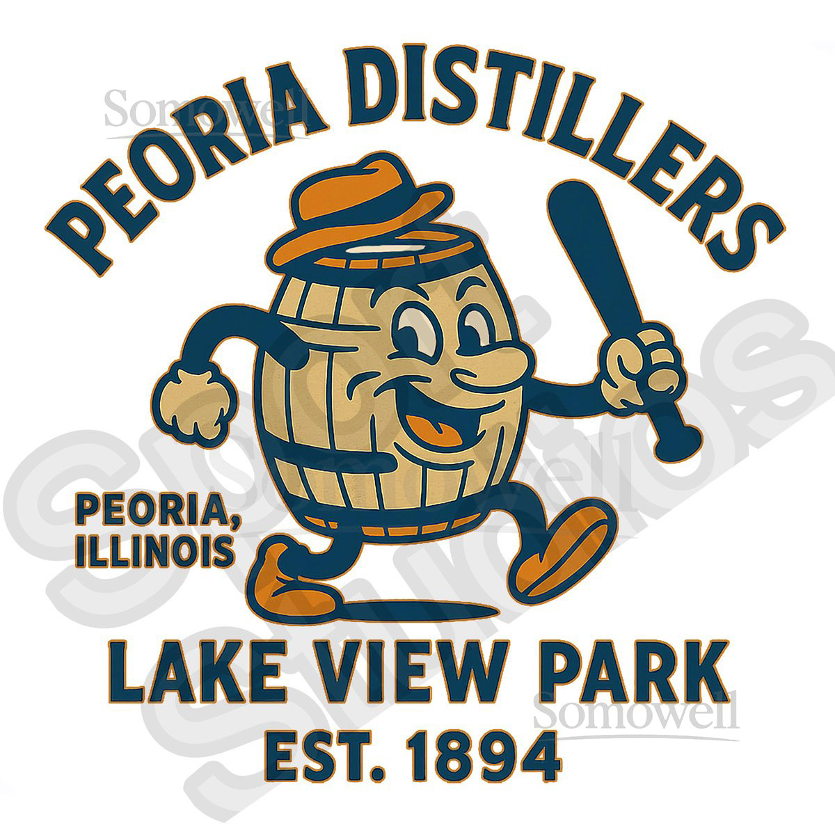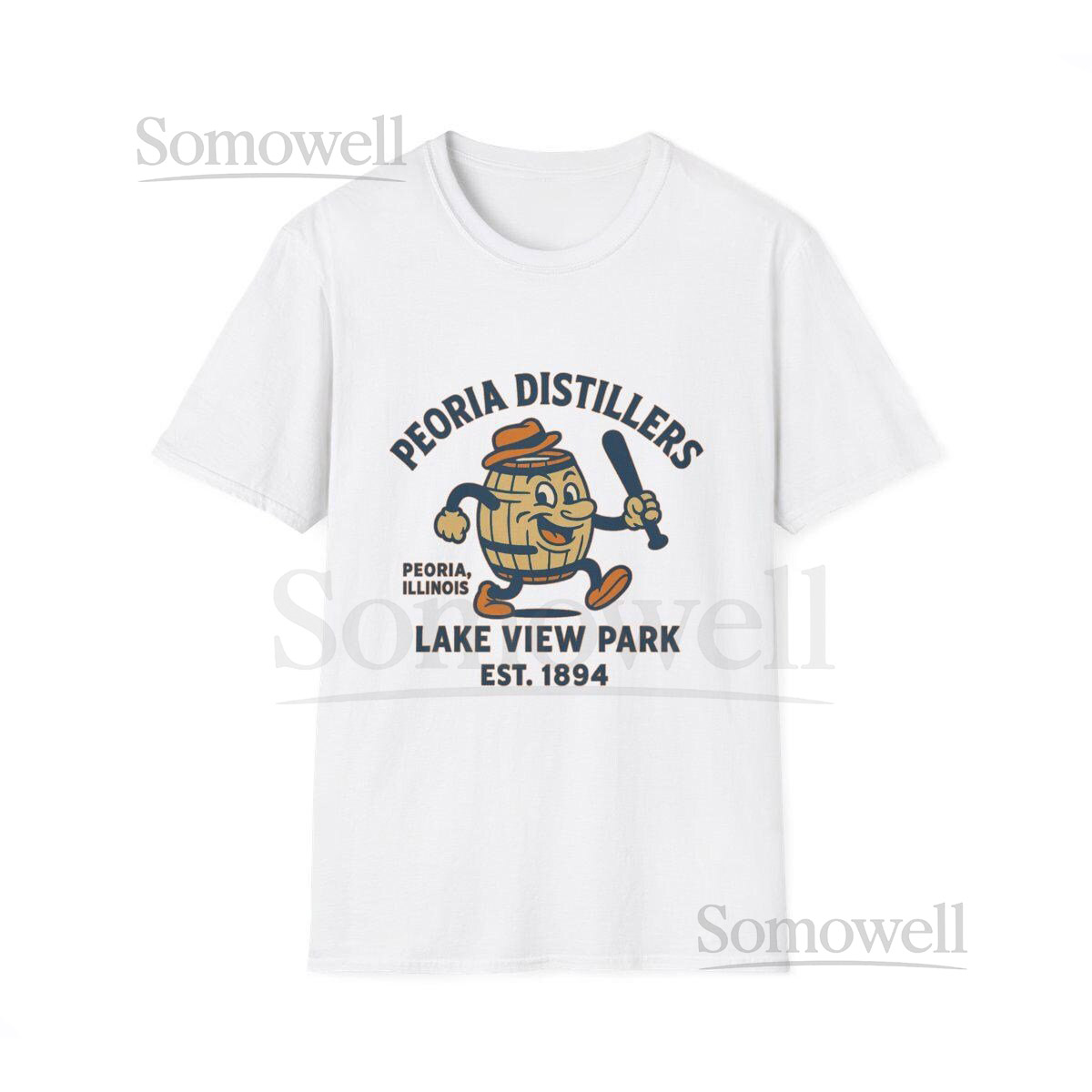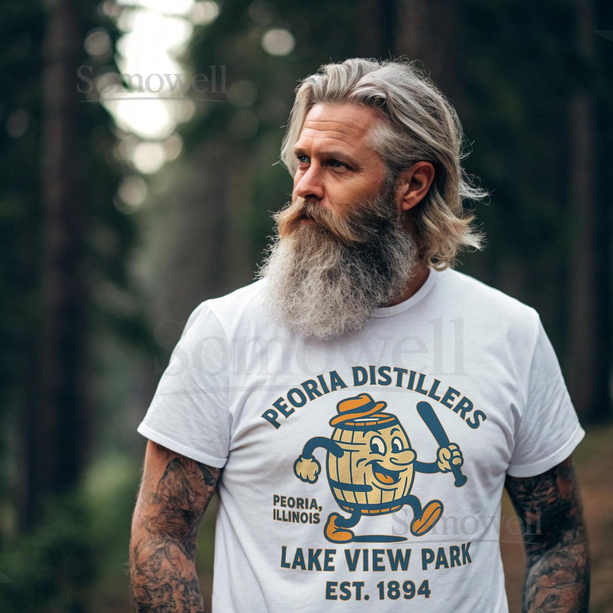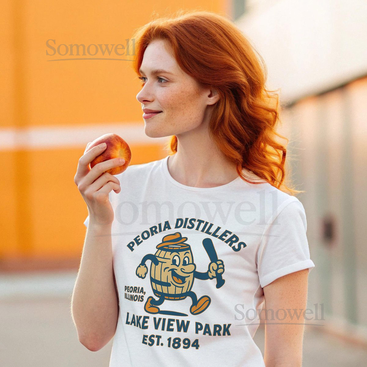 Peoria Distillers Barrel Mascot Vintage T Shirt Historic Minor League Team Alcohol Shirt Peoria Illinois Retro Baseball Tshirt Brewers Tee_501