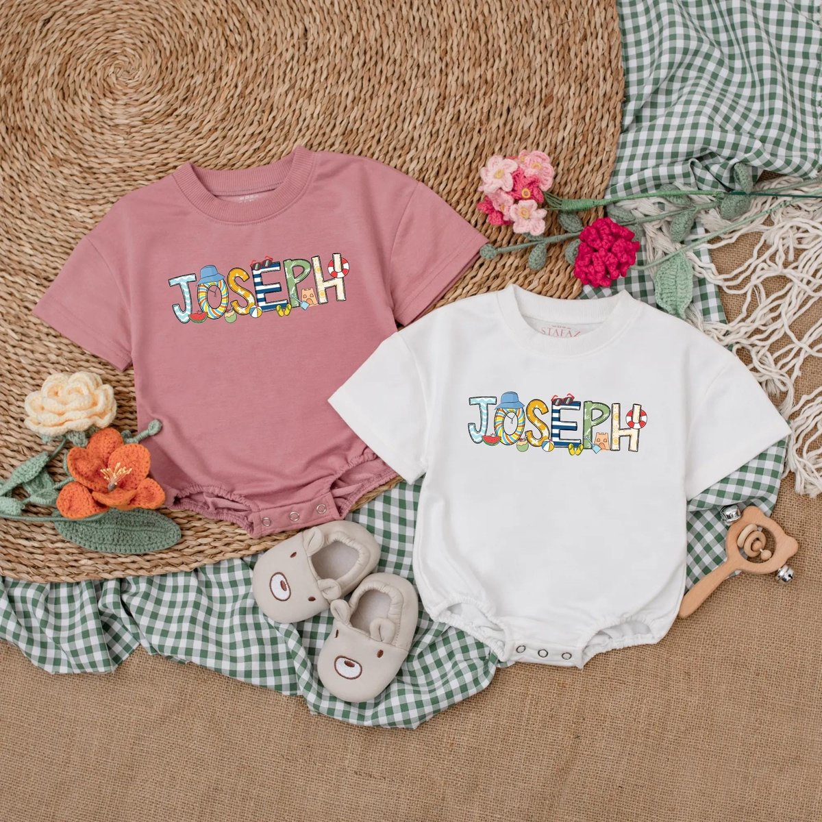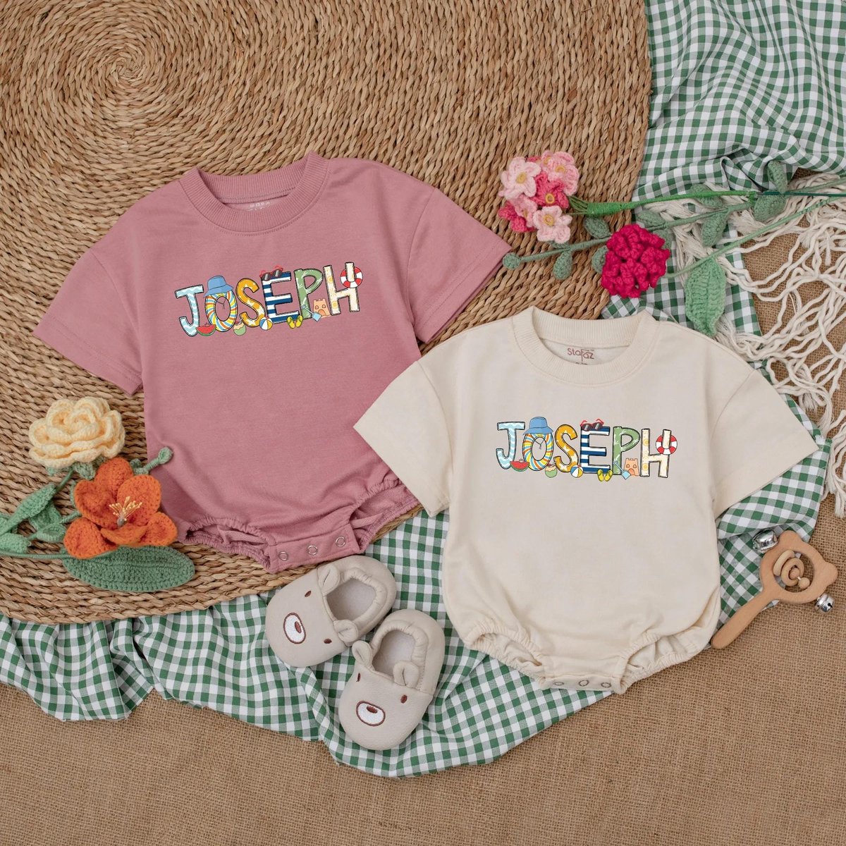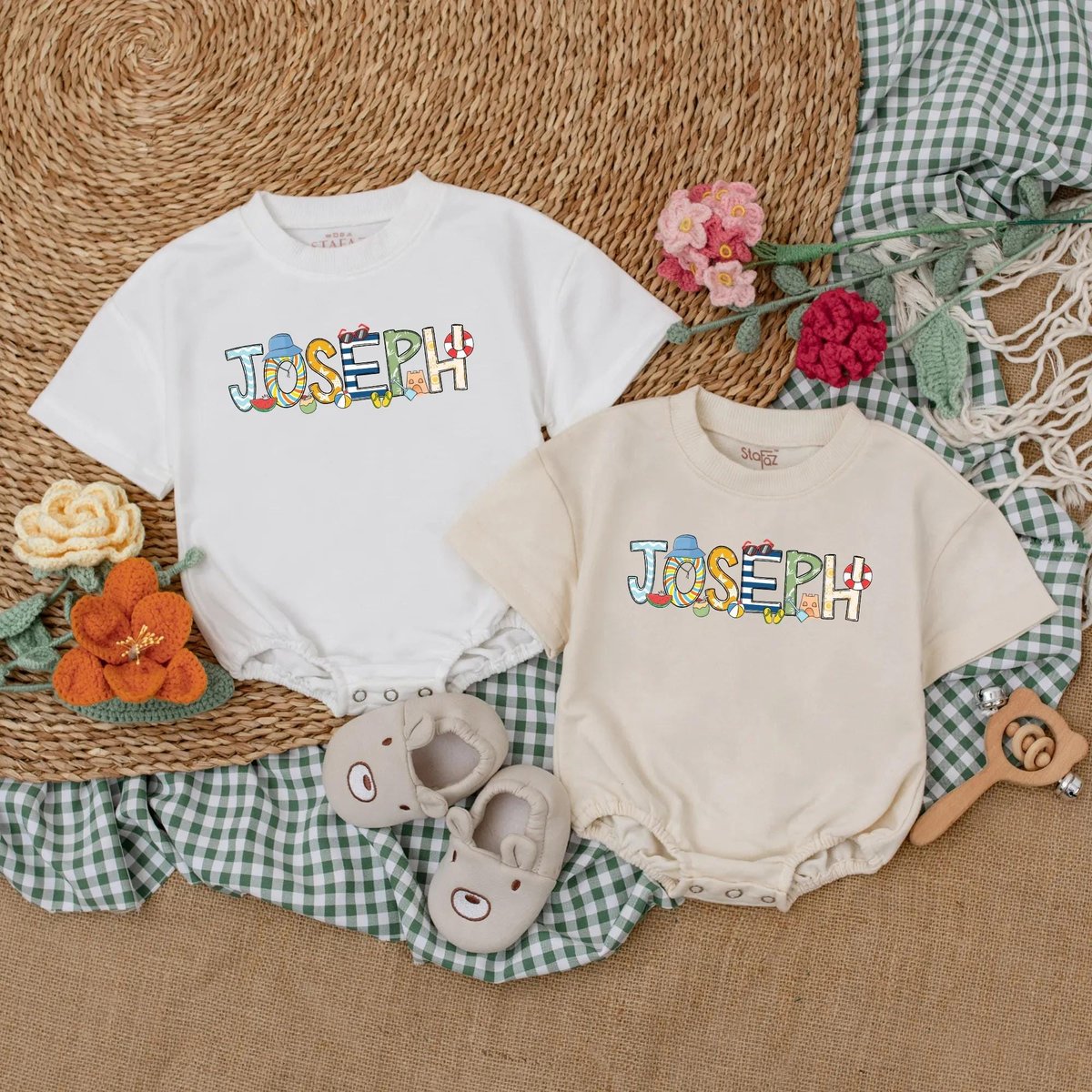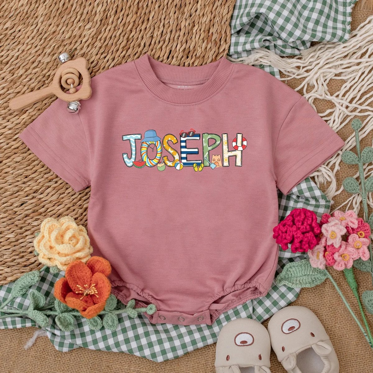 Personalized Beach Baby Romper Custom Name Summer Bodysuit Ocean Theme Baby Outfit Summer Baby Cloth 187