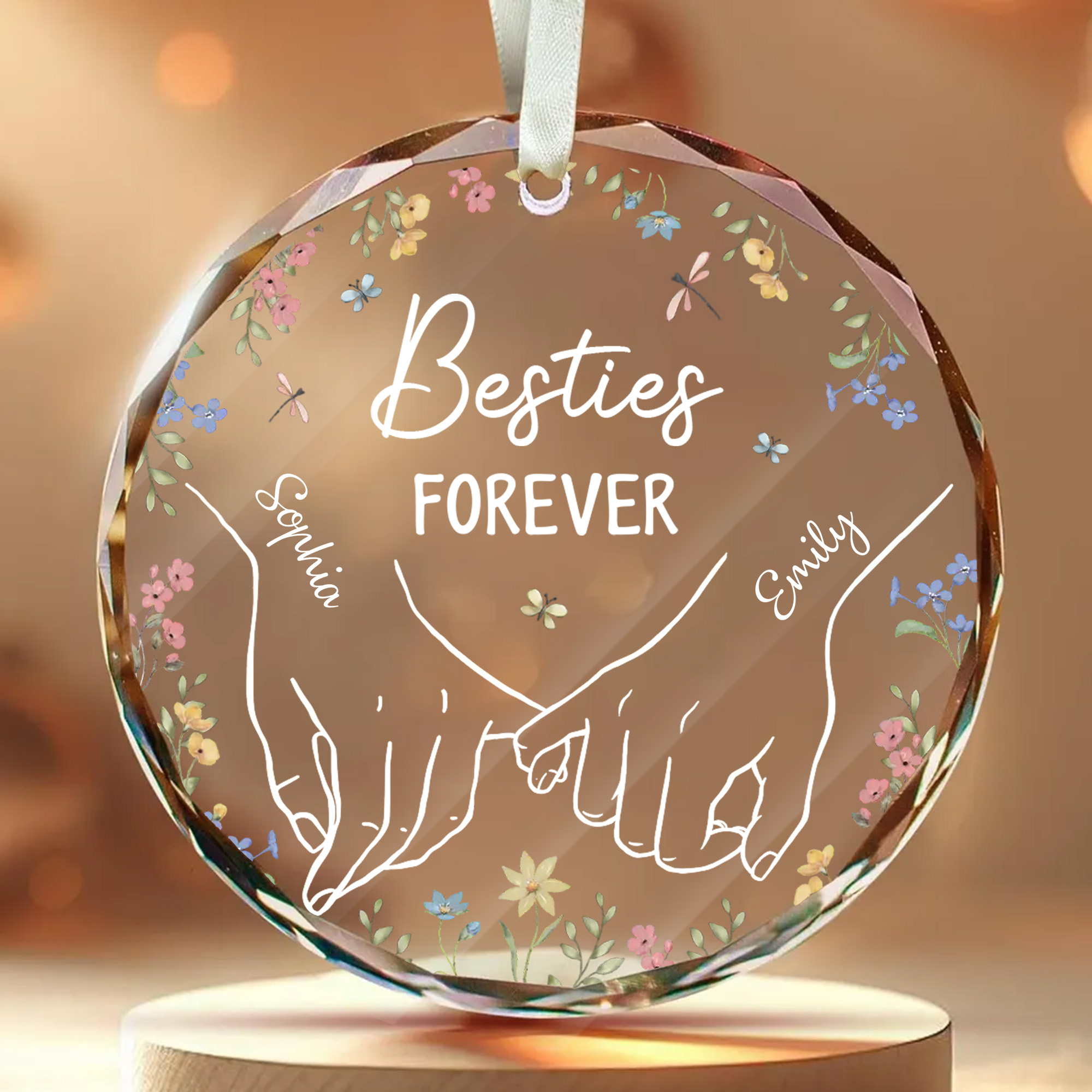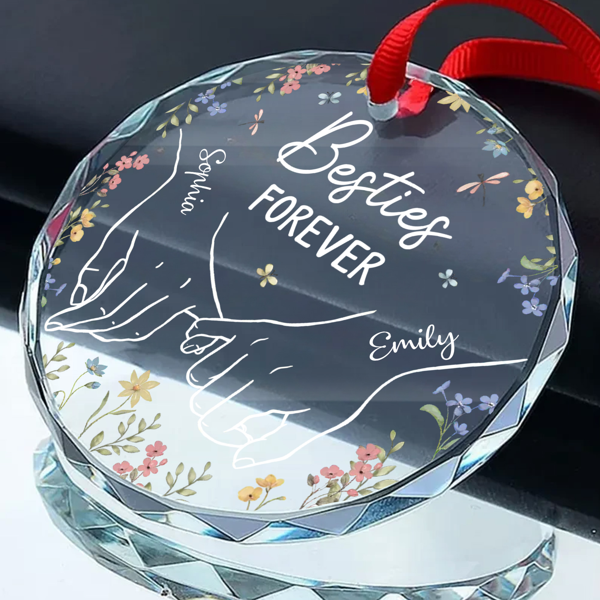 Personalized Besties Forever Glass Ornament Custom Name Friendship Keepsake for Best Friends-GLO-VHFOH