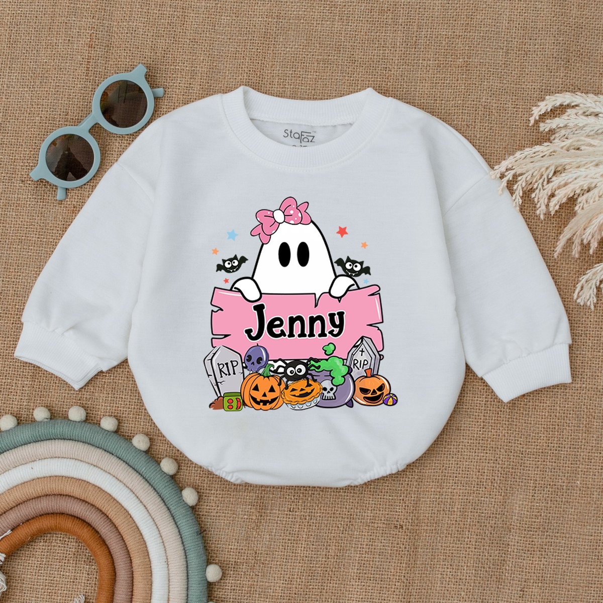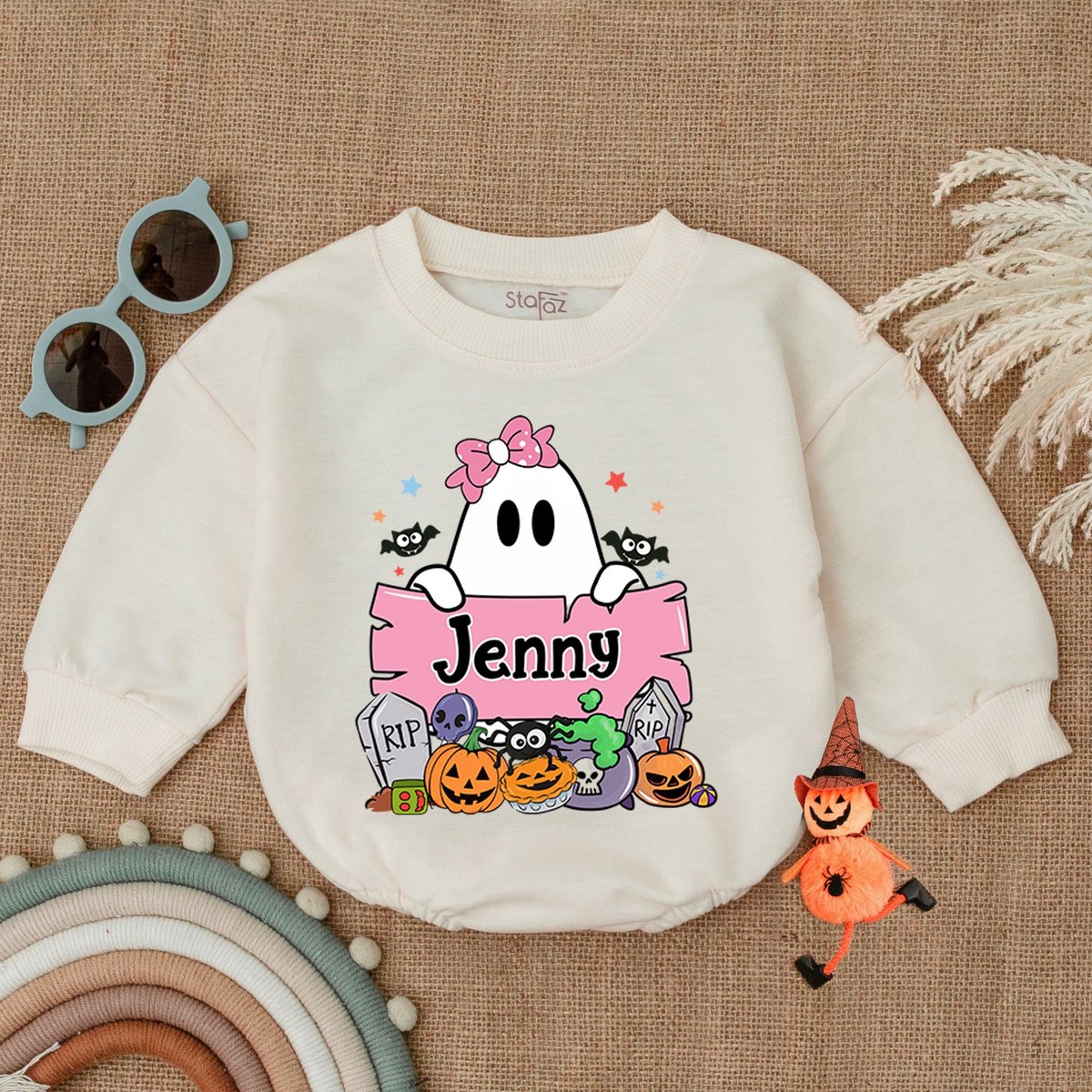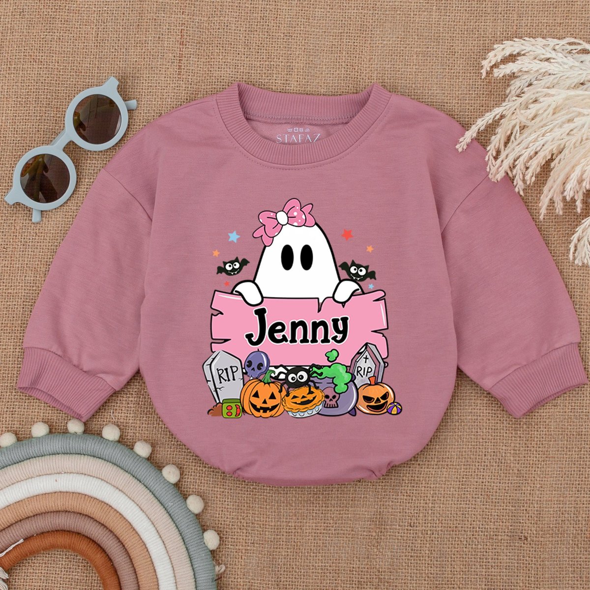 Personalized Boo Halloween Romper My First Halloween Outfit Bubble Romper Baby Shower Gift Pumpkin B 178