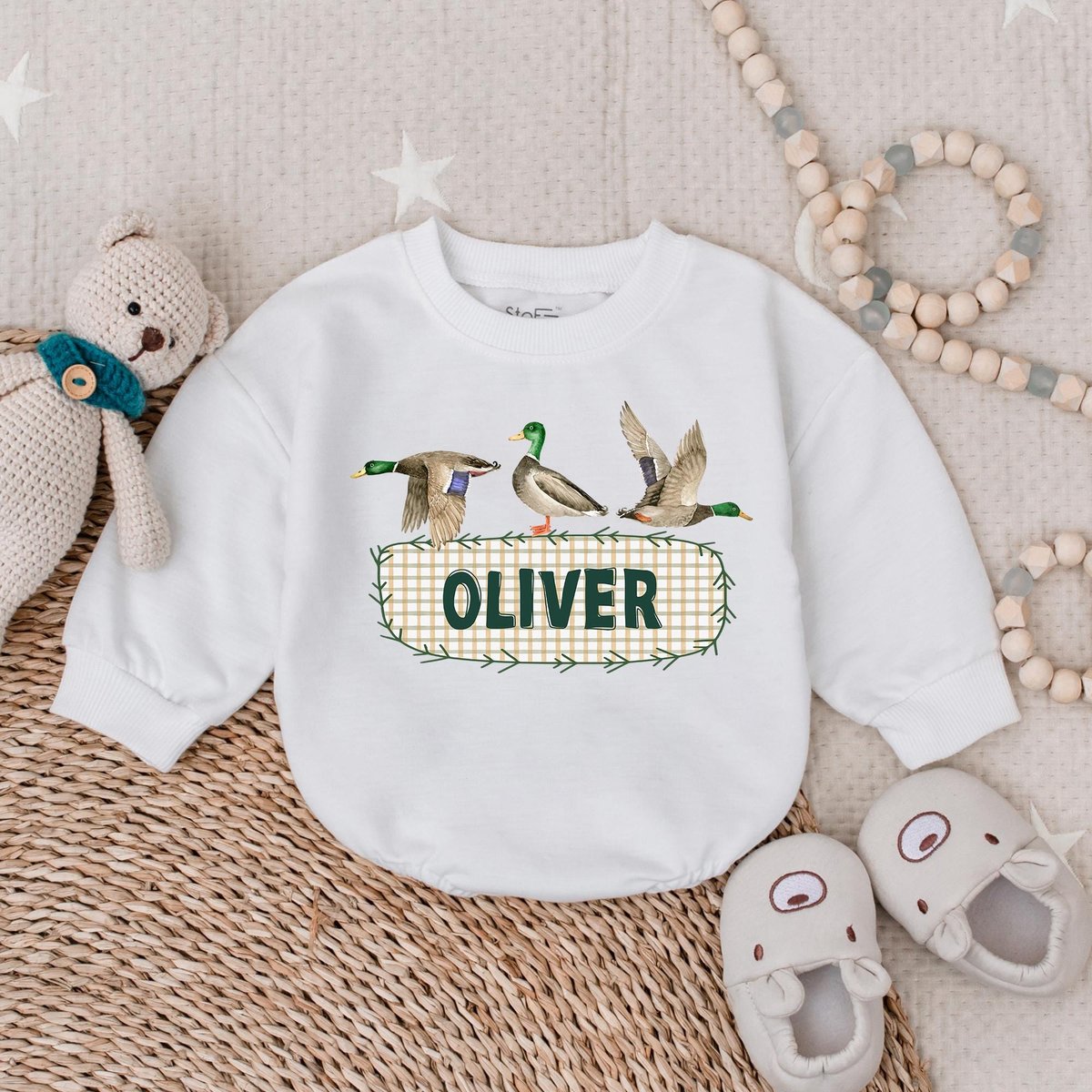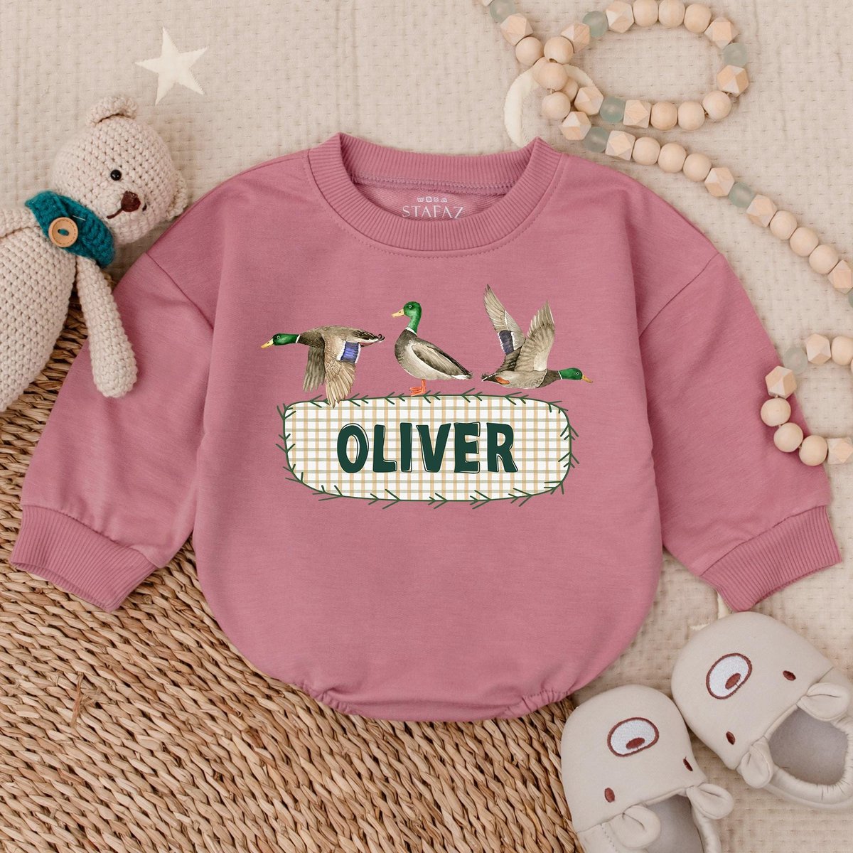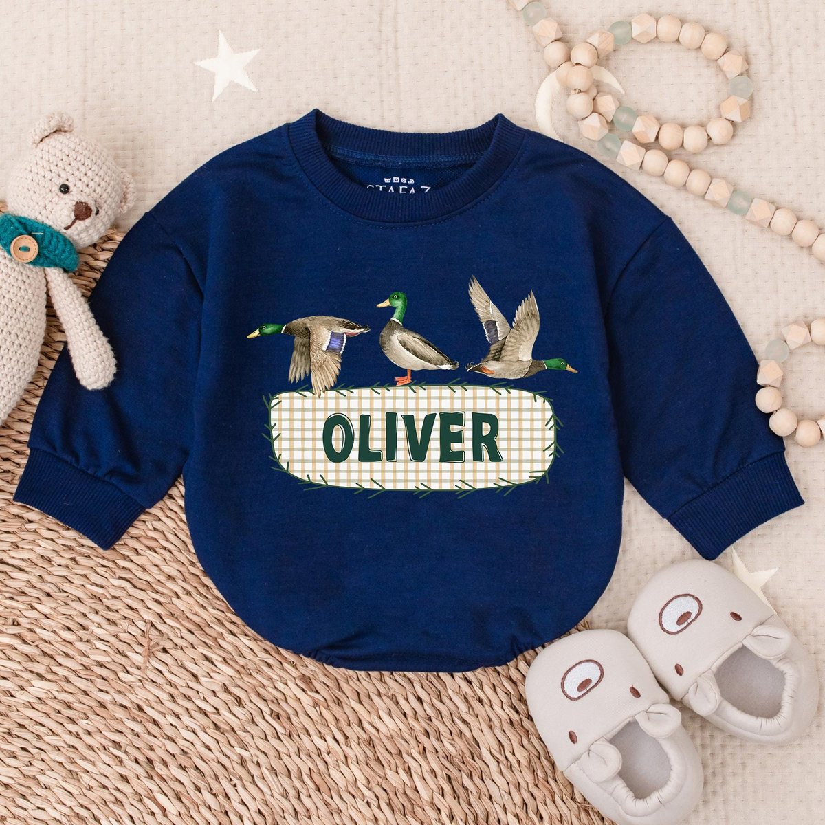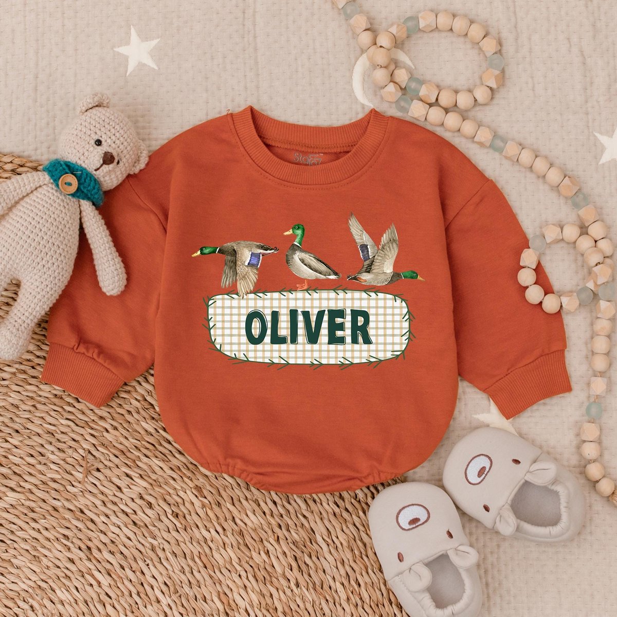 Personalized Boy Mallard Duck Hunting Baby Romper Duckling Baby Bodysuit Daddy’s Hunting Buddy Tren