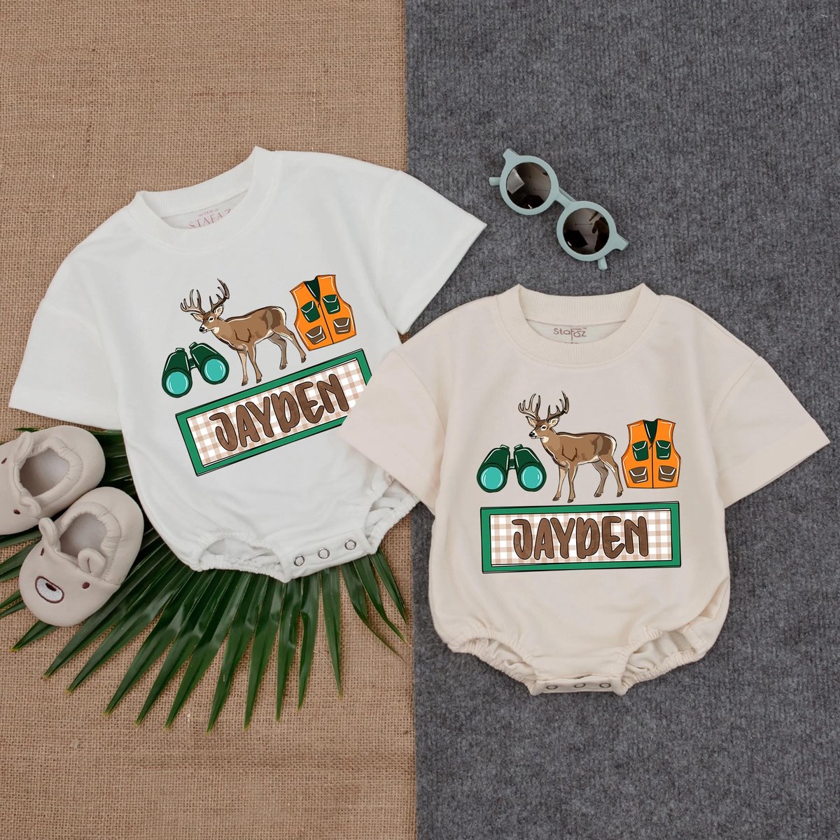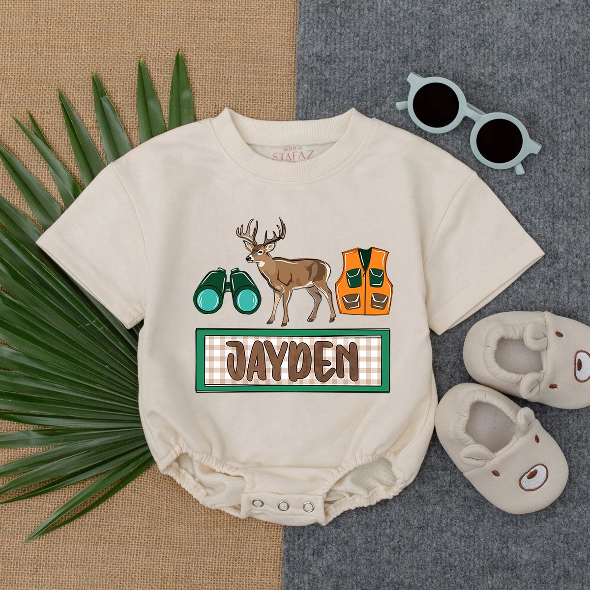 Personalized Buck Hunting Bubble Romper Baby Boy Deer Outfit Hunting Buddy Sweatshirt Newborn Outdoo 433