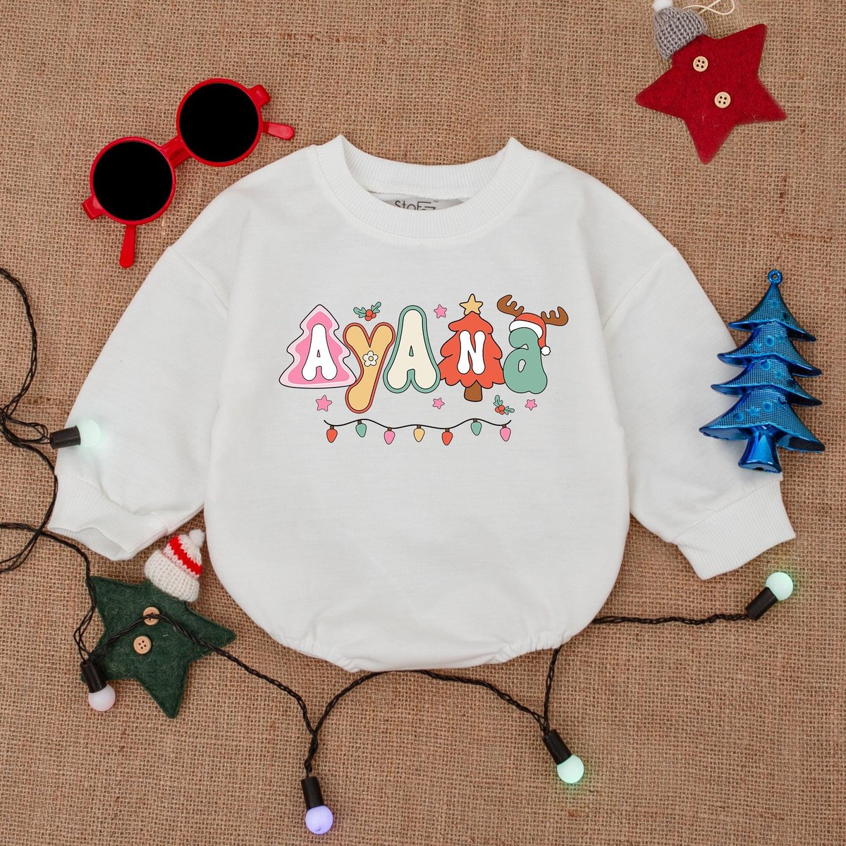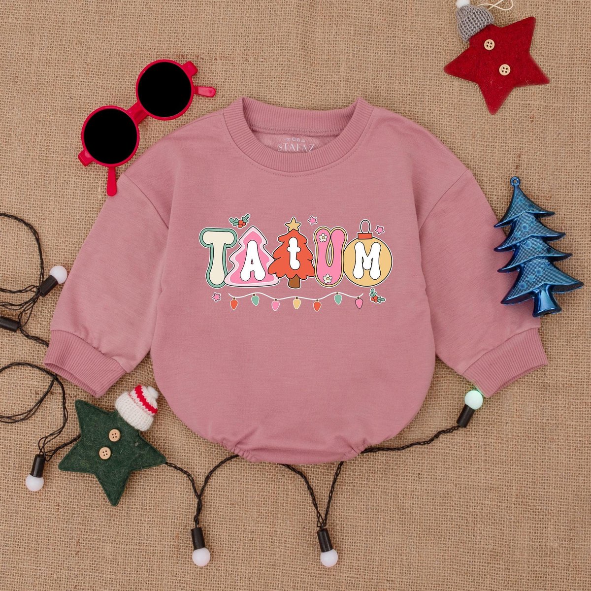 Personalized Christmas Baby Bubble Romper Holiday Baby Outfit Custom Name Baby Romper Baby Christmas 181
