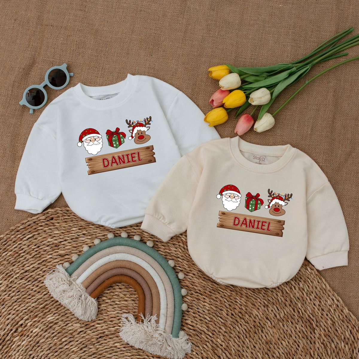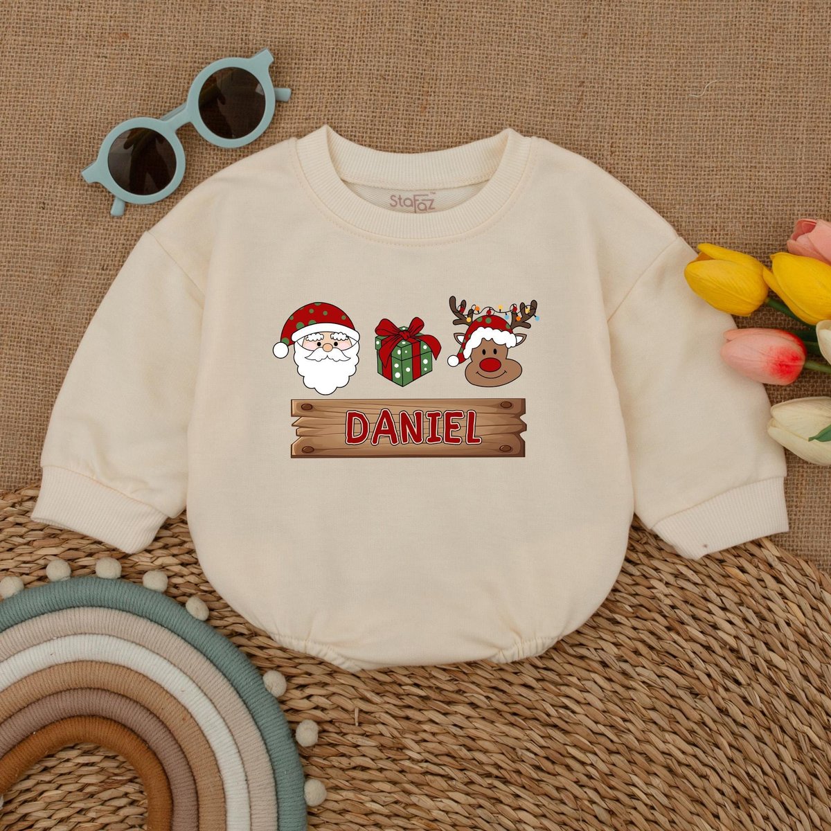 Personalized Christmas Baby Romper Cute Reindeer Baby Bodysuit Baby Christmas Outfit My First Christ 179