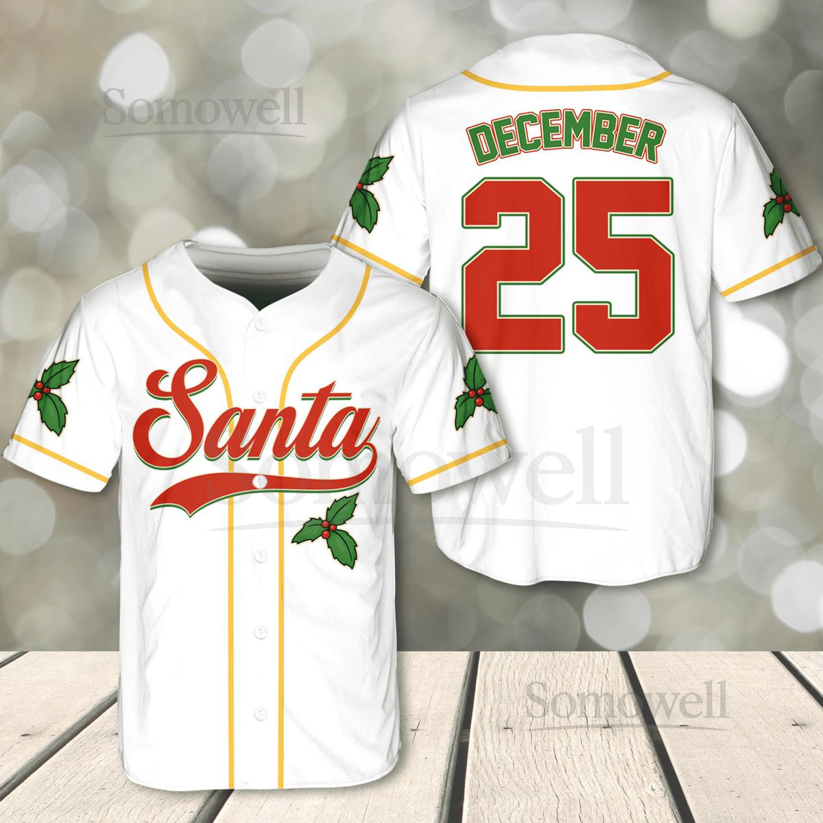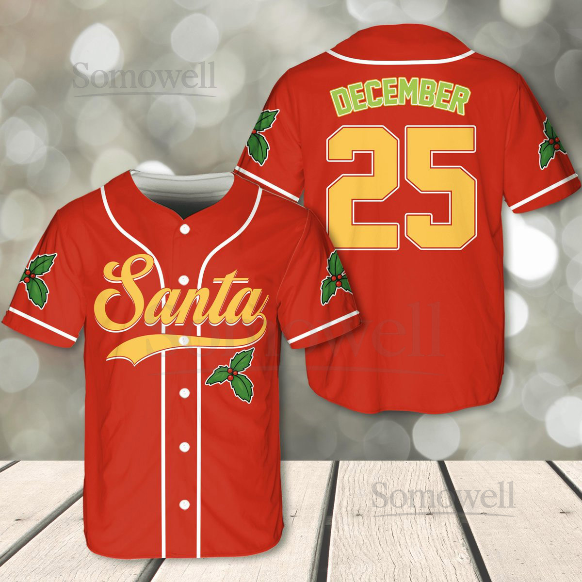 Personalized Christmas Baseball Jersey Adult Kid Youth Custom Name Number Holiday Jersey Funny Xmas Gift Team Uniform Santa Claus Shirt_057