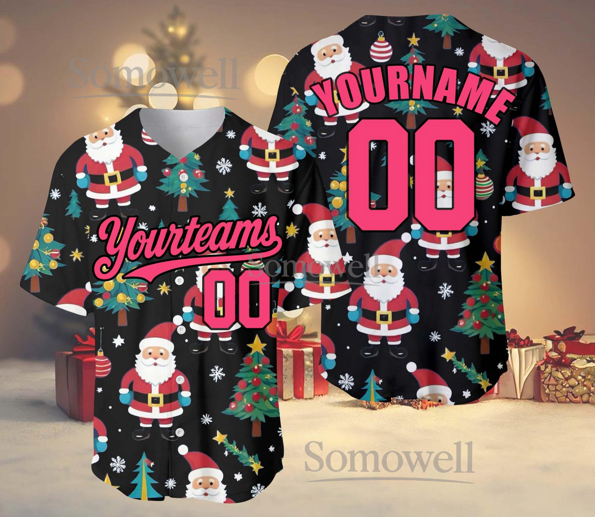 Personalized Christmas Baseball Jersey with Santa and Trees for Holiday Team Spirit